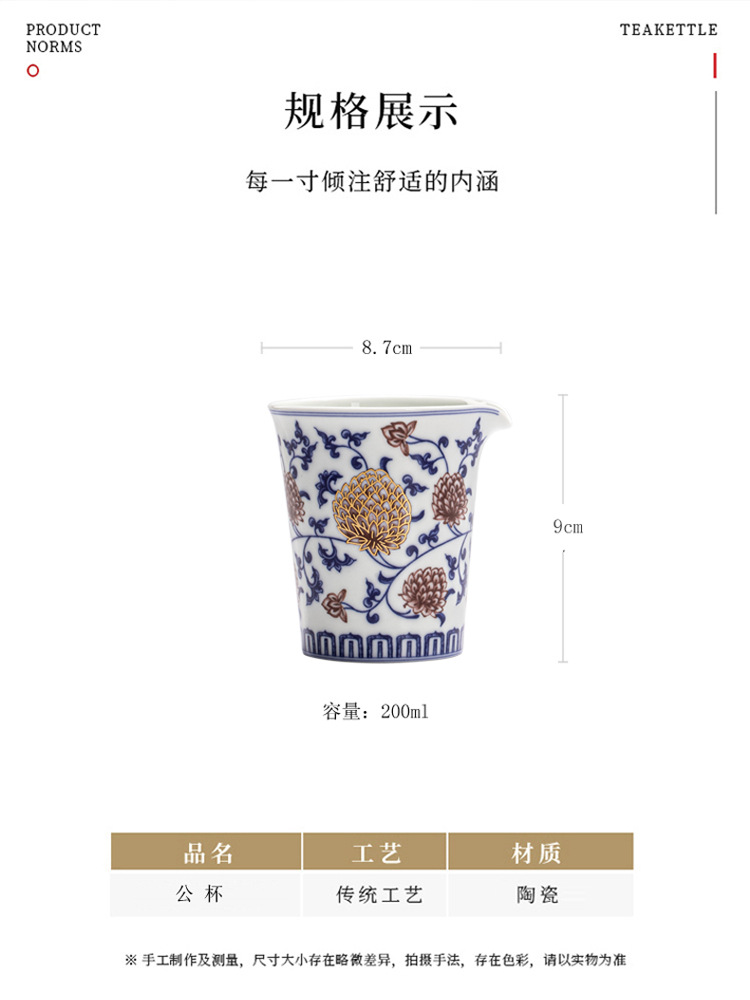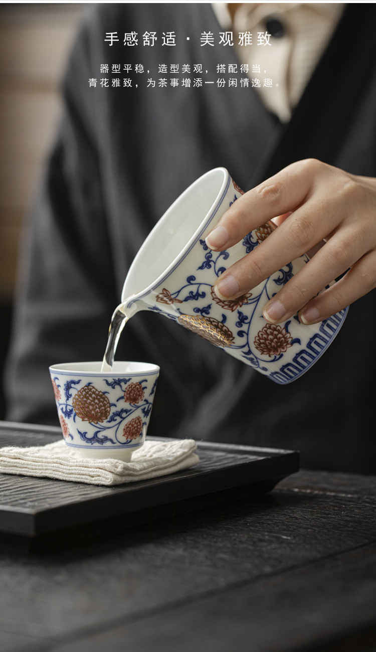 Cốc công bằng gốm cổ điển, trà sứ đỏ tráng men xanh trắng, dụng cụ pha trà, phụ kiện bộ trà Kung Fu, cốc đồng nhất không bị nóng