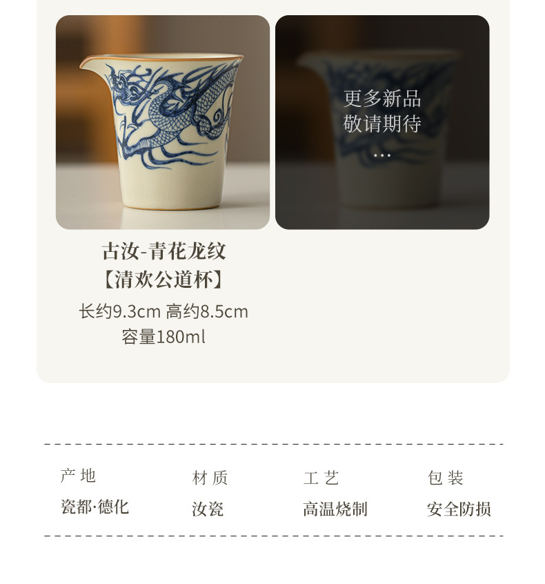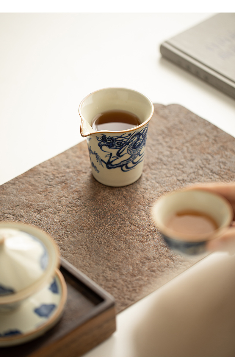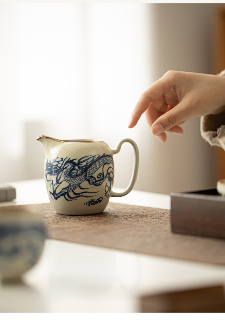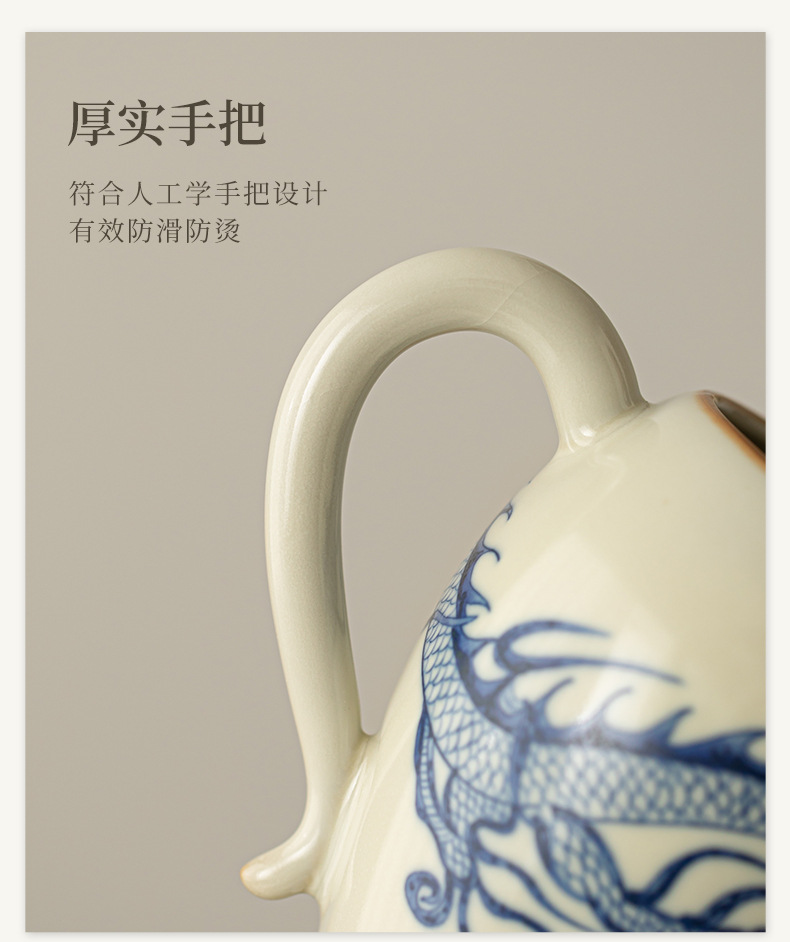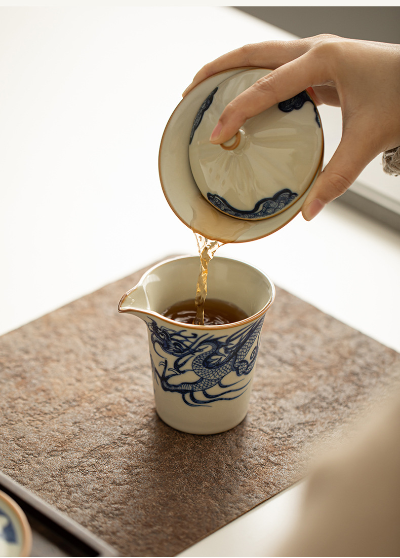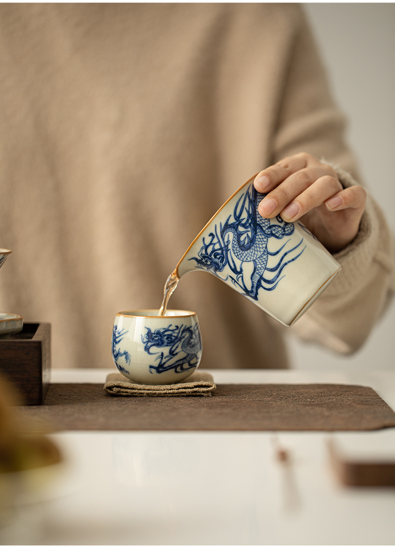 Cốc công bằng hình rồng màu xanh và trắng của Ru Kiln Cốc trà sứ Ru màu be Bộ trà Kung Fu gia dụng Dụng cụ tách trà