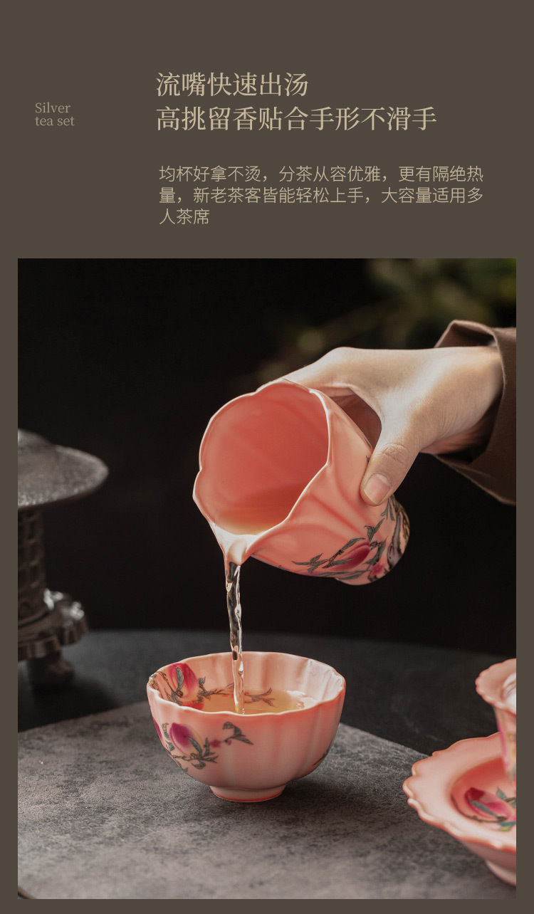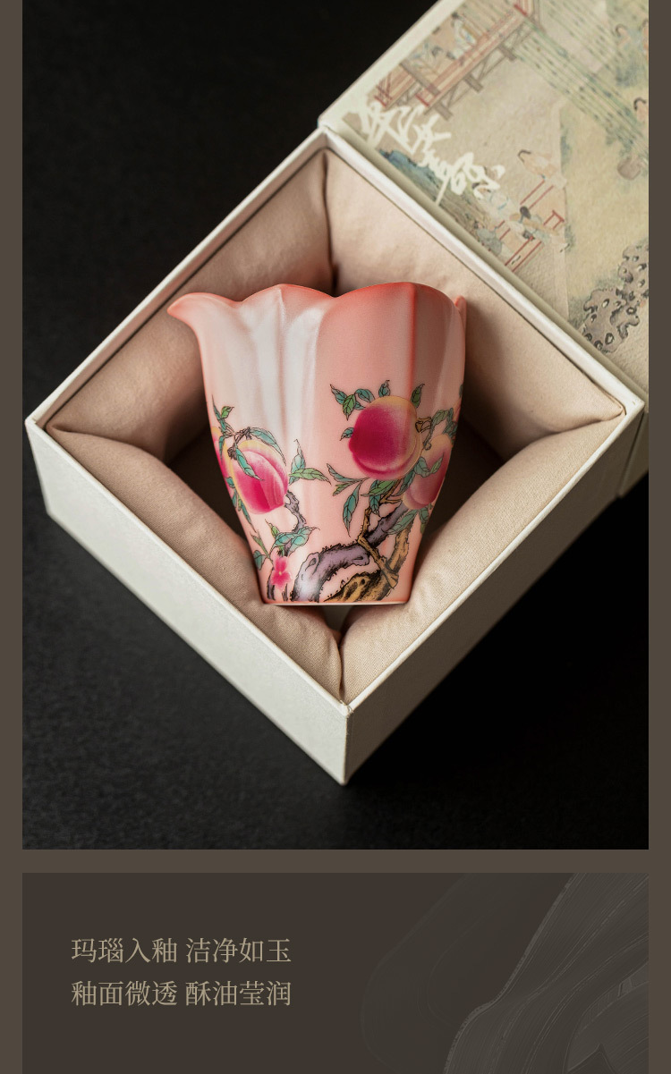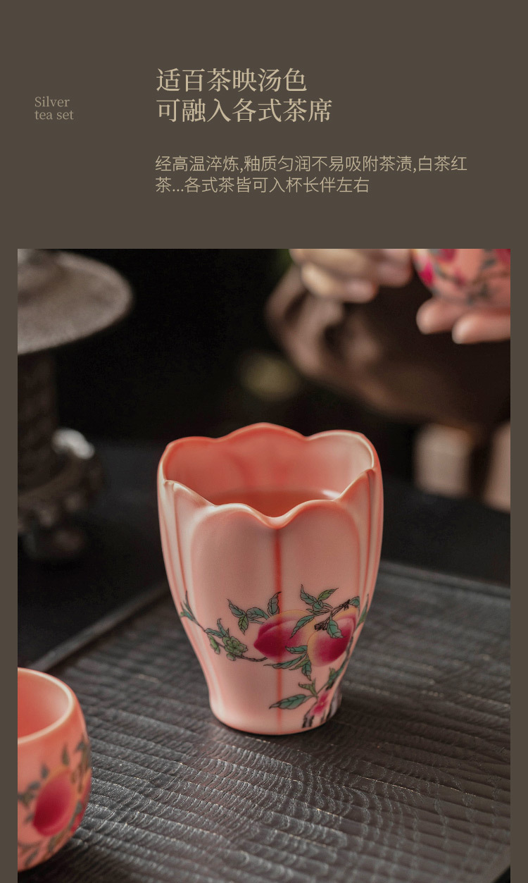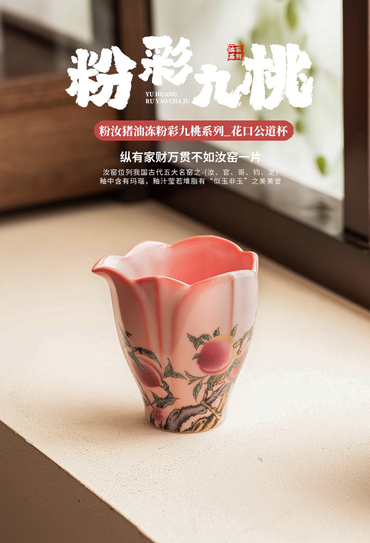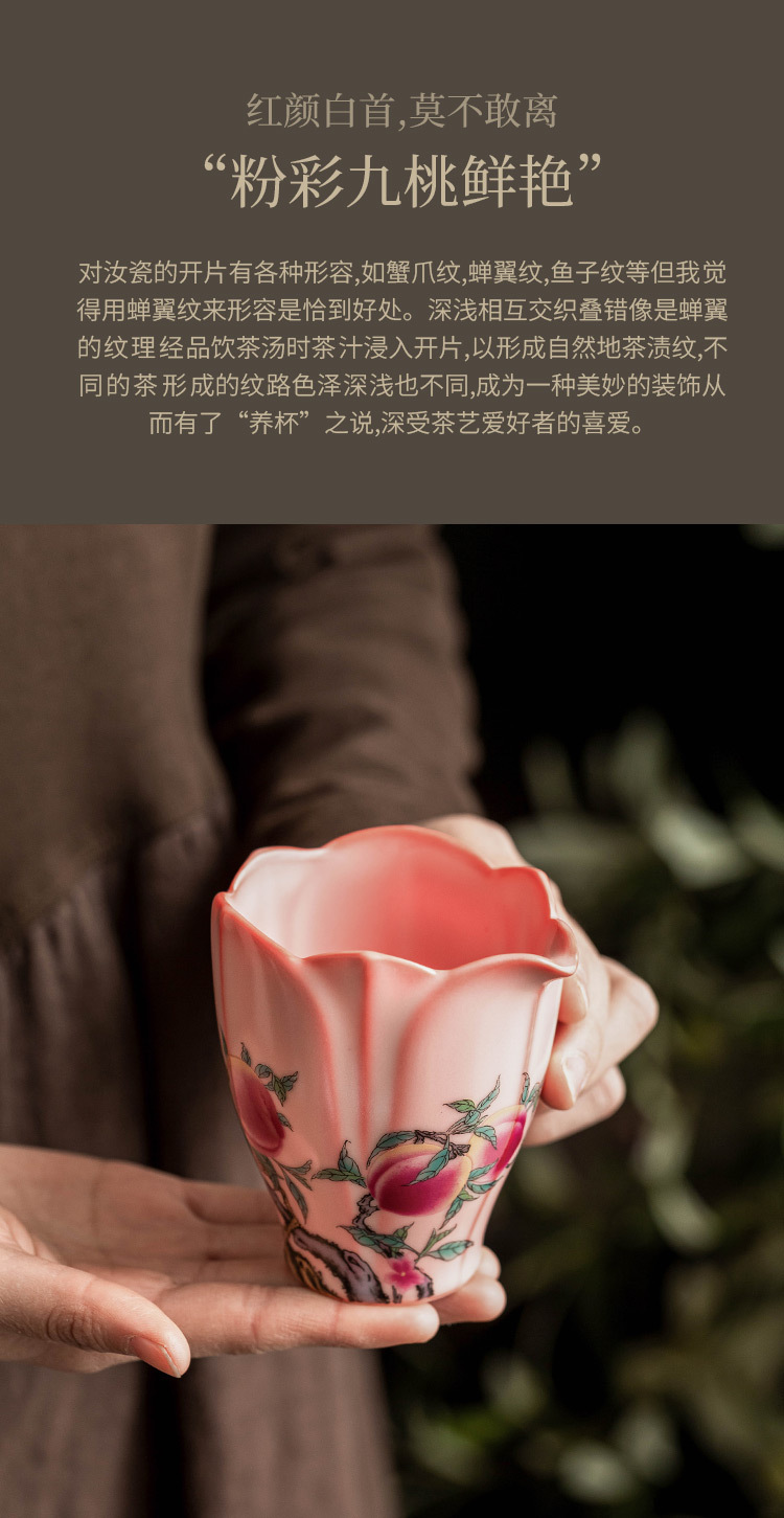 - Cốc công bằng Hồng Ru Pastel Nine Taohuakou Bộ trà Kung Fu Bộ trà chống bỏng Bộ tách trà gốm sứ gia dụng