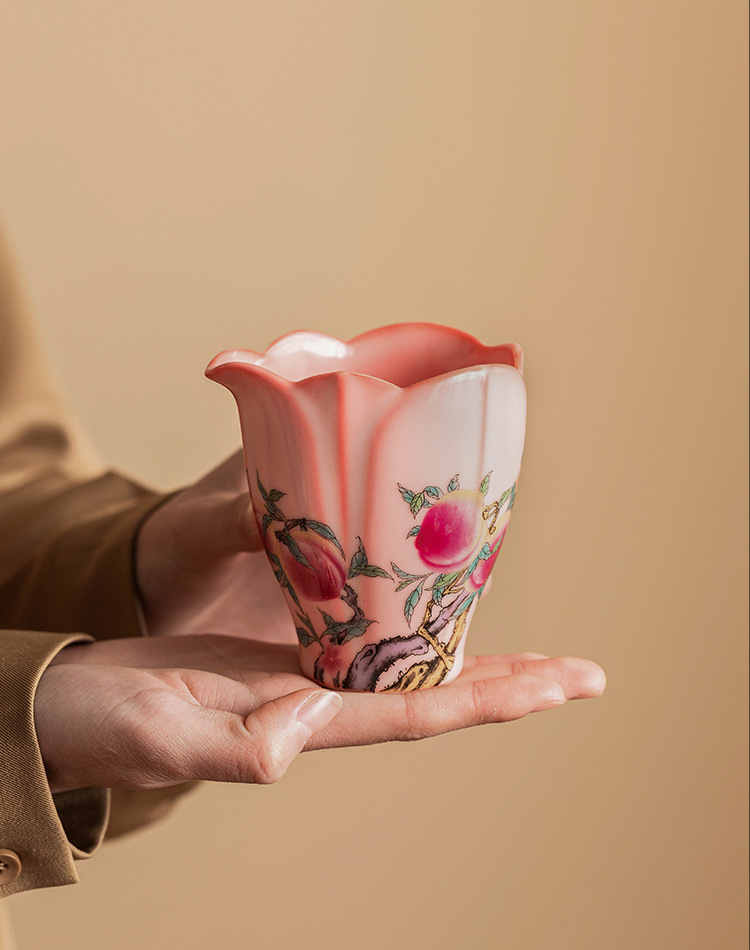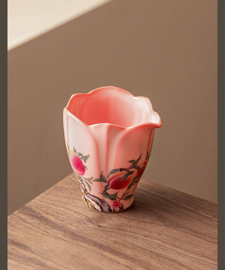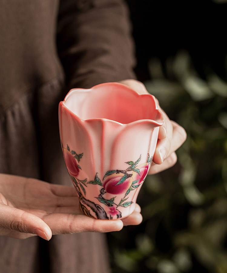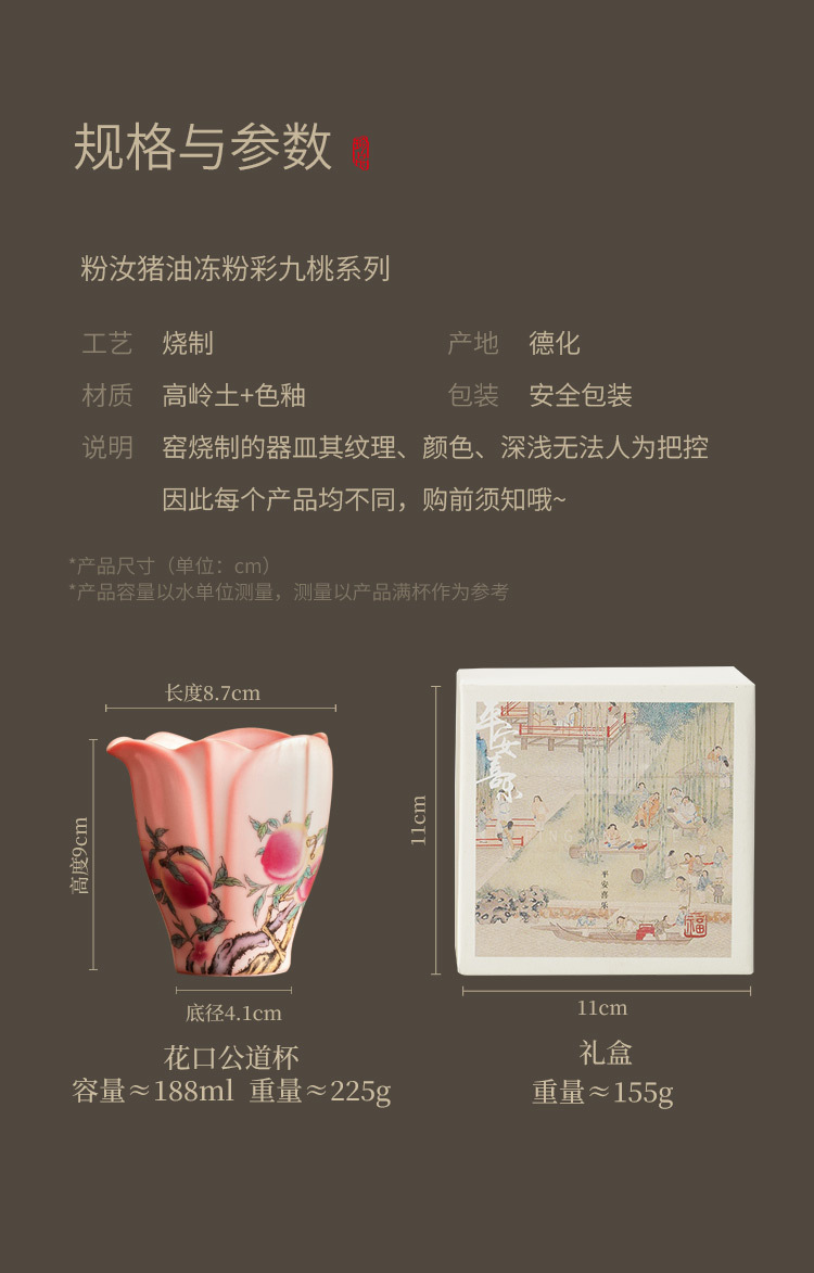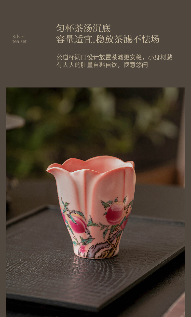 - Cốc công bằng Hồng Ru Pastel Nine Taohuakou Bộ trà Kung Fu Bộ trà chống bỏng Bộ tách trà gốm sứ gia dụng