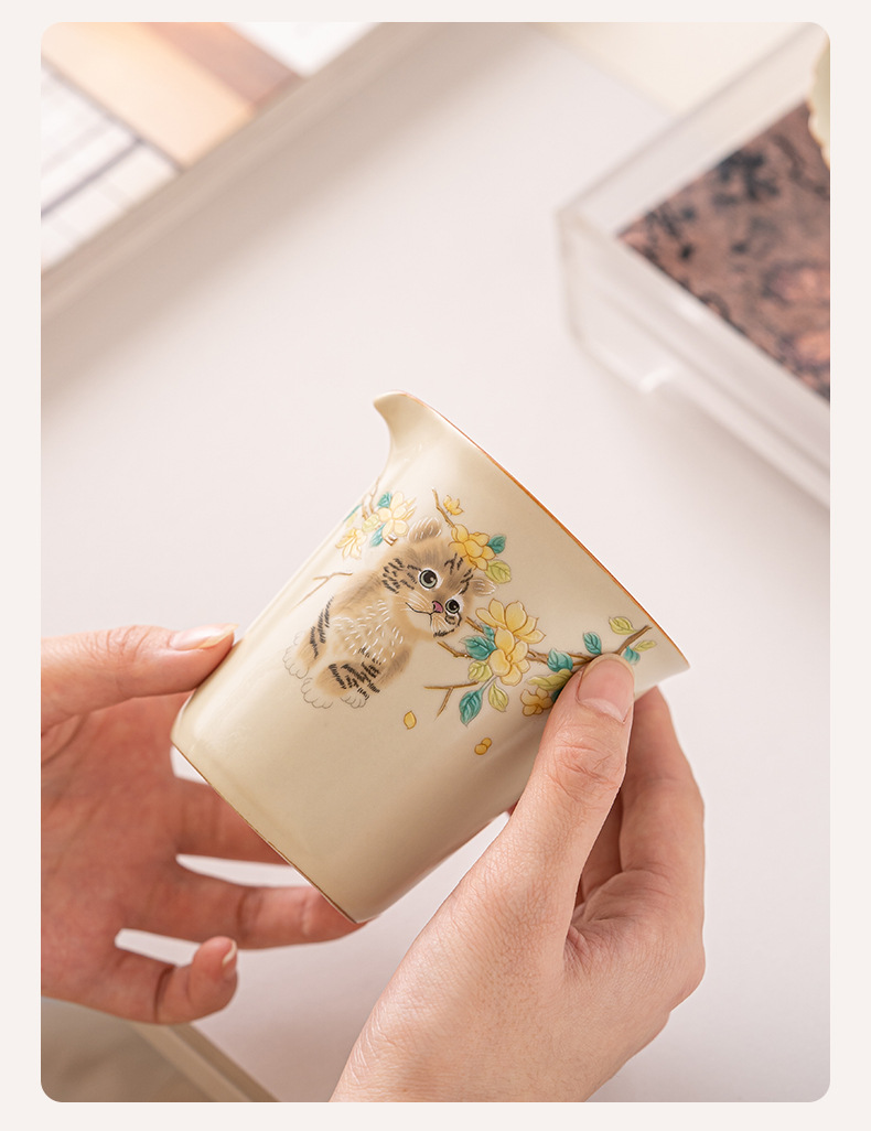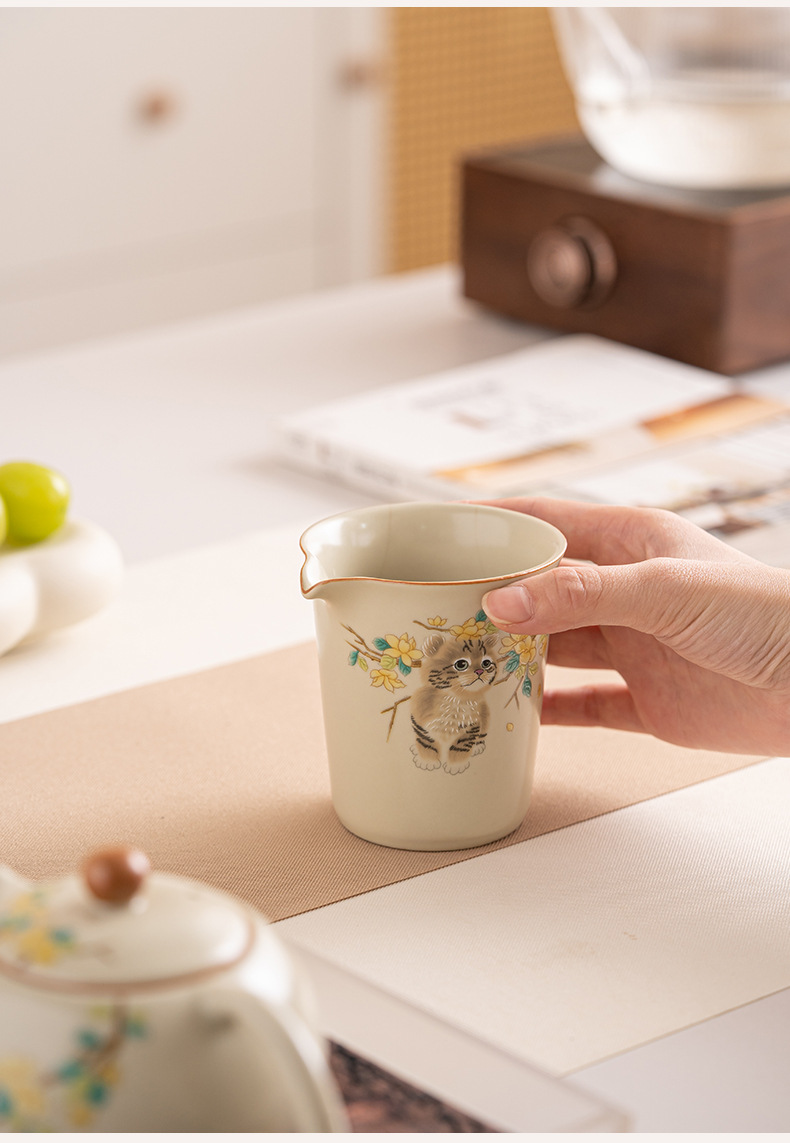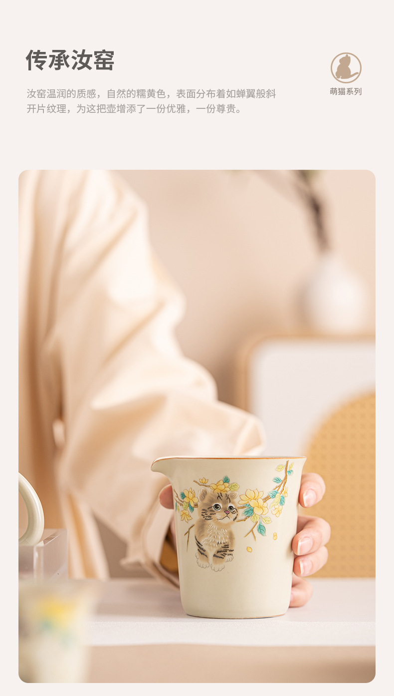 - Cốc Công bằng lò Ru màu vàng gạo giả Tống, cốc trà gia dụng lọc trà một tay, dụng cụ pha trà Kung Fu