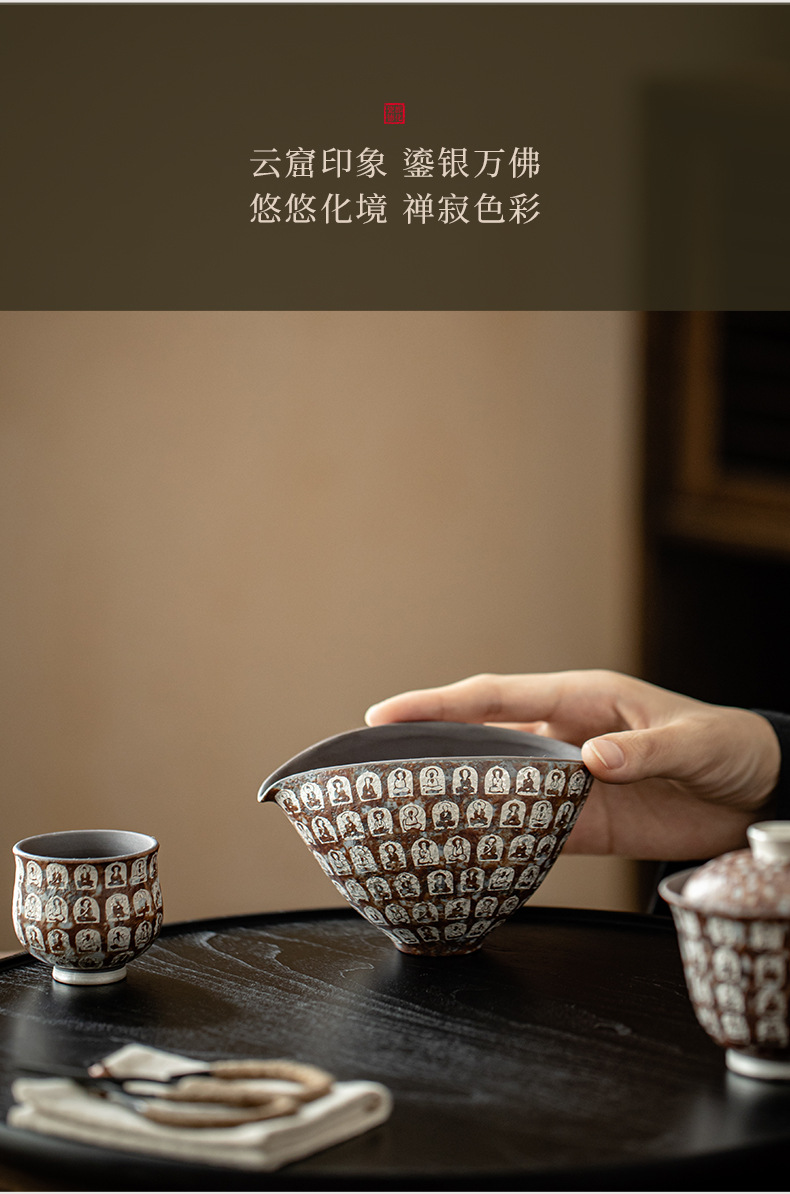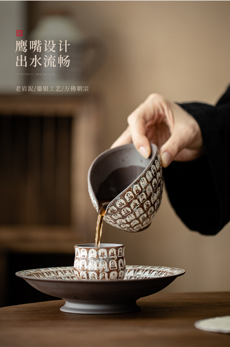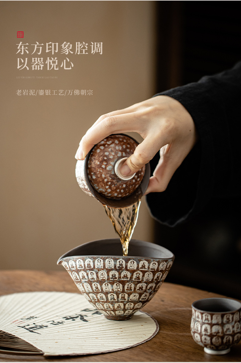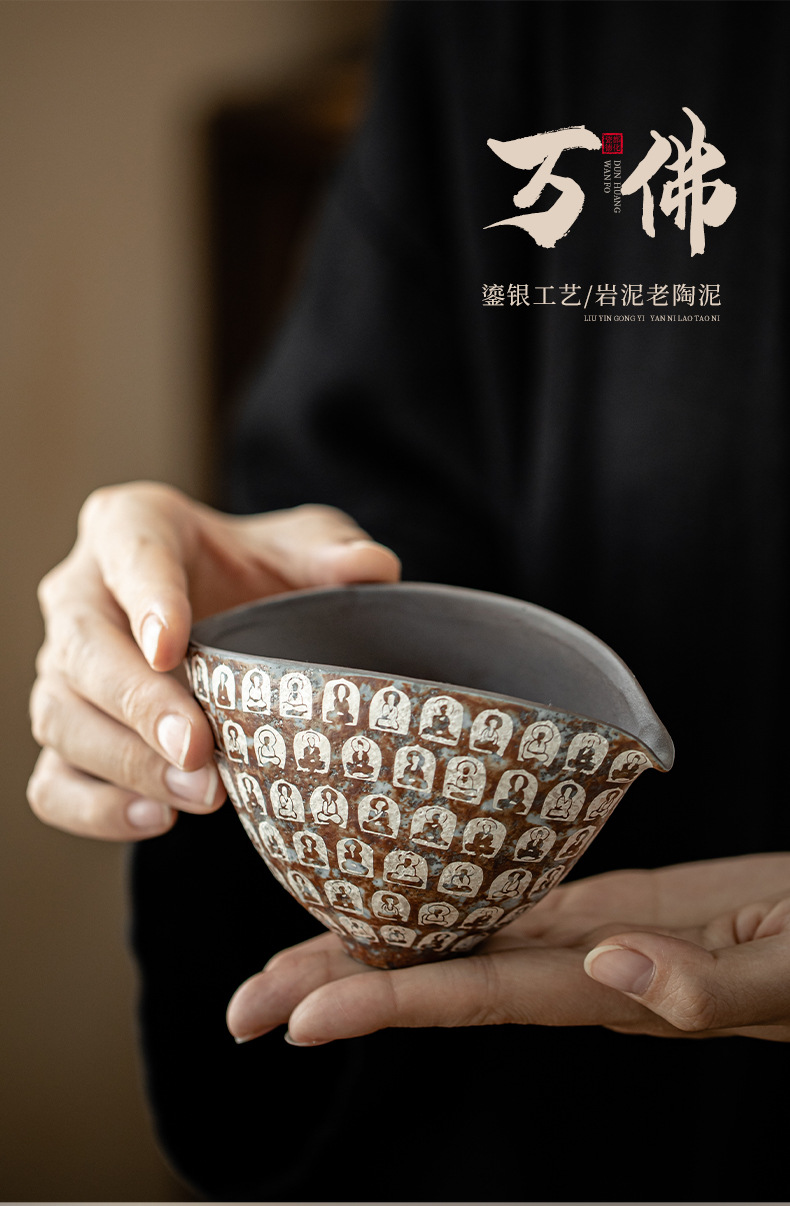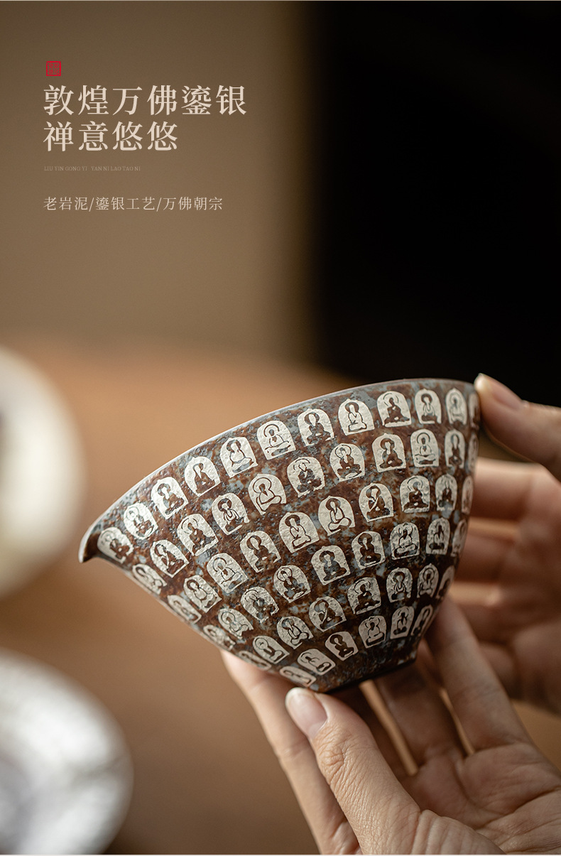 Cốc công tắc mạ bạc Đôn Hoàng Vạn Phật, cốc pha trà gia dụng, dụng cụ pha trà đồng nhất, tách trà, cốc công cộng bùn đá cũ, phụ kiện Bộ trà