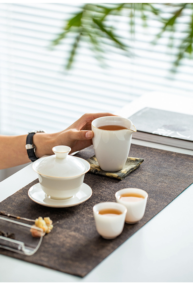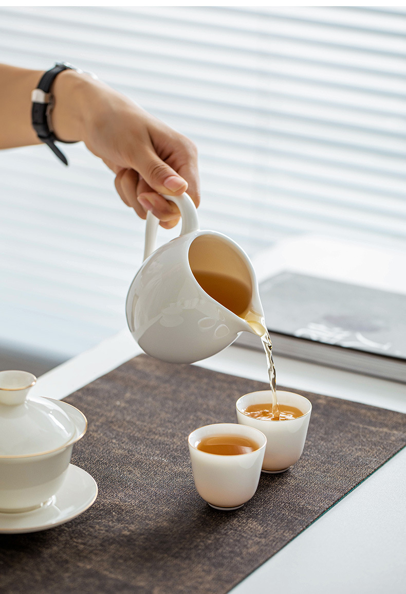 Cốc công tắc sứ trắng ngọc bích Đức Hoa Bộ trà Kung Fu Bộ trà vàng Bộ tách trà gia dụng Bộ tách trà trắng trơn