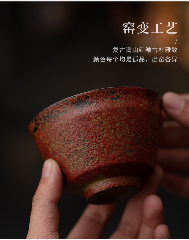 Cốc đồng hồ đỏ núi đá cũ, cốc trà gốm sứ, cốc trà, cốc cá nhân thủ công gia dụng, bộ trà Kung Fu