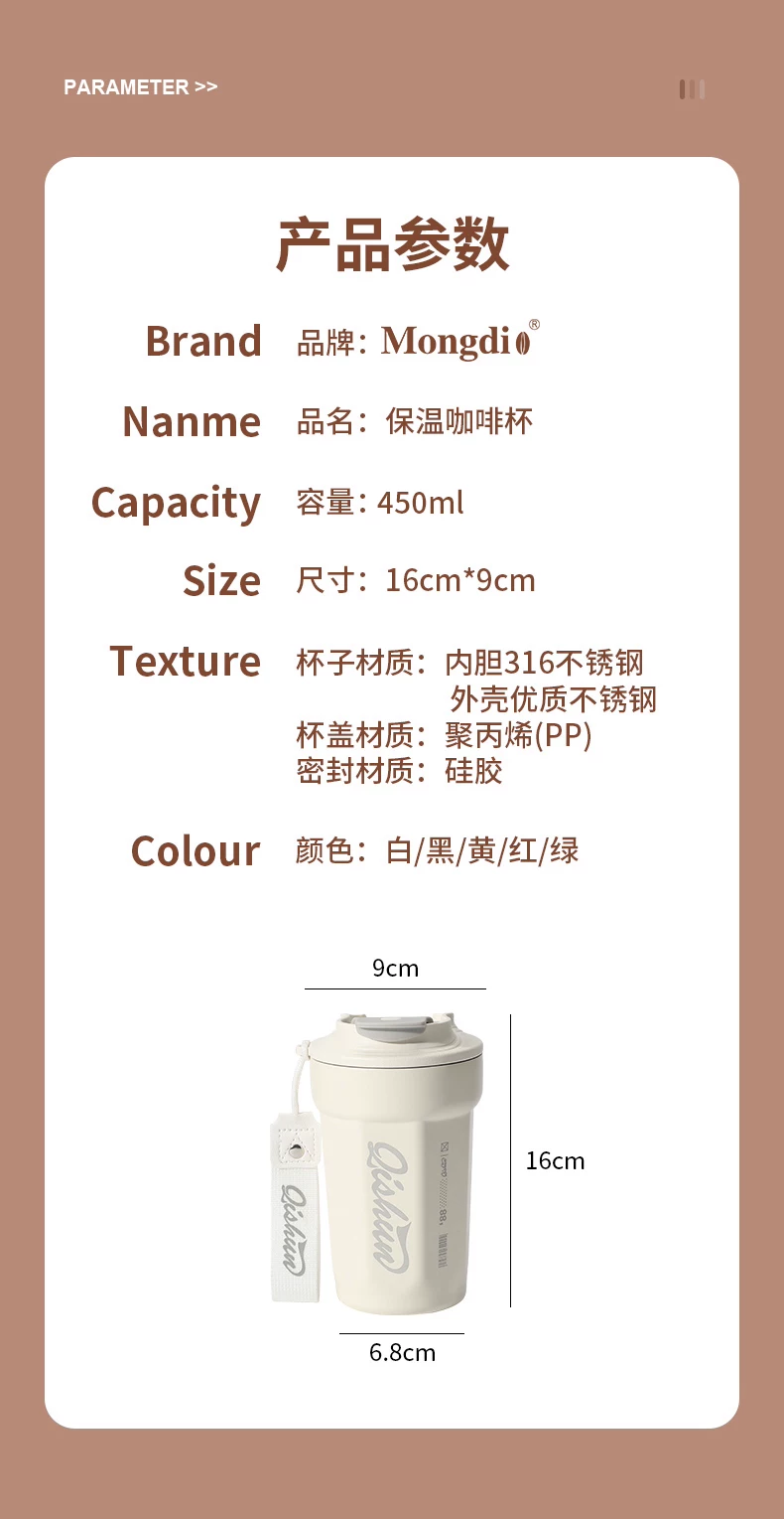 - Cốc giữ nhiệt cà phê Mongdio, cốc tinh tế cao cấp dành cho nam và nữ, cốc du lịch bằng thép không gỉ 316 di động, cốc trà