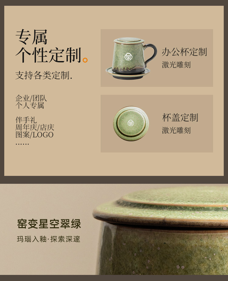 Cốc gốm biến đổi lò có nắp tách trà tách trà cốc pha trà có đĩa cốc nước văn phòng cá nhân LOGO