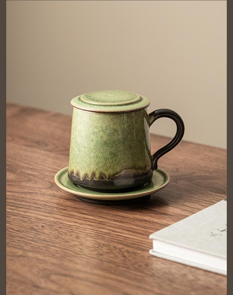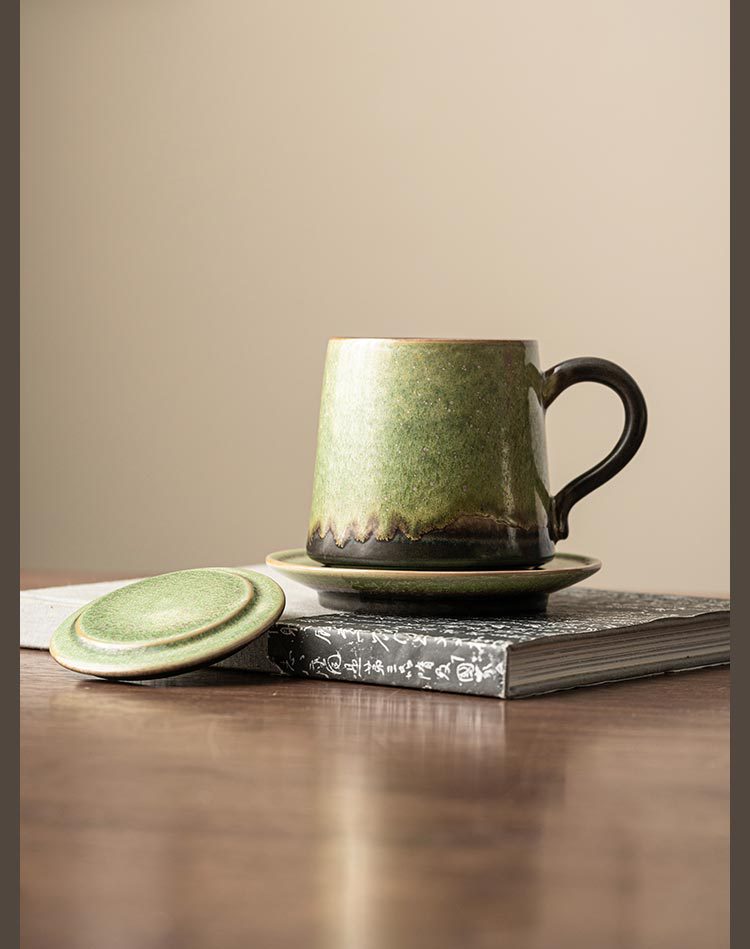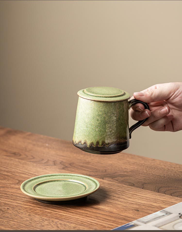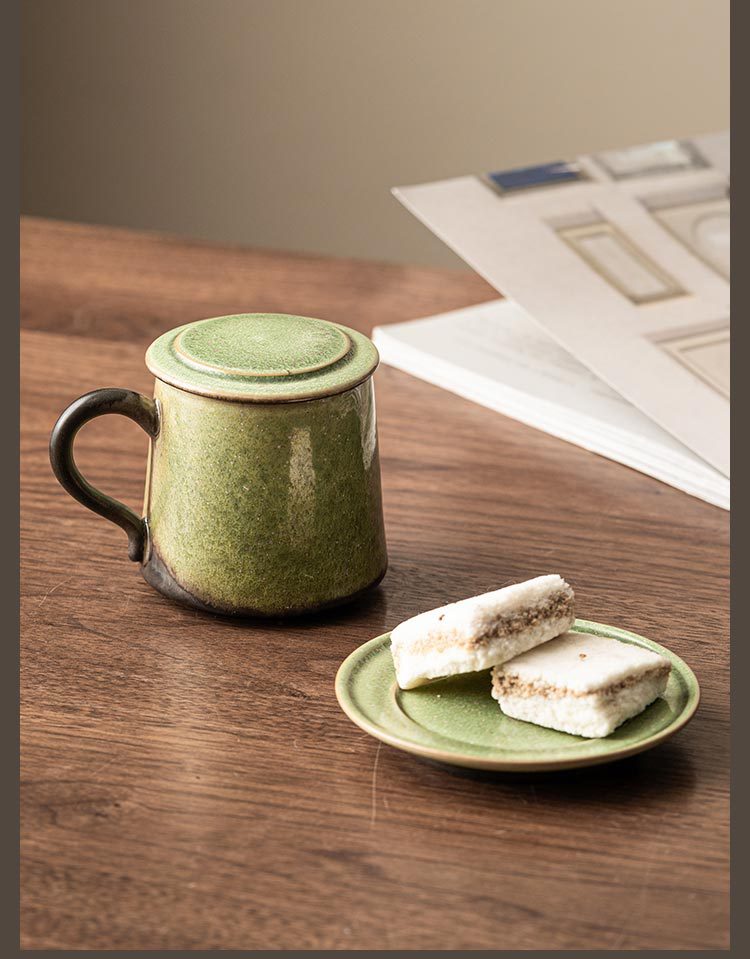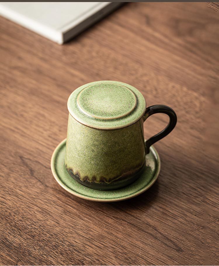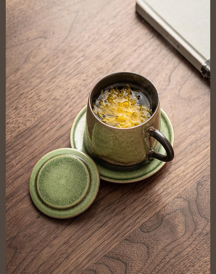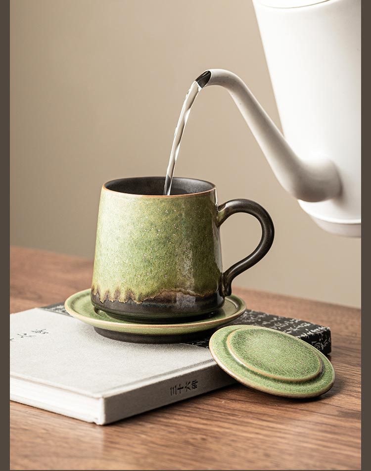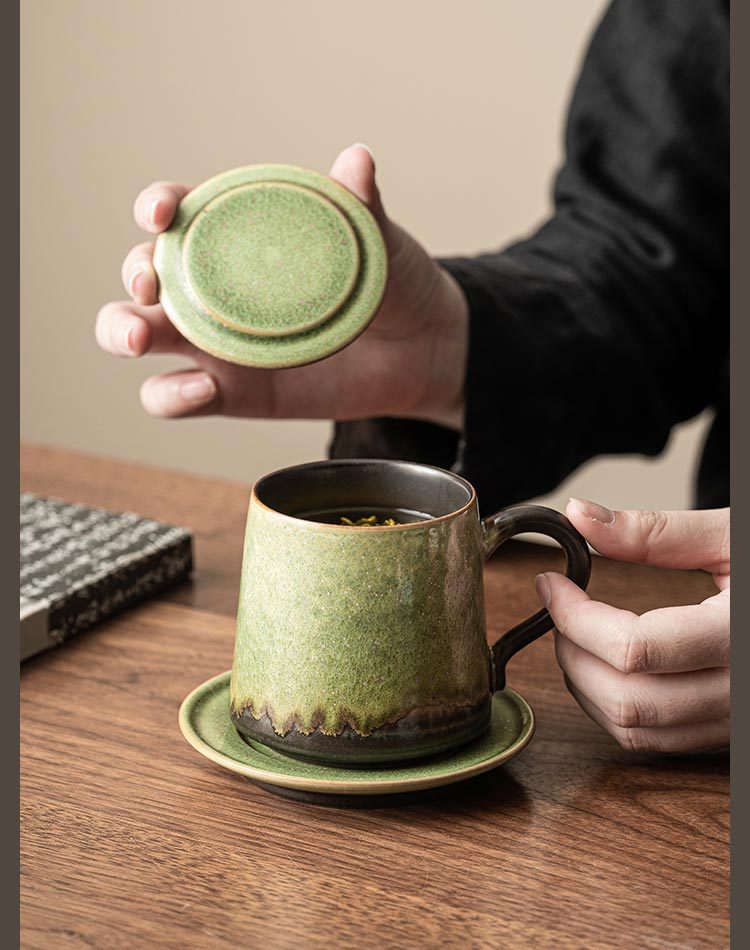 - Cốc gốm biến đổi lò có nắp tách trà tách trà cốc pha trà có đĩa cốc nước văn phòng cá nhân LOGO