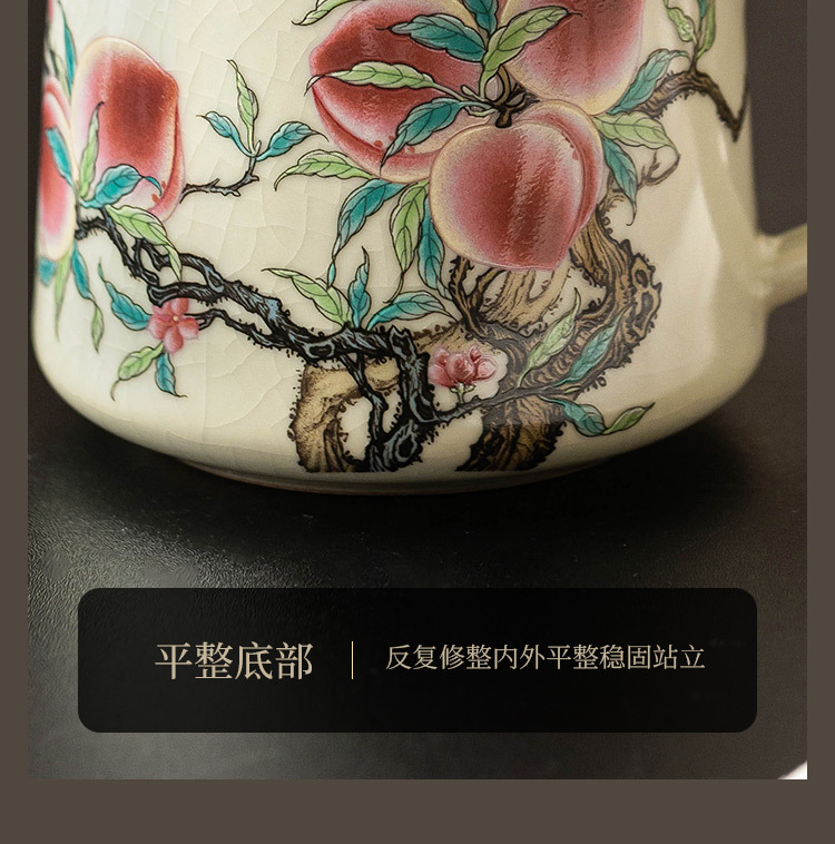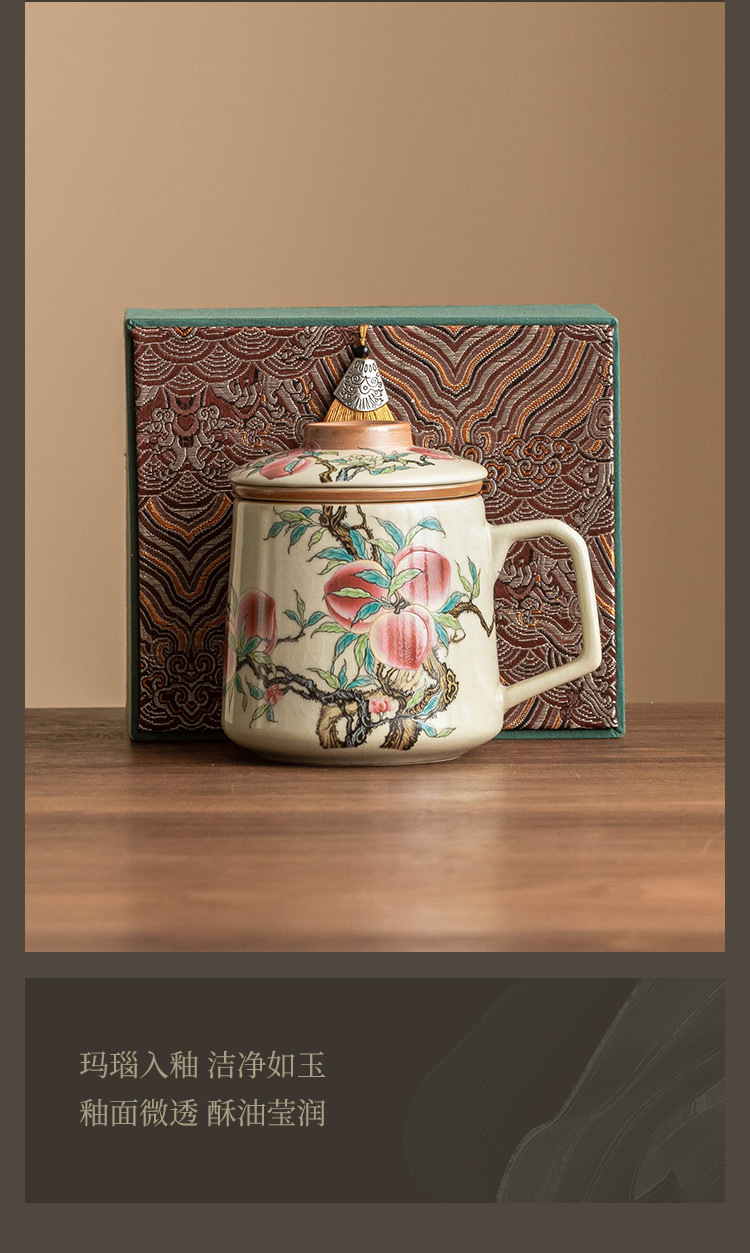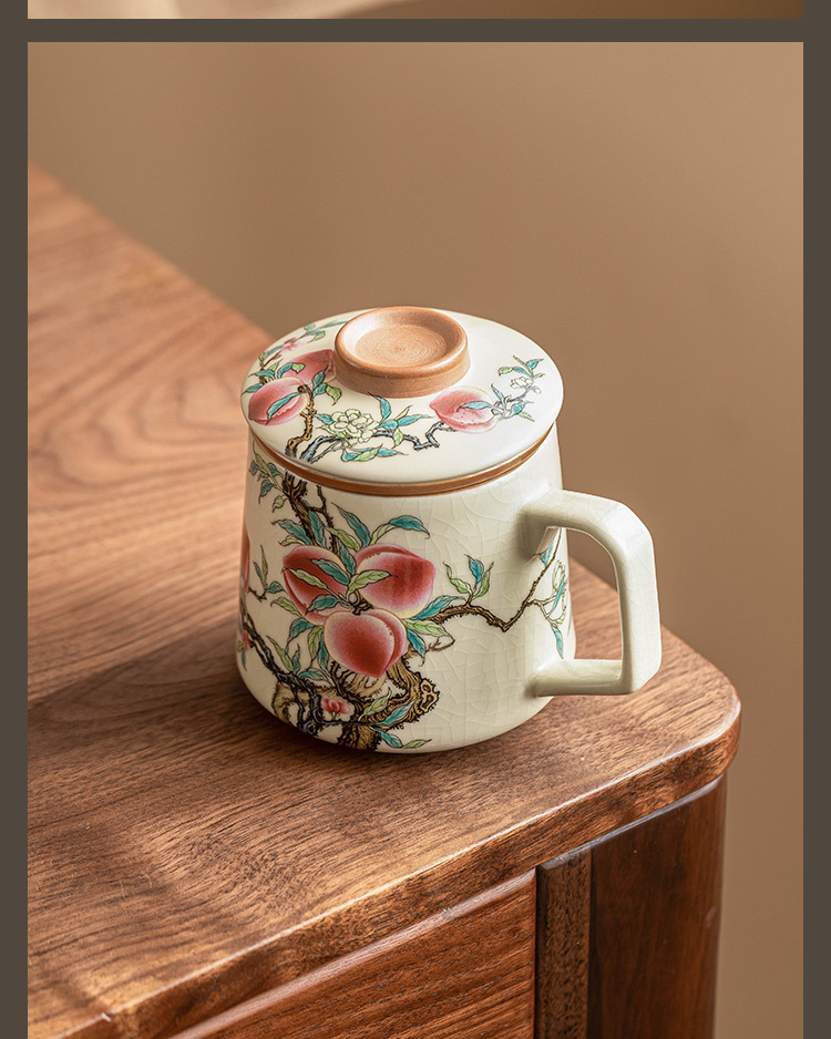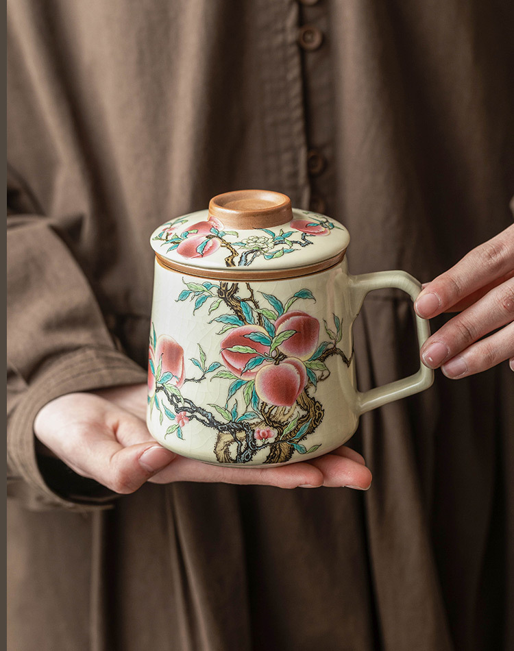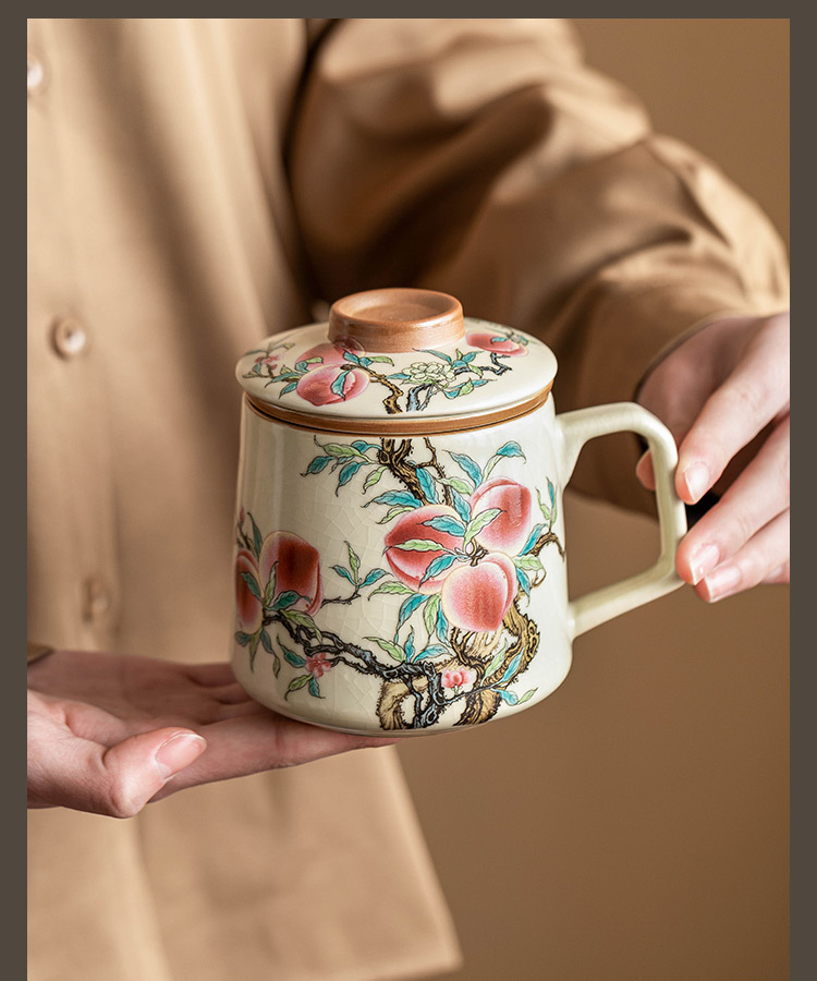 Cốc gốm chín quả đào có nắp đậy cốc gốm sứ gia dụng cảm giác cao cấp cốc văn phòng tách nước trà cốc pha trà