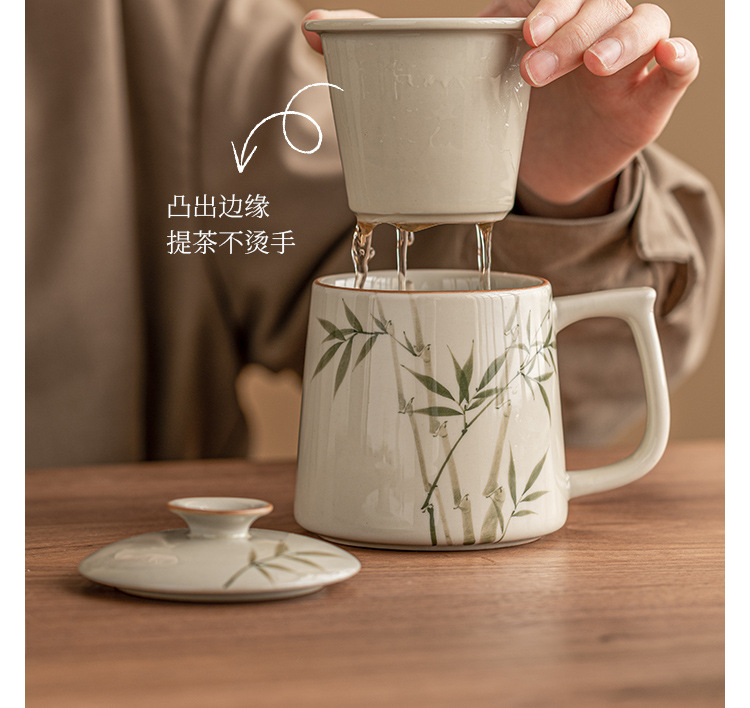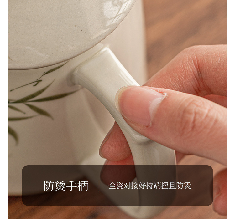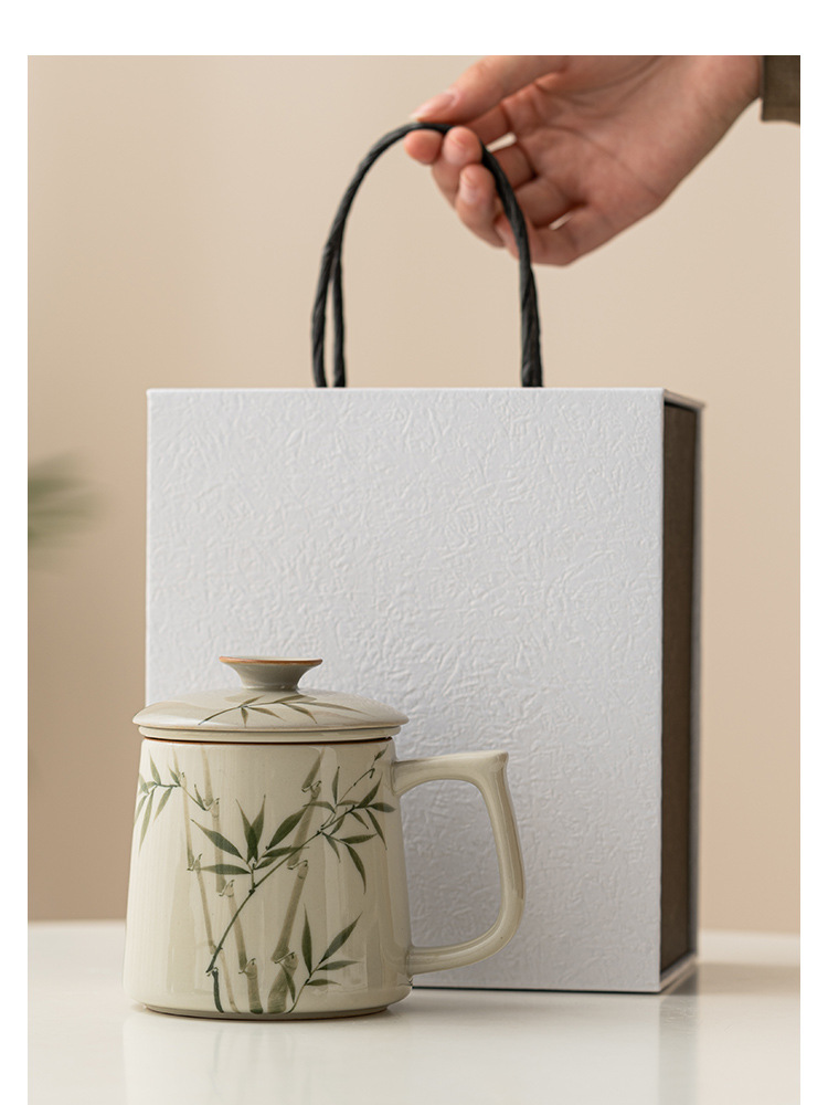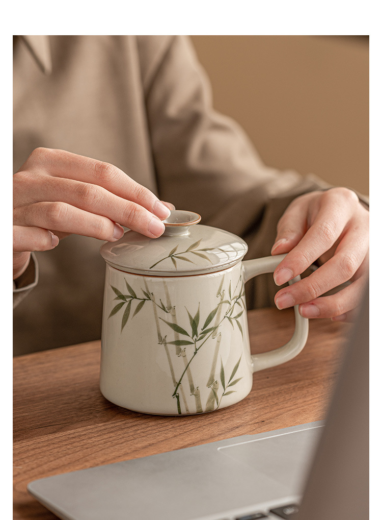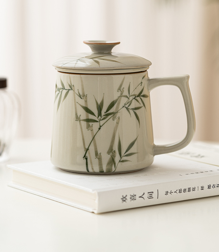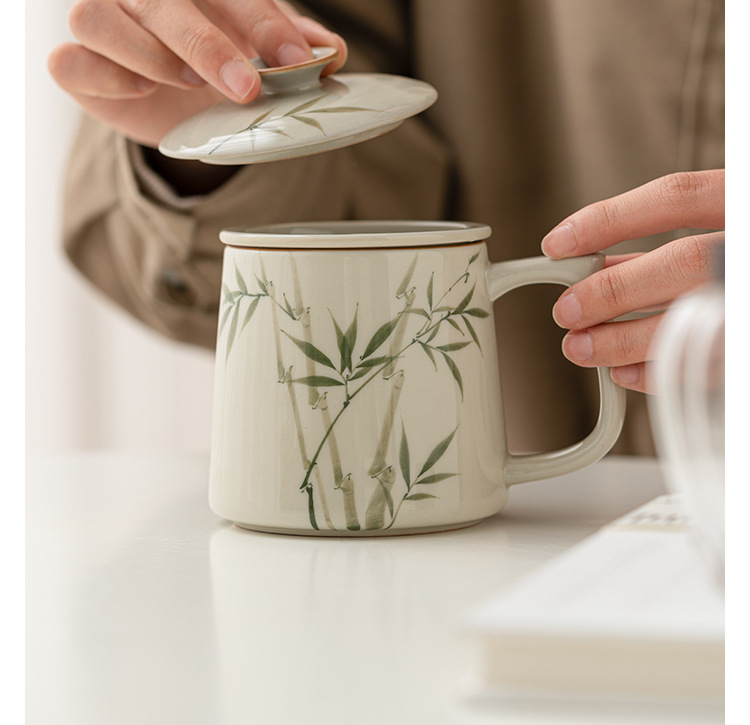 Cốc gốm sứ bằng tre xanh ngọc bích vẽ tay Cốc văn phòng tách trà có nắp cốc uống trà cao cấp LOGO cá nhân