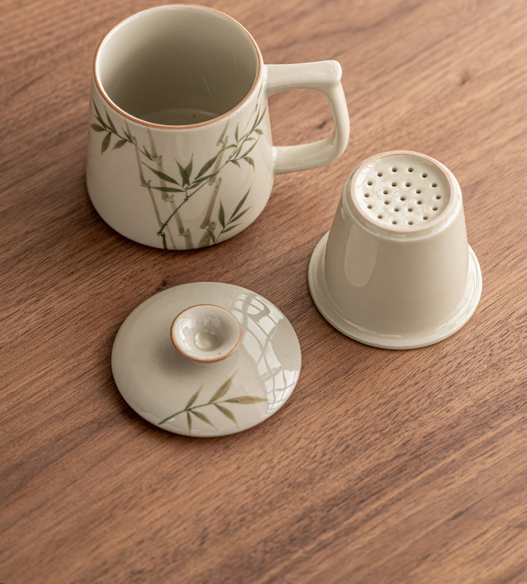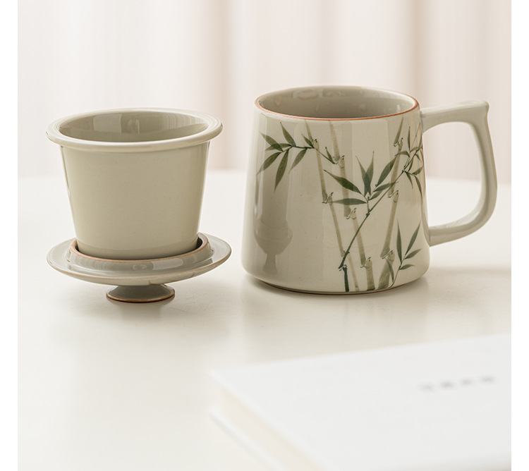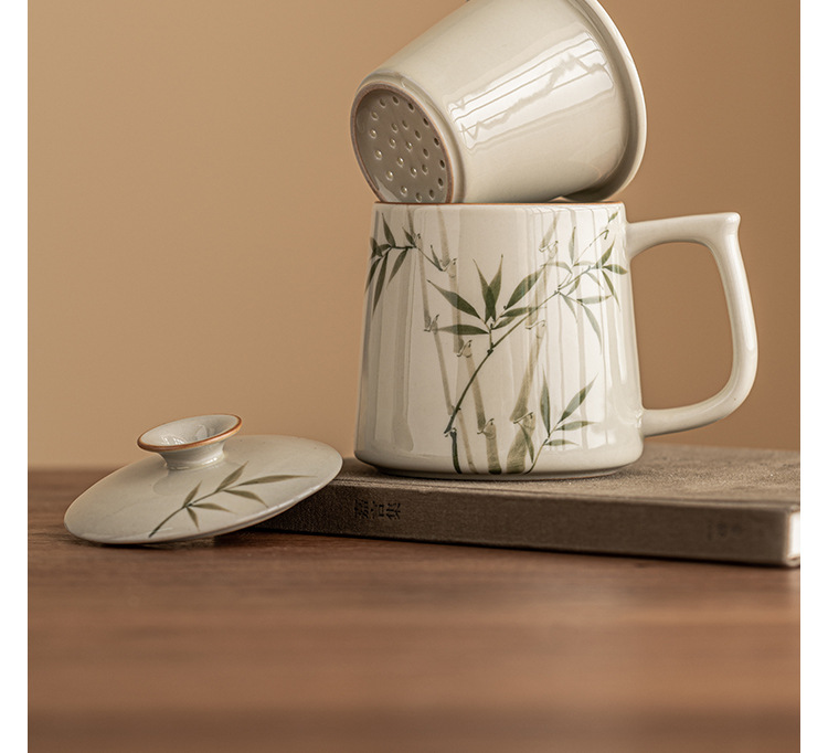 - Cốc gốm sứ bằng tre xanh ngọc bích vẽ tay Cốc văn phòng tách trà có nắp cốc uống trà cao cấp LOGO cá nhân