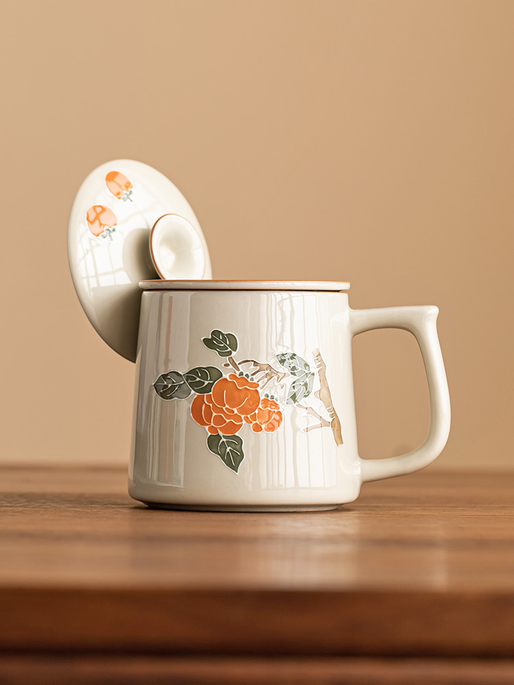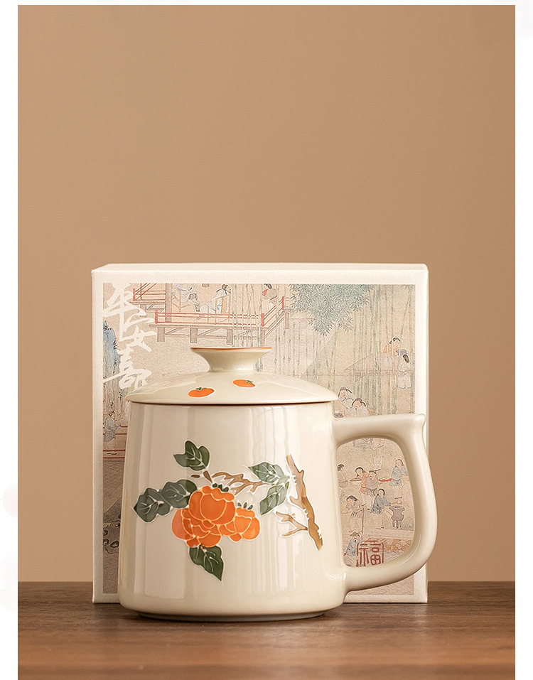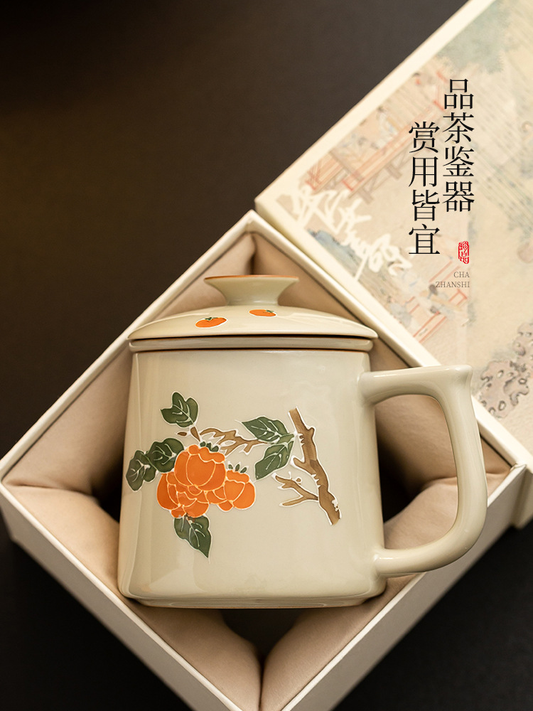 Cốc gốm sứ cao cấp có nắp, ngăn xếp bằng tay tinh khiết, hồng, hồng, trà Ruyi, cốc tách nước, cốc nước văn phòng, chống bỏng
