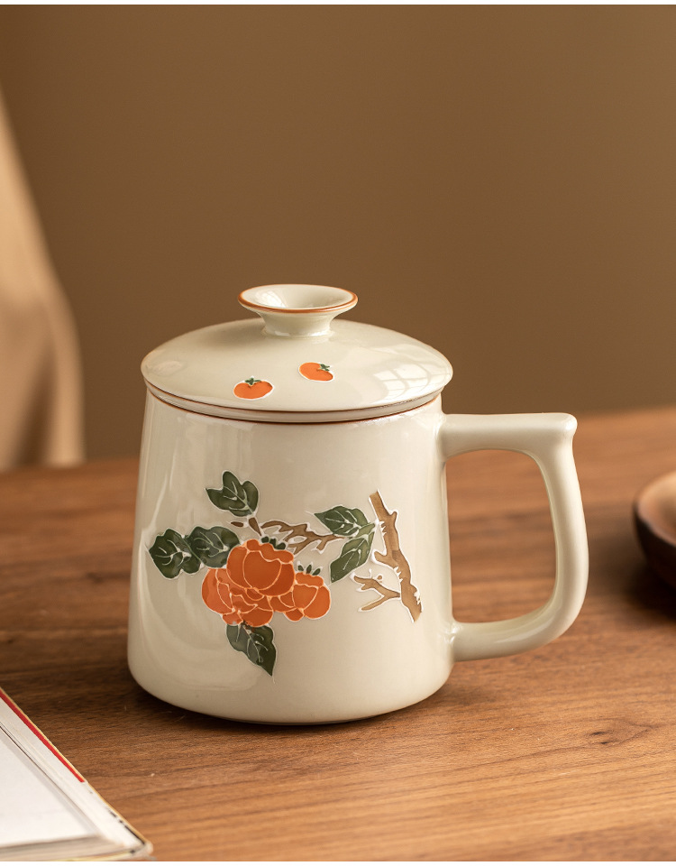 - Cốc gốm sứ cao cấp có nắp, ngăn xếp bằng tay tinh khiết, hồng, hồng, trà Ruyi, cốc tách nước, cốc nước văn phòng, chống bỏng