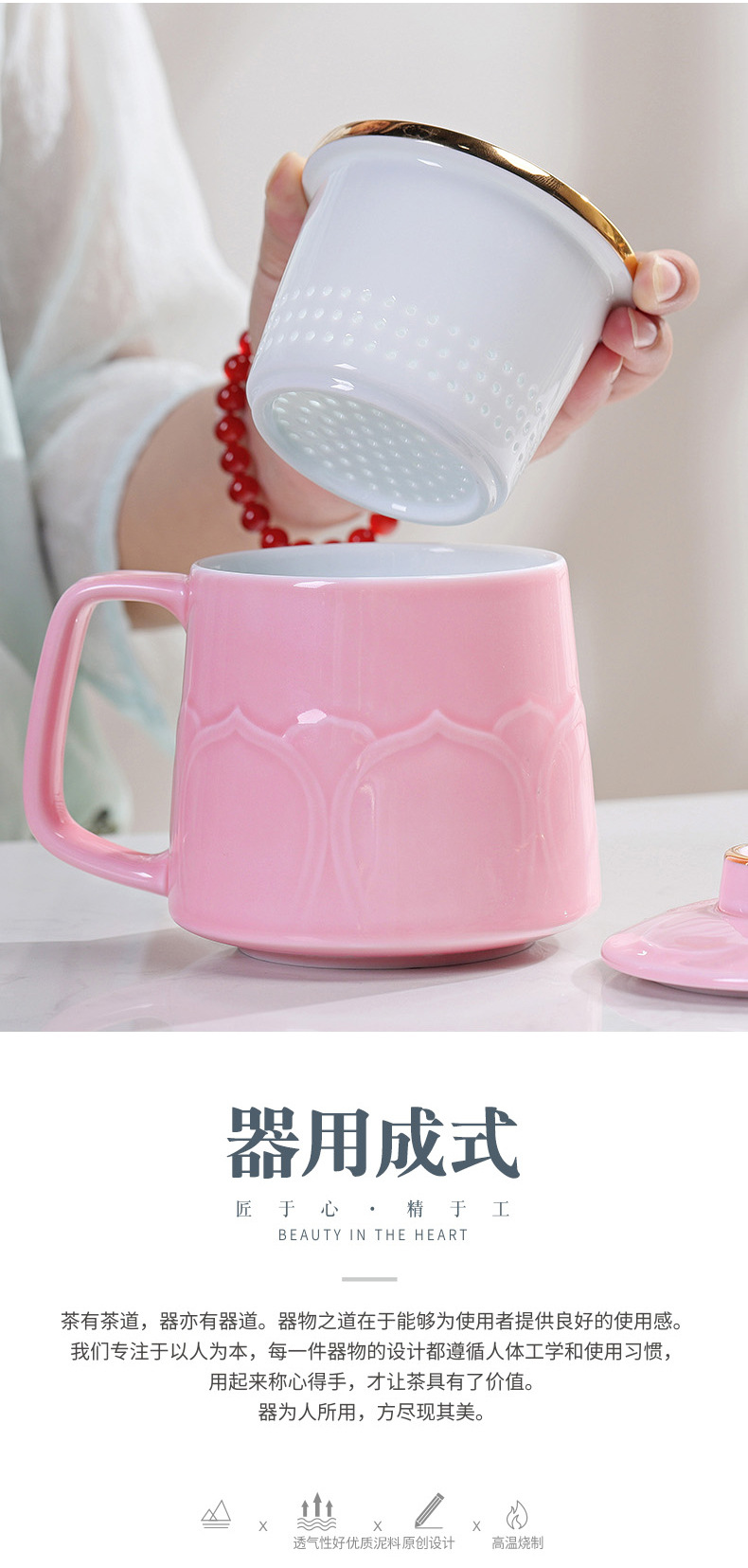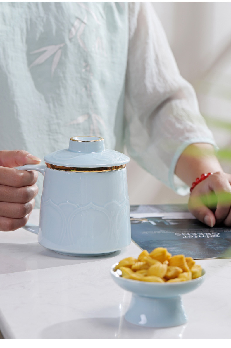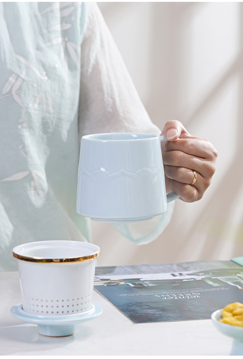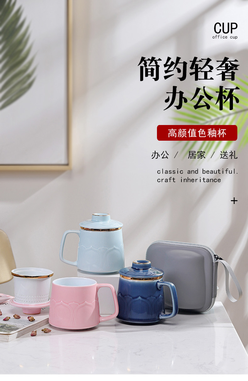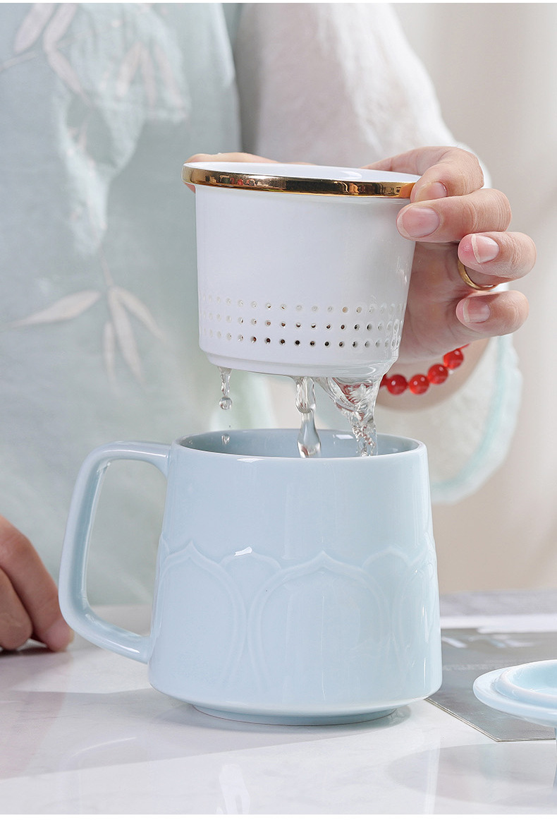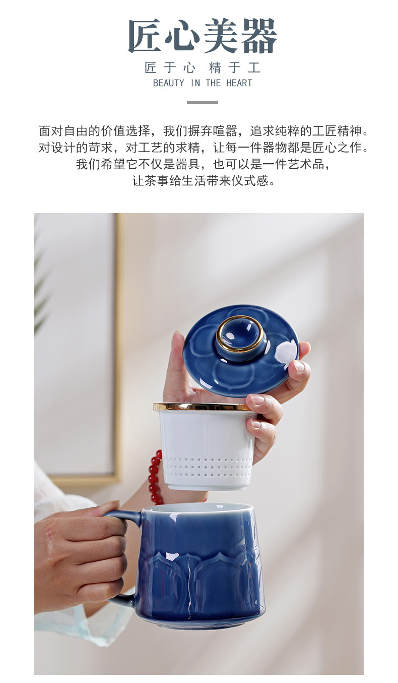 - Cốc gốm sứ cốc trà đạo Bộ Quà Tặng văn phòng gia dụng thương mại cốc lọc trà có nắp Bộ ba cốc nước