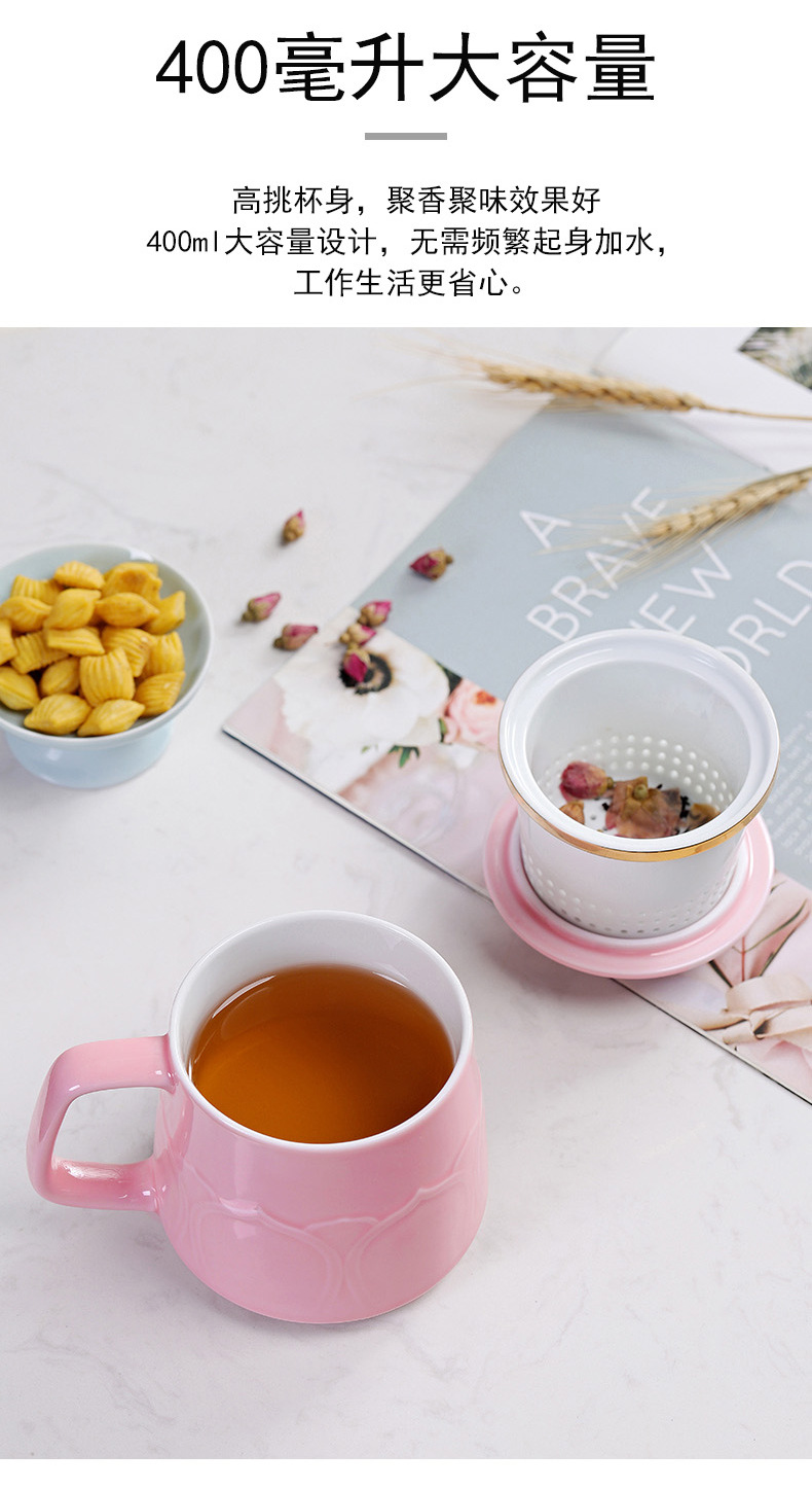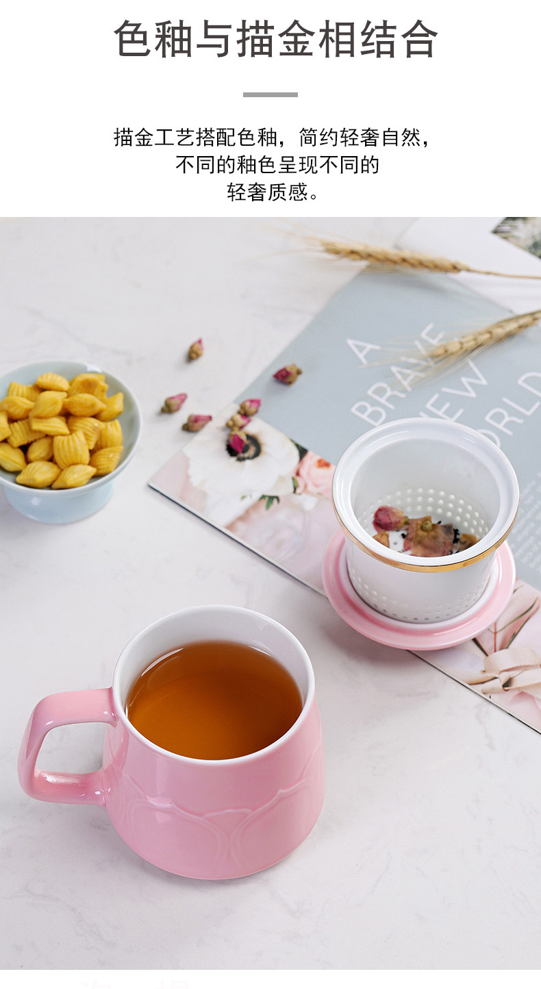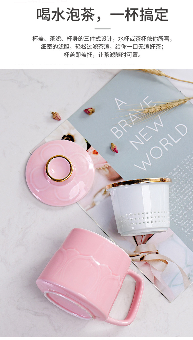 Cốc gốm sứ cốc trà đạo Bộ Quà Tặng văn phòng gia dụng thương mại cốc lọc trà có nắp Bộ ba cốc nước