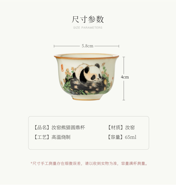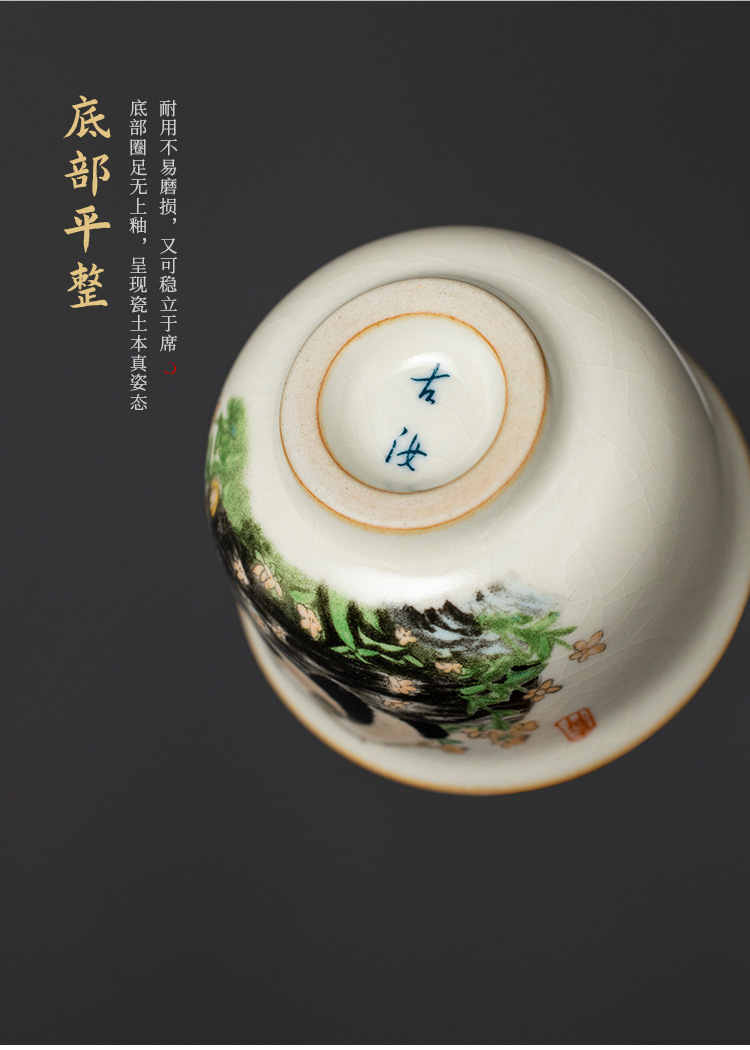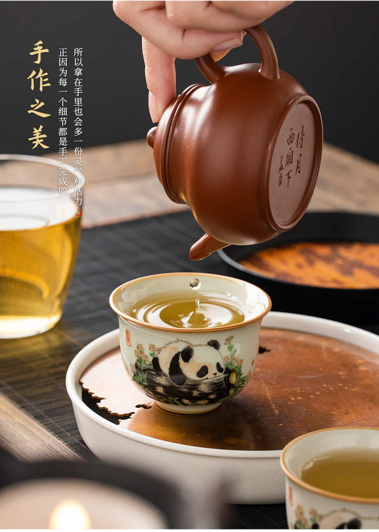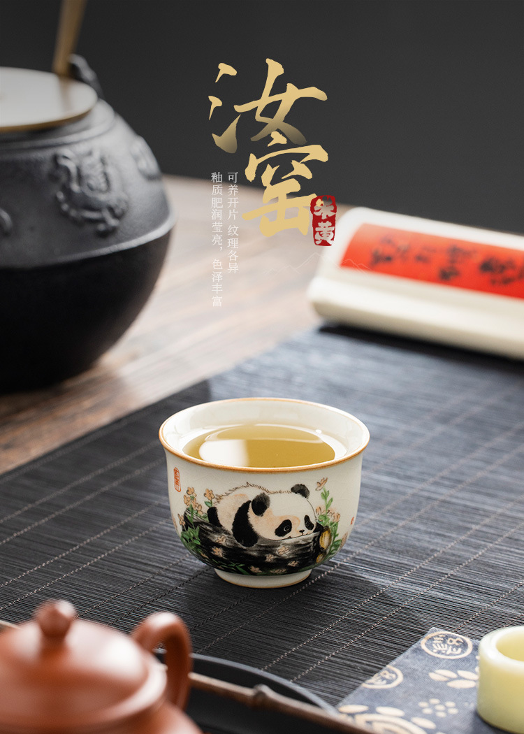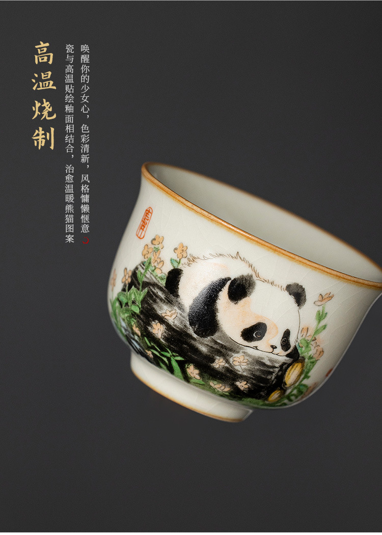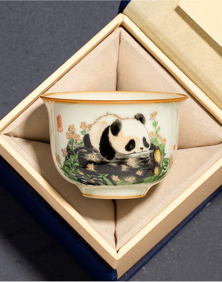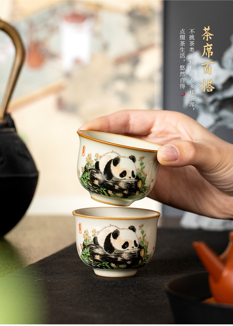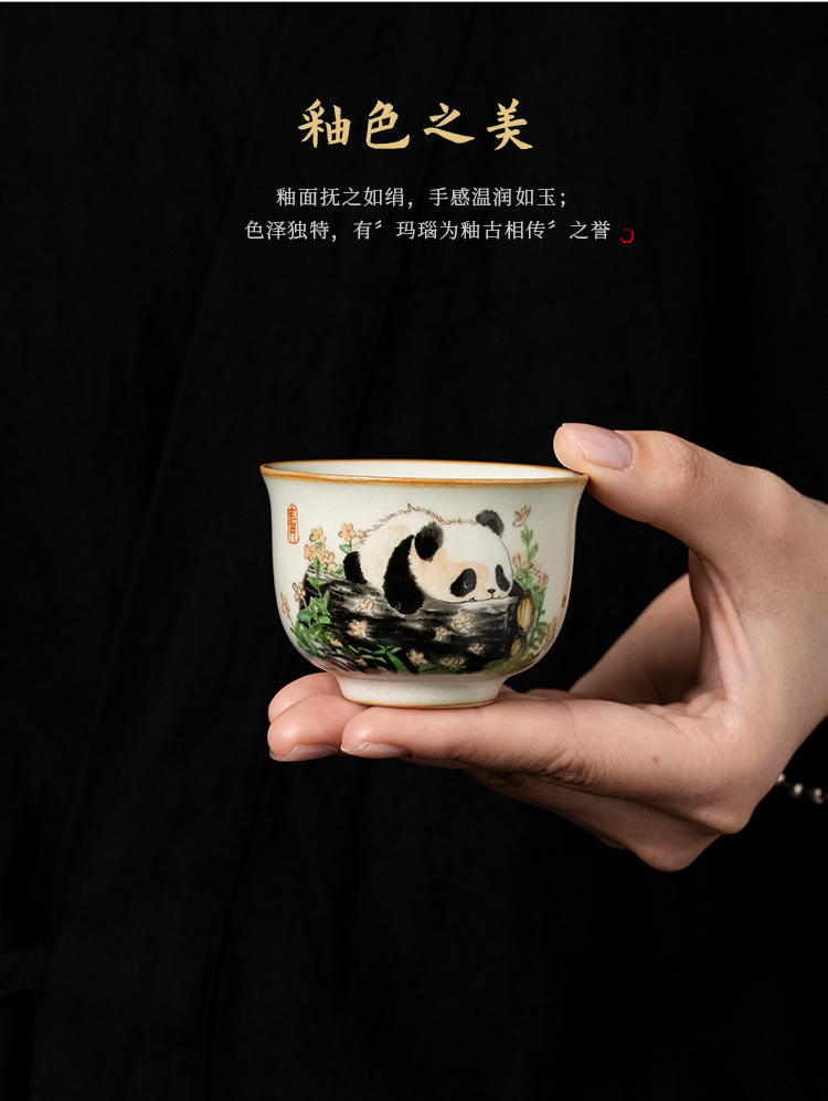 - Cốc gốm sứ Ru Kiln Panda Round Ding Cốc gia dụng Cốc chủ nhân Cốc trà cao cấp tinh tế Bộ trà Kung Fu