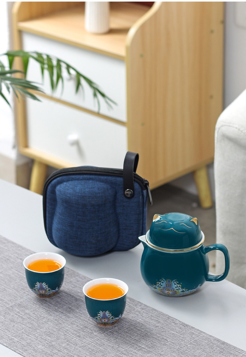 Cốc hành khách di động một bình Hai cốc Bộ trà du lịch Mèo Bộ nhỏ gia công ngoài trời cắm trại Cốc pha trà Kung Fu