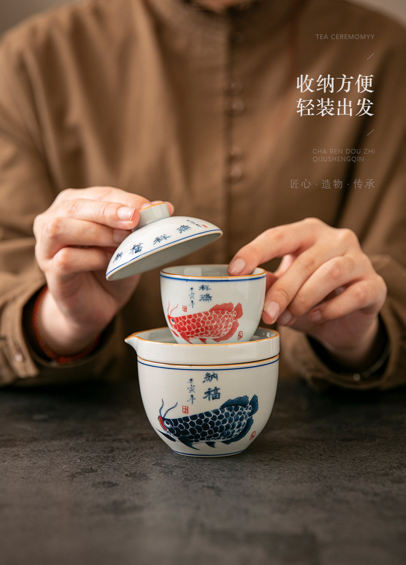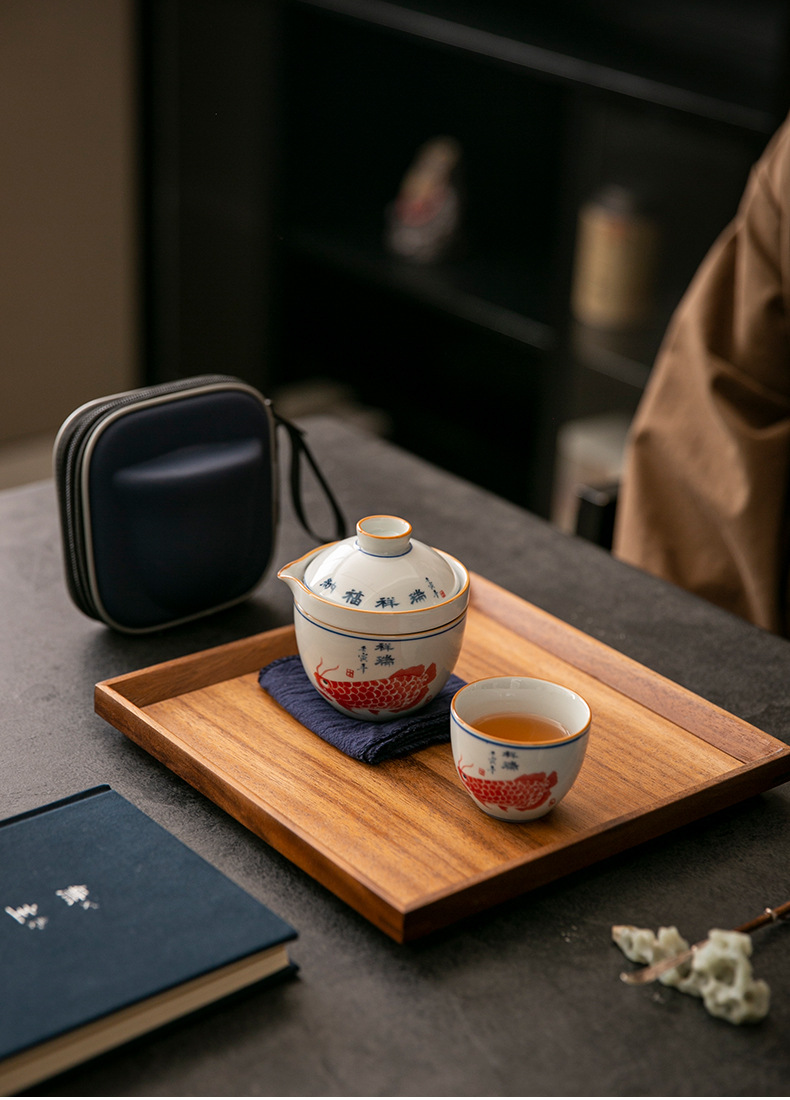 - Cốc hành khách nhanh Túi lưu trữ gốm sứ Rồng đỏ Nồi đặc biệt cá nhân Trà Kung Fu Trà Trà Cốc du lịch di động trên ô tô
