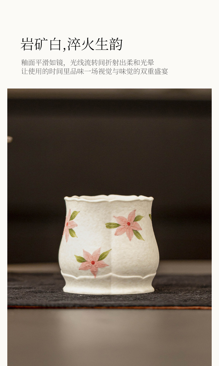 Cốc hoa anh đào trắng, cốc hoa sen, cốc gốm sứ cao cấp, cốc chủ nhân, cốc uống trà kiểu Trung Quốc chuyên dụng cá nhân, cảm giác cao cấp