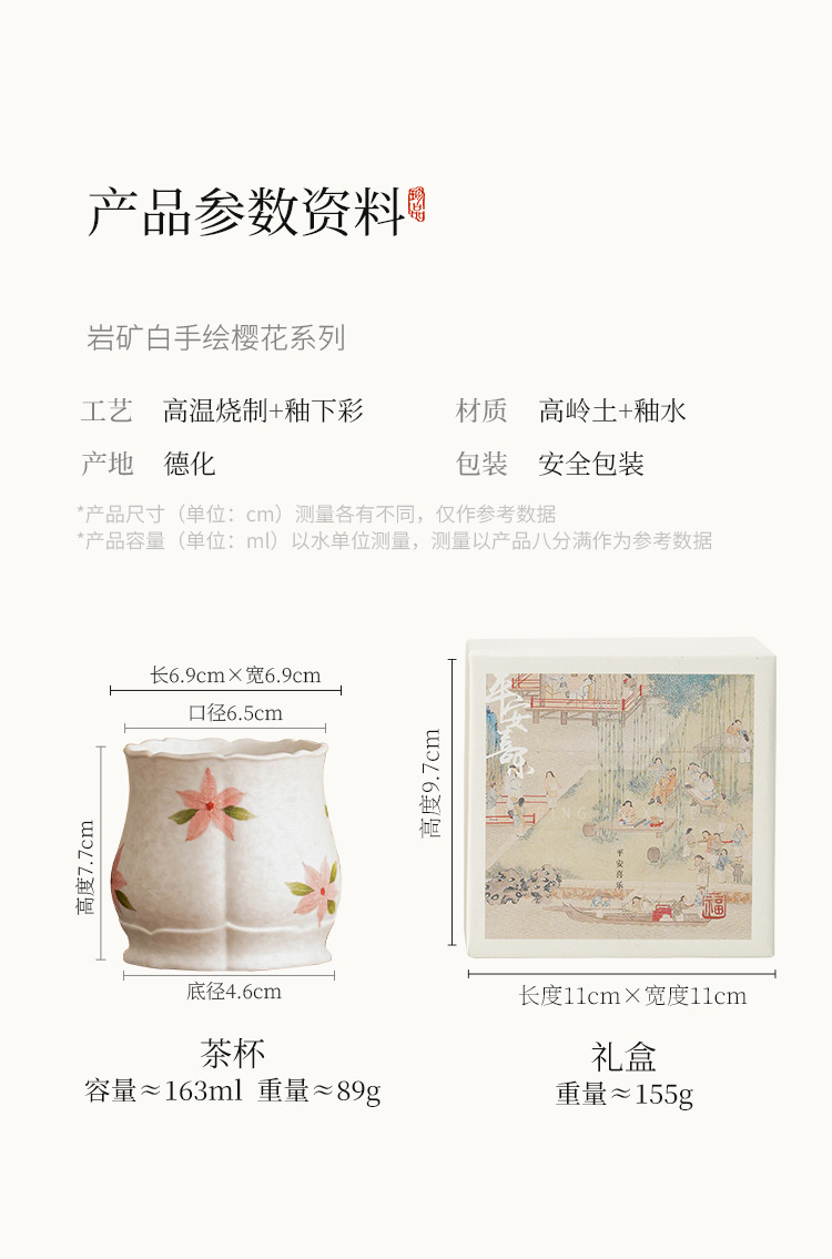 - Cốc hoa anh đào trắng, cốc hoa sen, cốc gốm sứ cao cấp, cốc chủ nhân, cốc uống trà kiểu Trung Quốc chuyên dụng cá nhân, cảm giác cao cấp