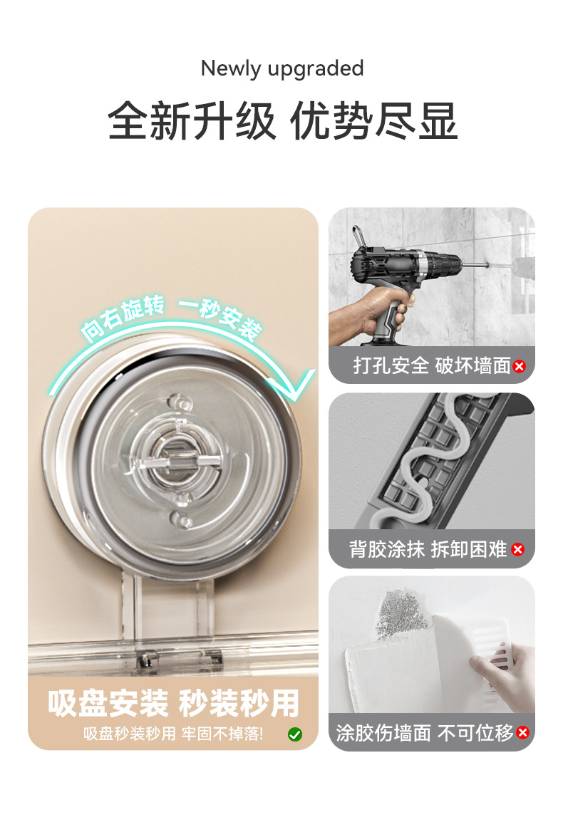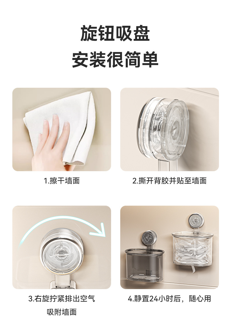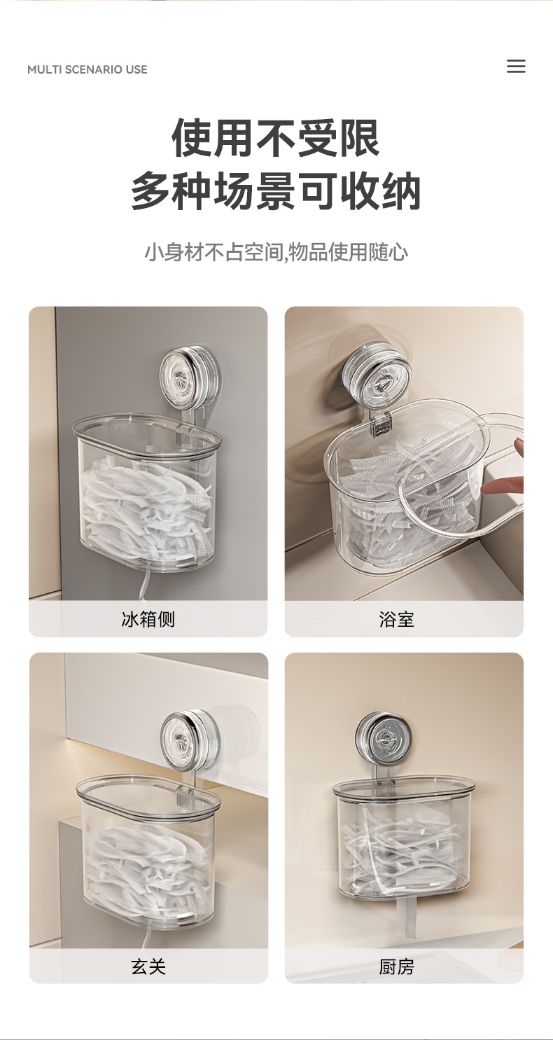 - Cốc hút bọc màng bám hộp đựng đồ dùng gia đình bếp treo tường hộp đựng đồ dùng một lần có thể tháo rời