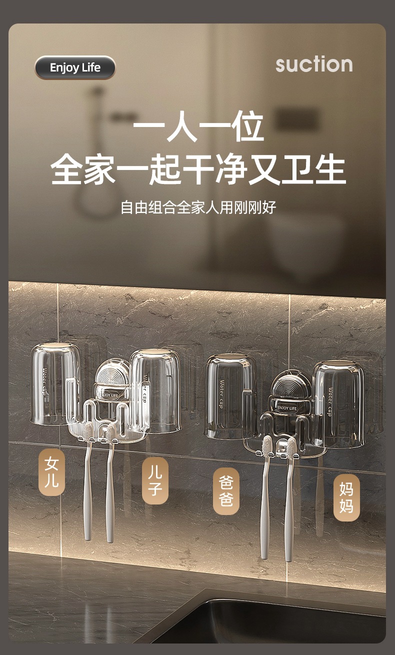 Cốc hút, giá để bàn chải đánh răng, giá để đồ, Cốc đựng bàn chải đánh răng điện không đục lỗ, dụng cụ nha khoa gia đình, giá treo cốc đựng bàn chải đánh răng cặp đôi