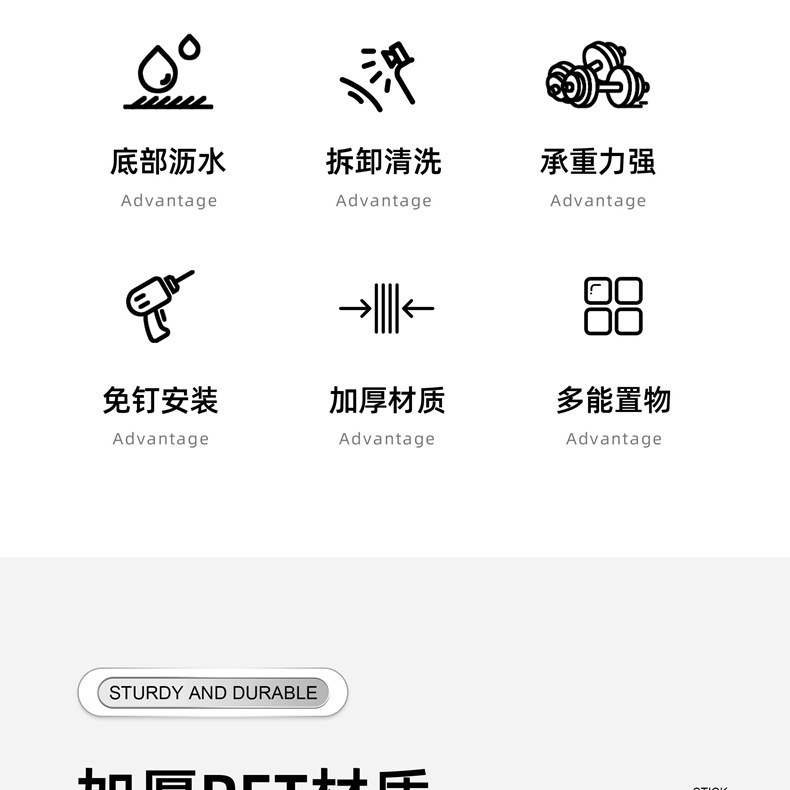 - Cốc hút, khăn rửa mặt bỏ đi, hộp đựng đồ treo tường, giá để đồ, khăn lau mặt, giá để đồ, giỏ treo phòng tắm