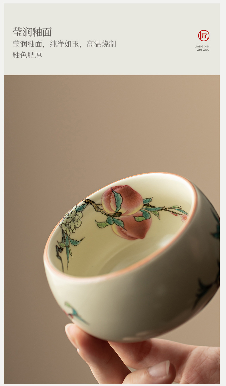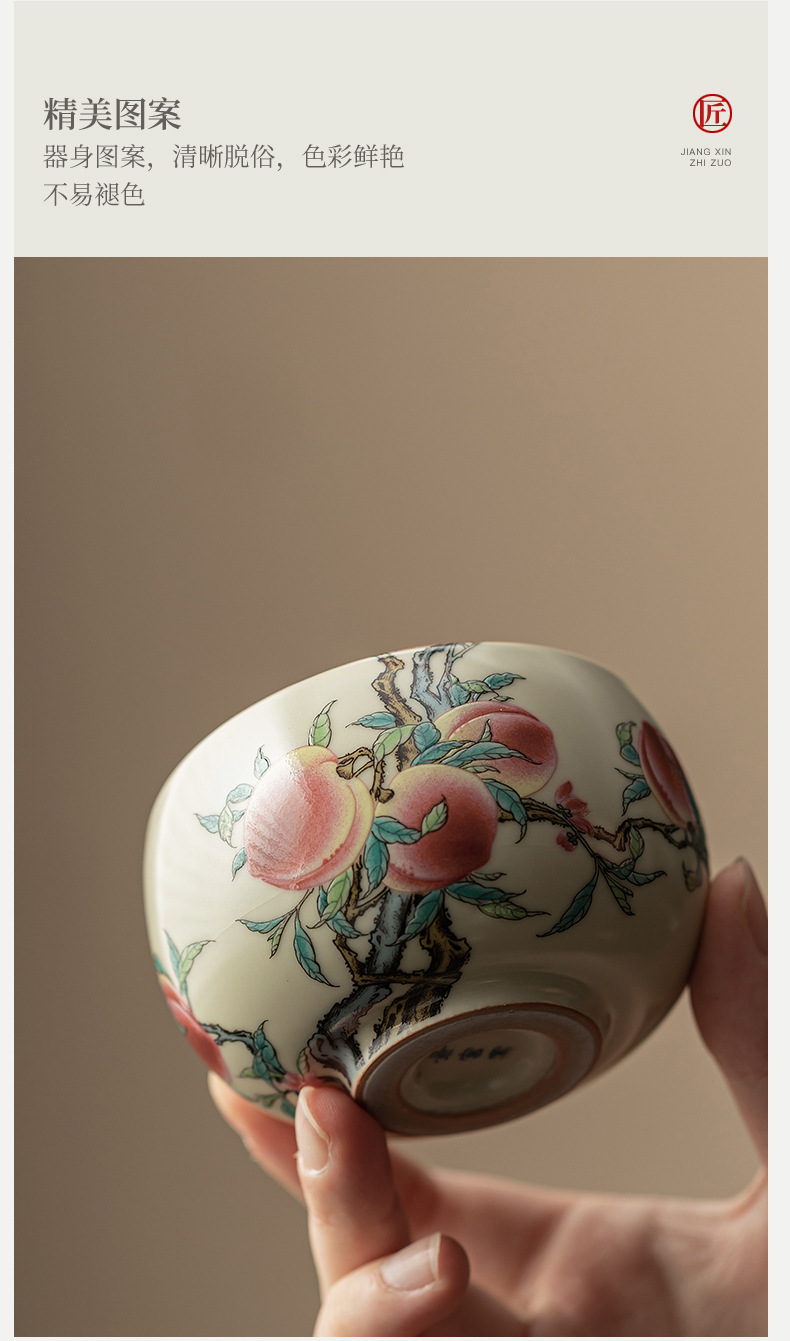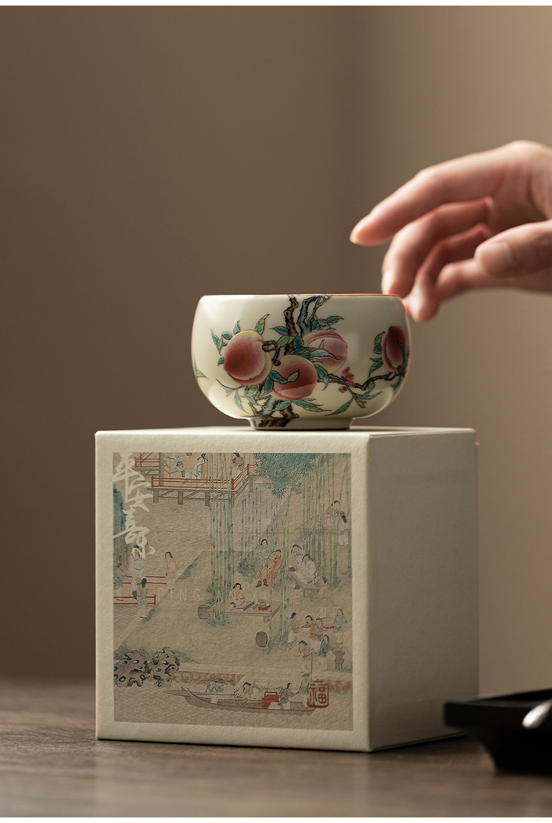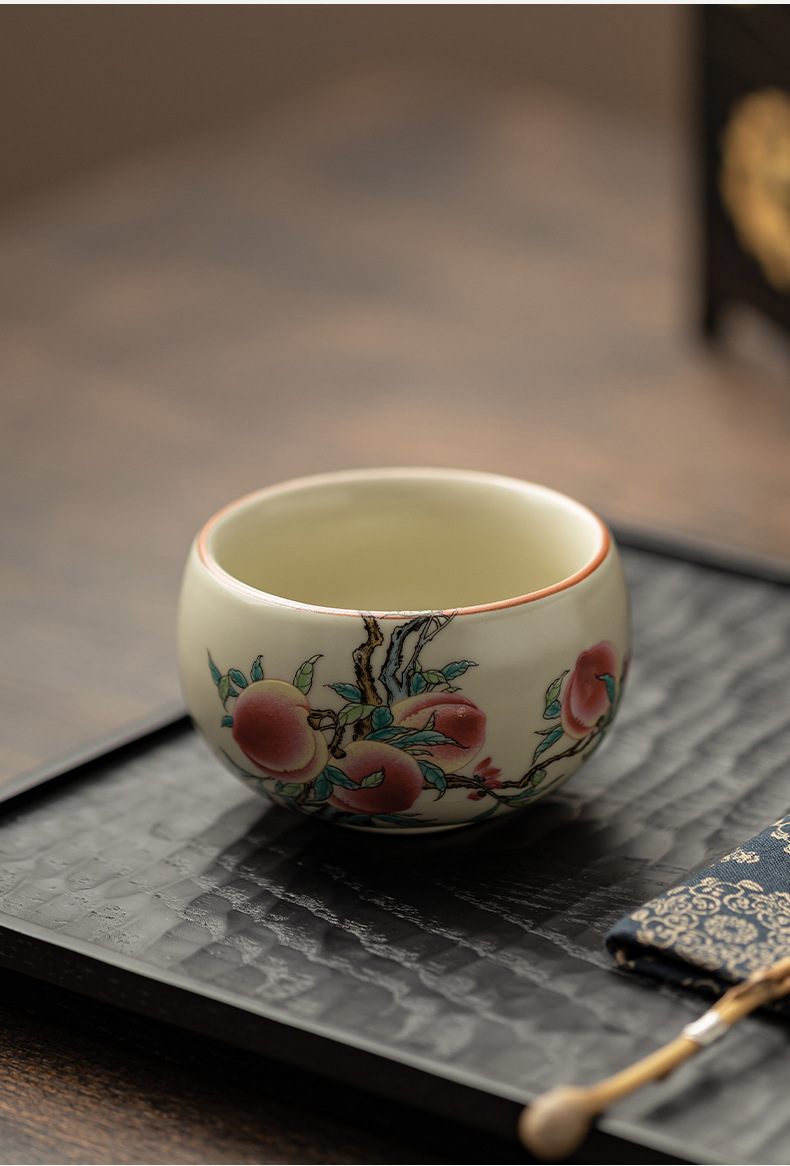 Cốc La Hán chín đào lò Ru cổ cốc gia chủ cốc gốm sứ cốc trà có thể nâng cốc uống trà cổ điển kiểu Trung Quốc