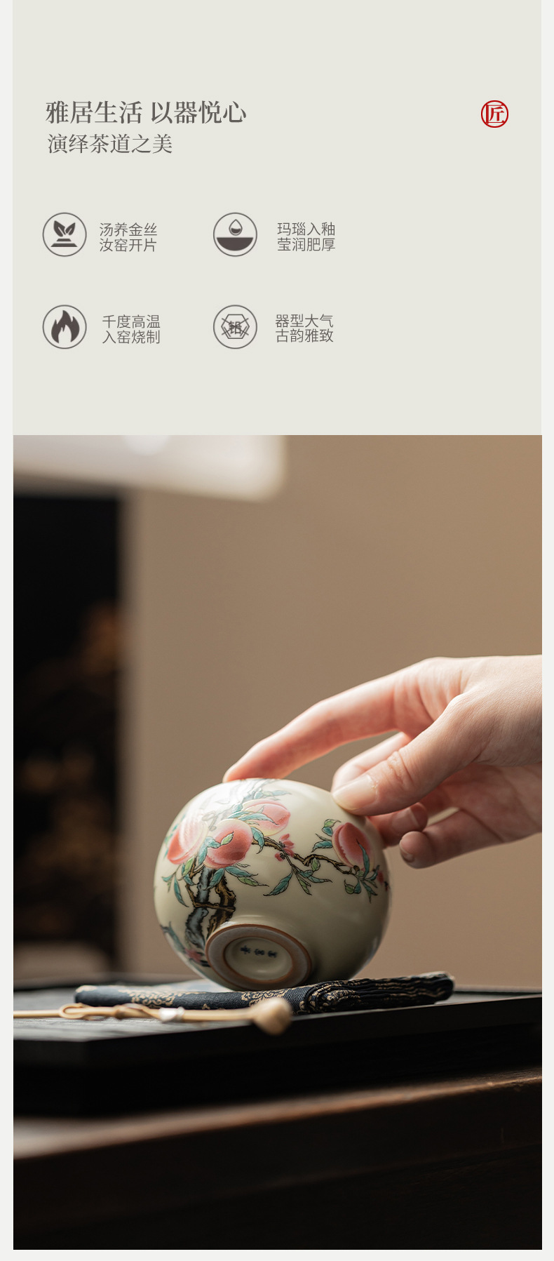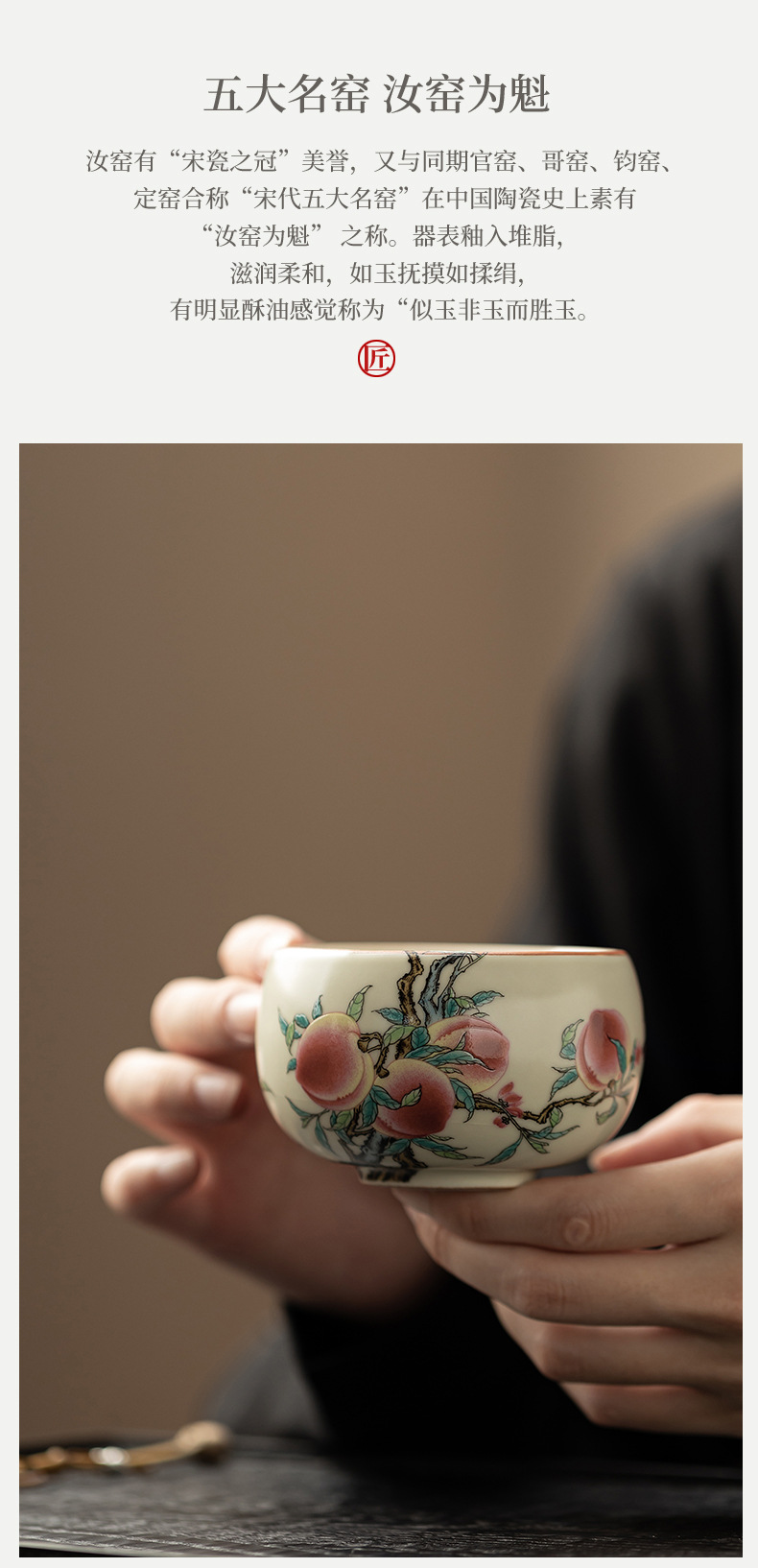 - Cốc La Hán chín đào lò Ru cổ cốc gia chủ cốc gốm sứ cốc trà có thể nâng cốc uống trà cổ điển kiểu Trung Quốc
