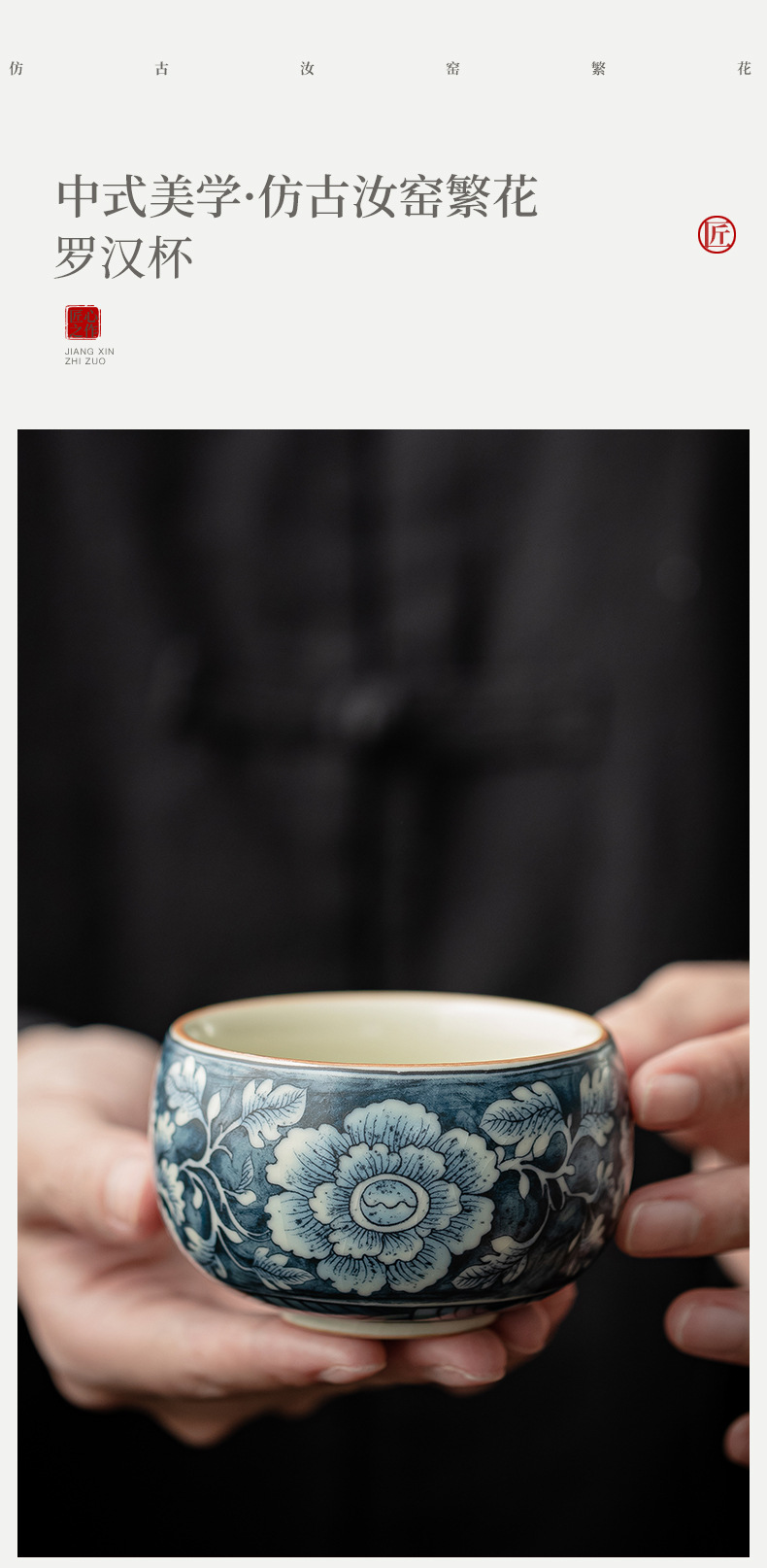 Cốc La Hán hoa trong lò Ru cổ, tách trà nhỏ có thể nâng được, cốc chủ nhân, cốc trà, Bộ trà Kung Fu gia dụng Trung Quốc