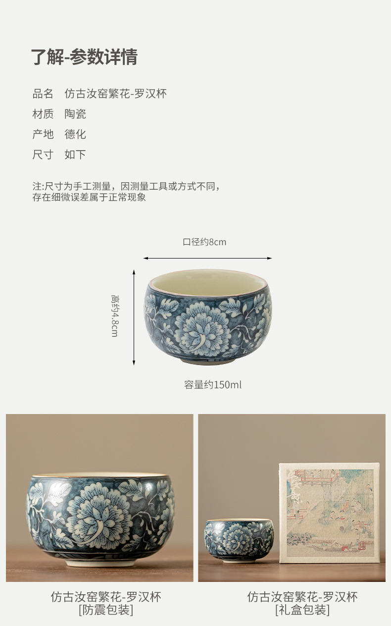 - Cốc La Hán hoa trong lò Ru cổ, tách trà nhỏ có thể nâng được, cốc chủ nhân, cốc trà, Bộ trà Kung Fu gia dụng Trung Quốc