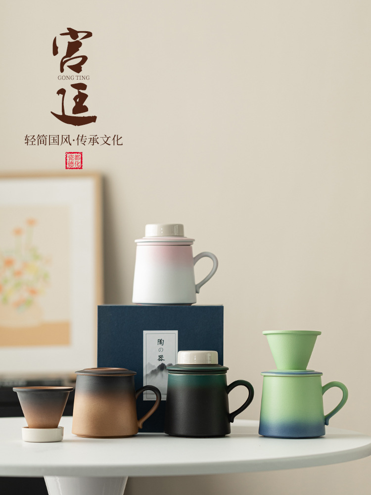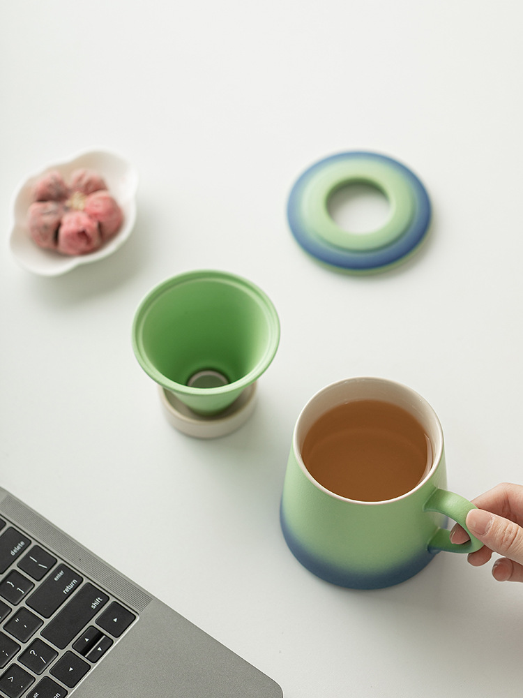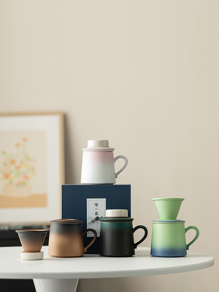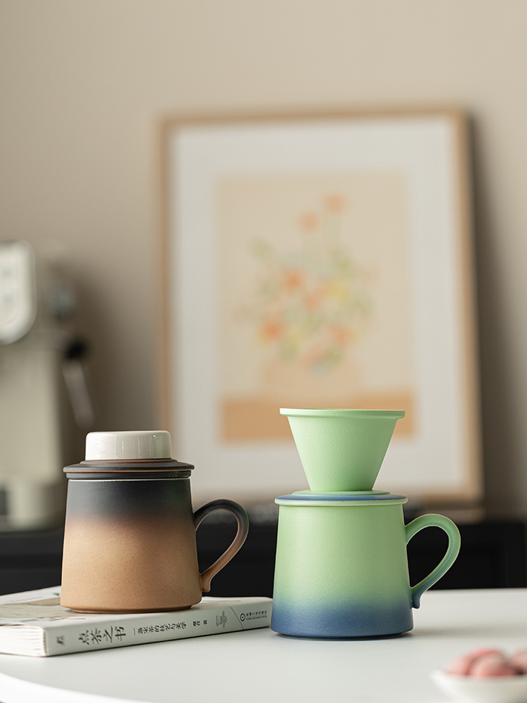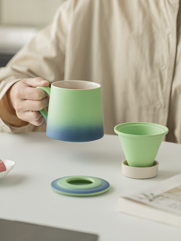 Cốc lọc trà cà phê màu gradient cốc nước gốm sứ giá trị cao cốc cà phê cá nhân văn phòng cốc tách trà