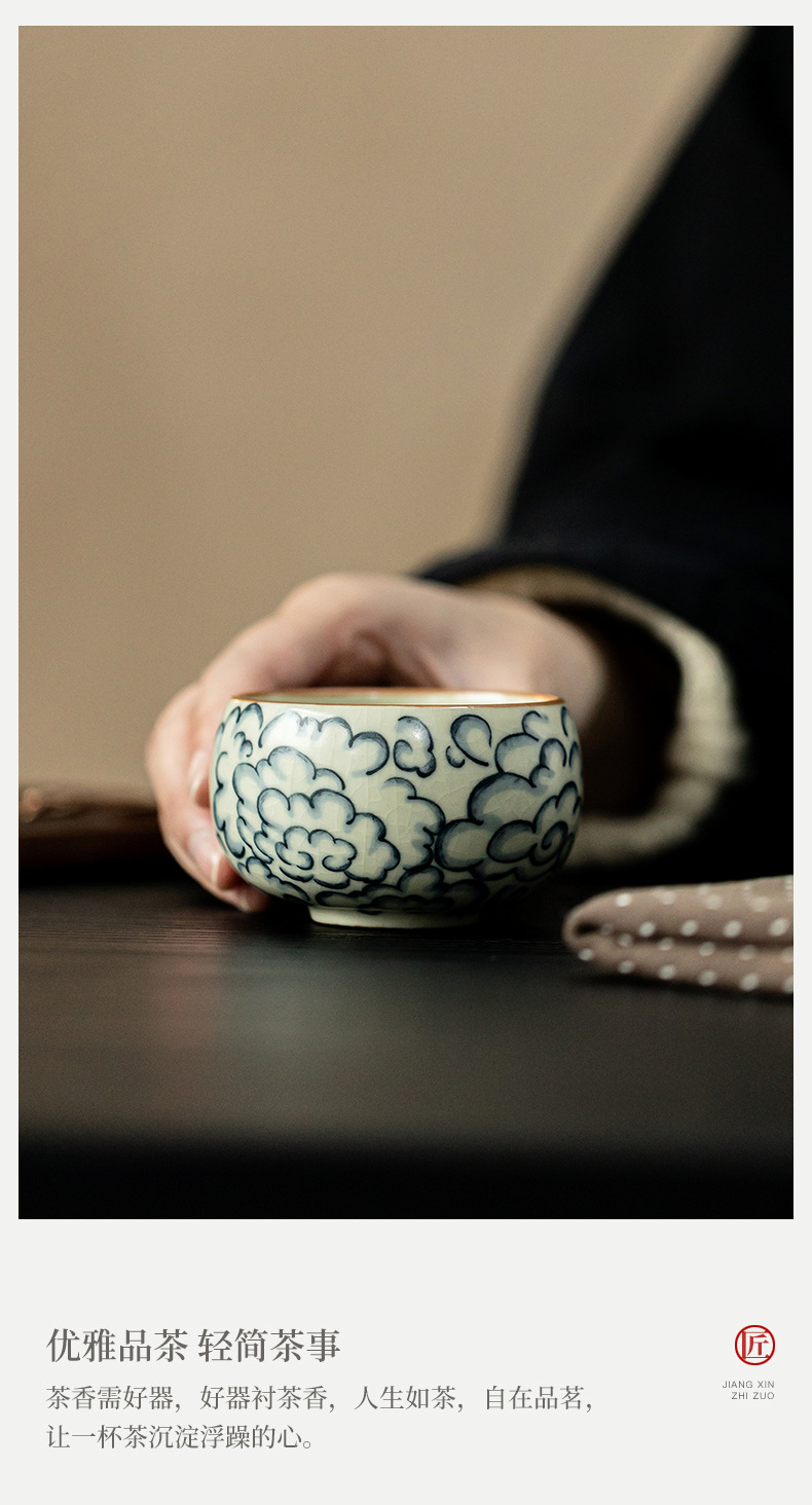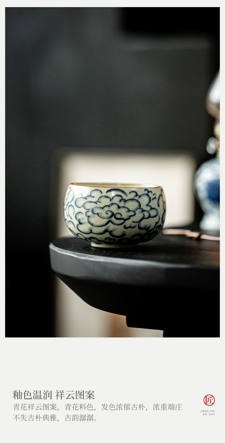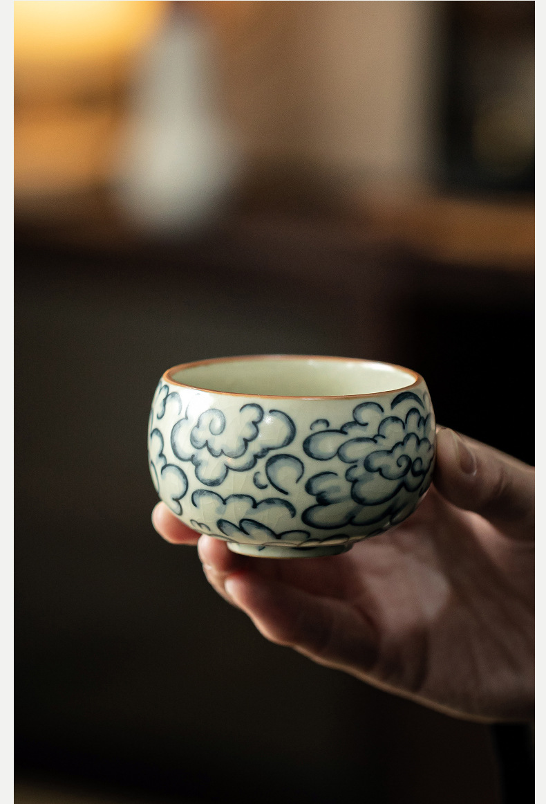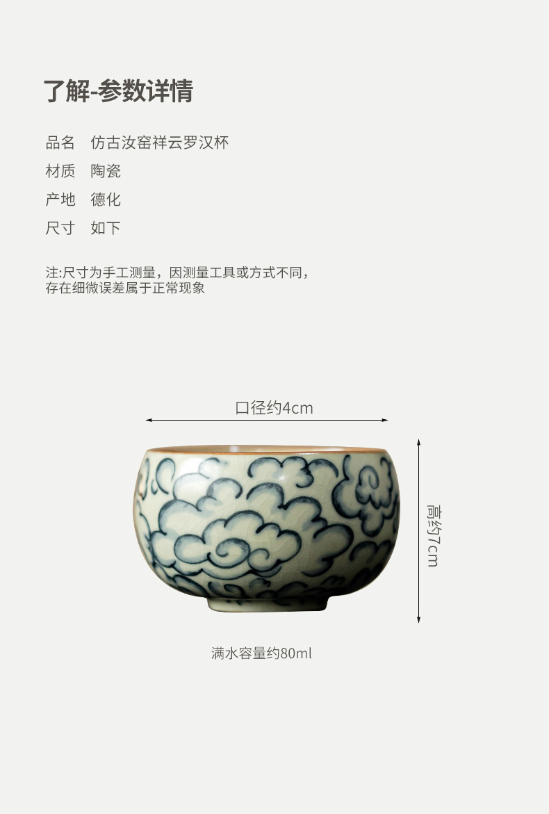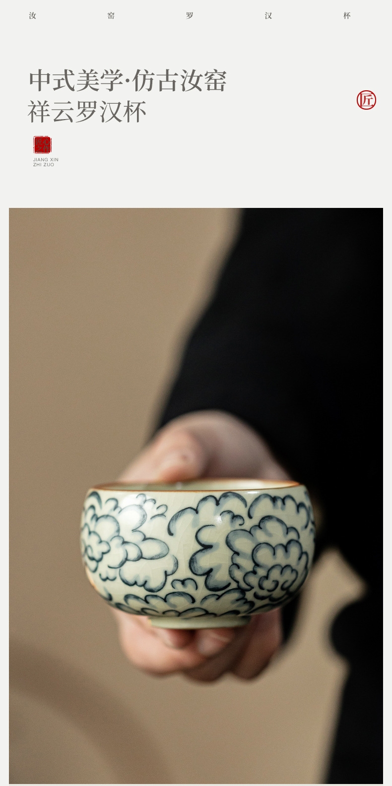 - Cốc Luohan mây tốt lành kiểu Trung Quốc cổ cốc trà gốm sứ Đức Hoa cốc lớn cốc cá nhân cốc Ru lò Kung Fu Bộ trà cốc trà