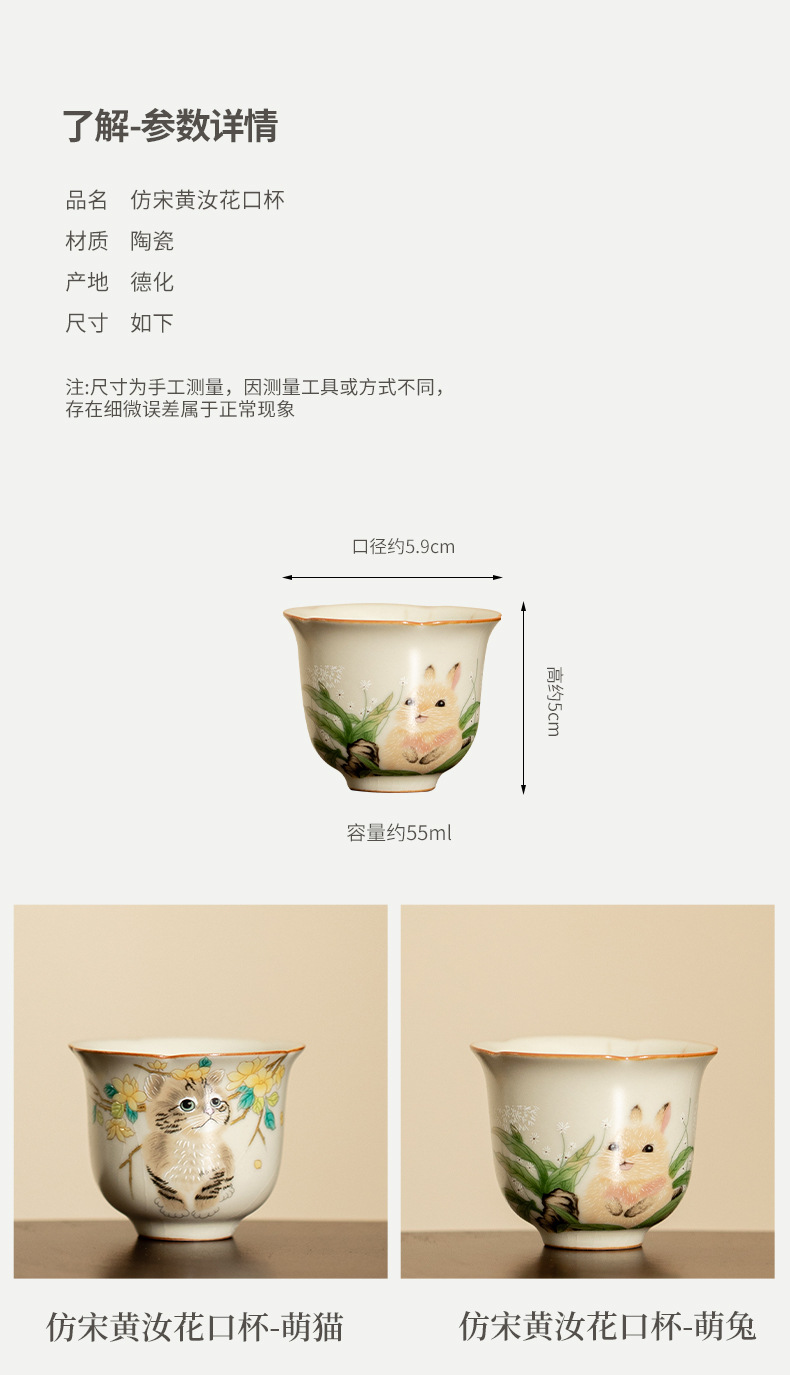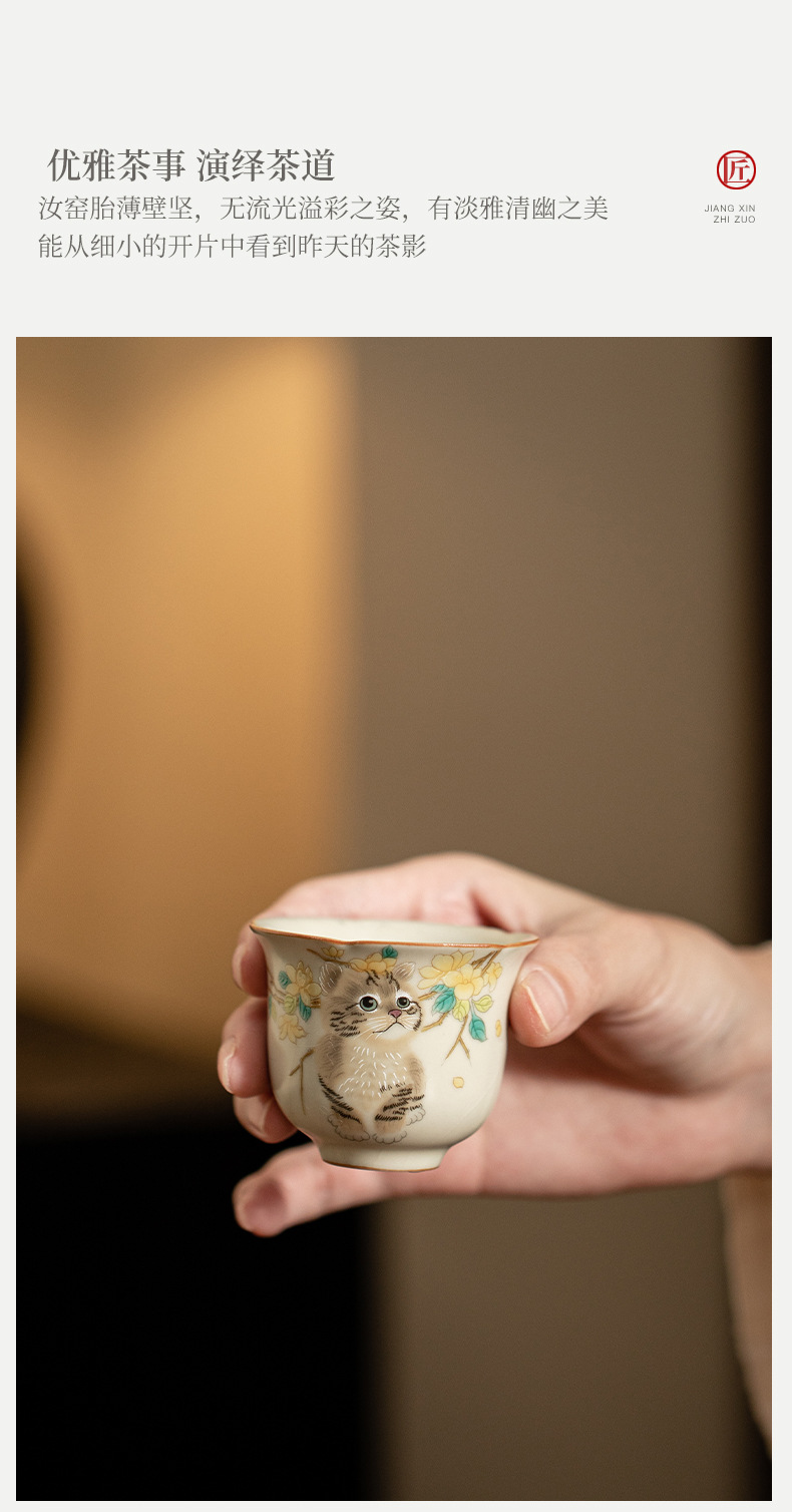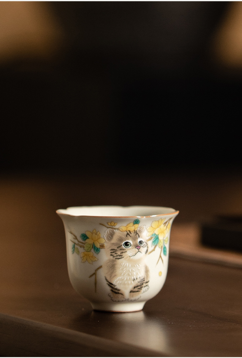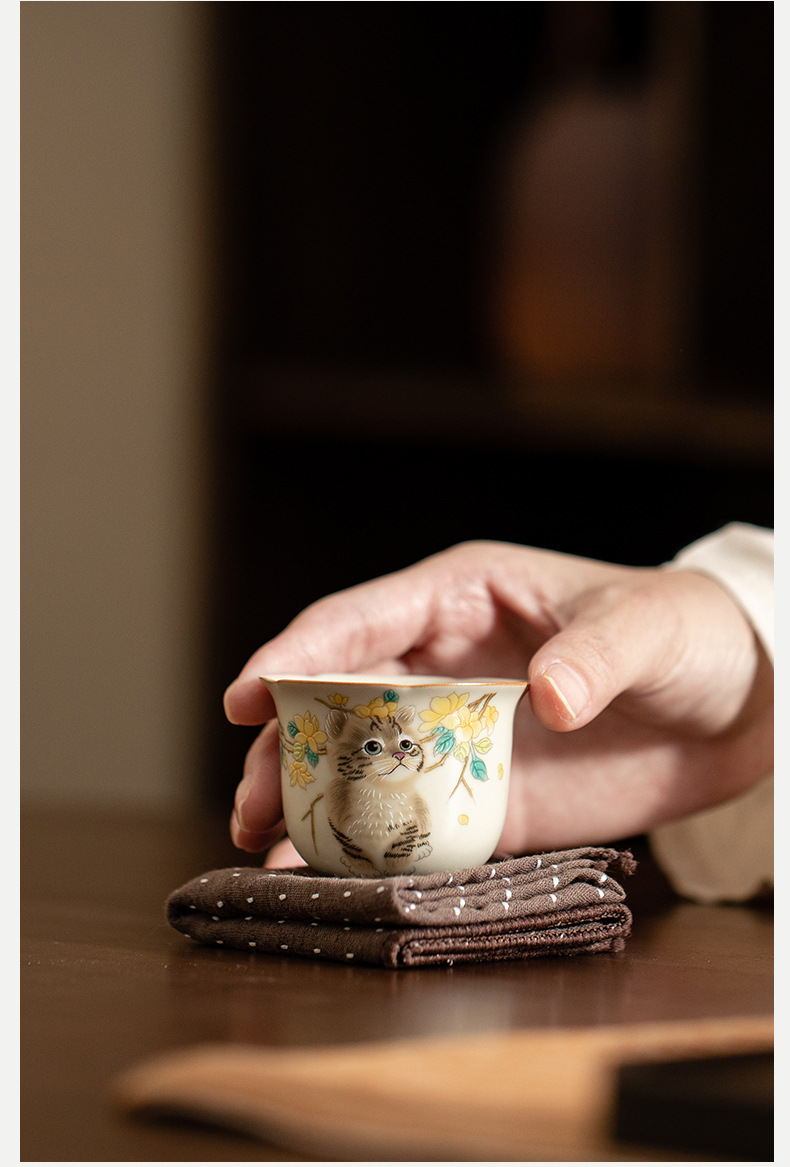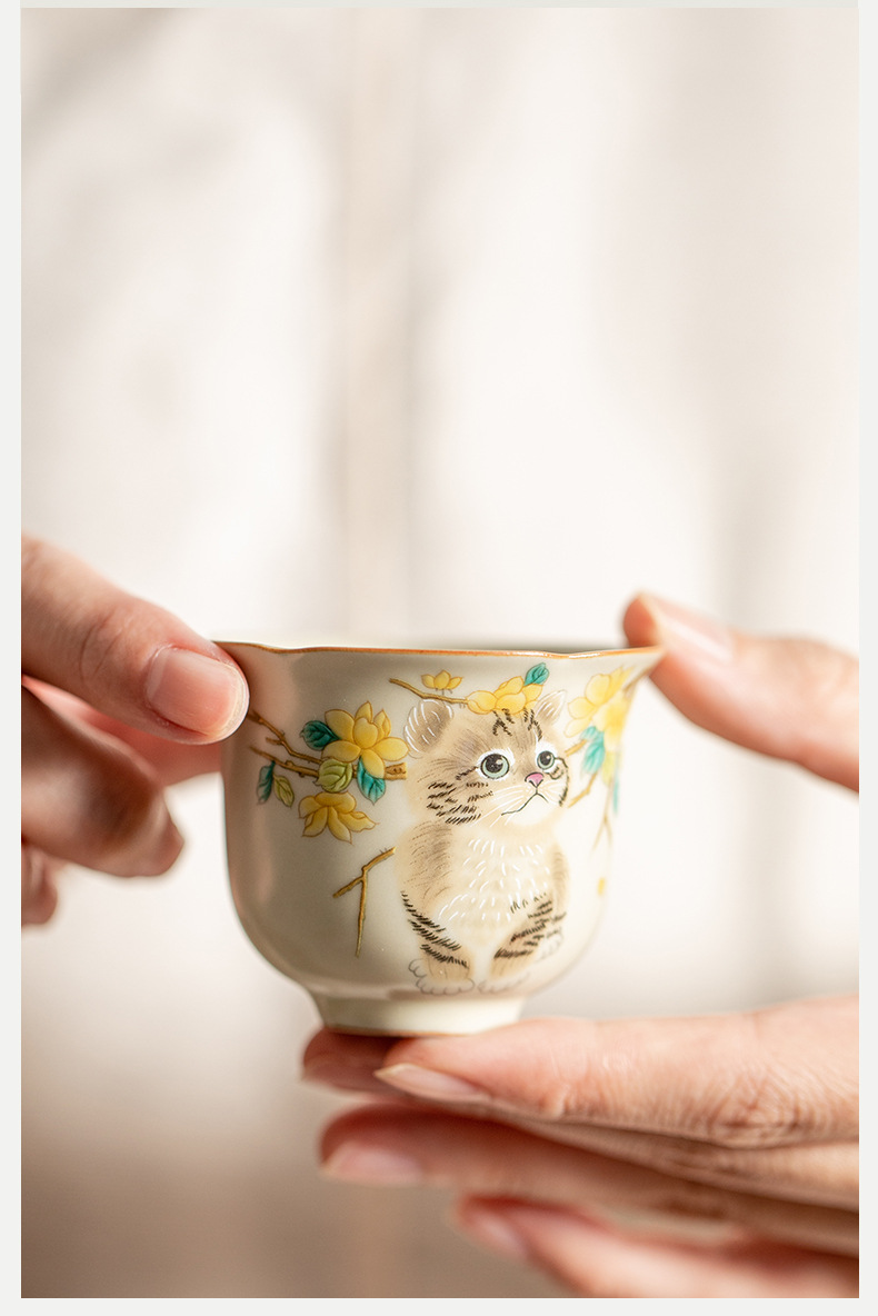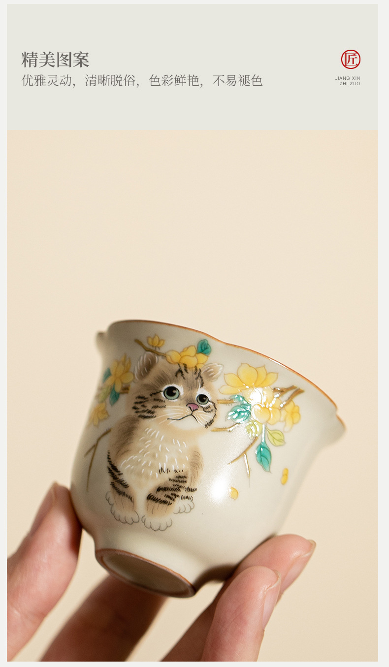 - Cốc miệng hoa lò Hoàng Ru giả đời Tống, cốc trà gốm sứ, cốc chủ nhân mèo dễ thương, cốc uống trà gia dụng, cốc đơn, mở, có thể nâng