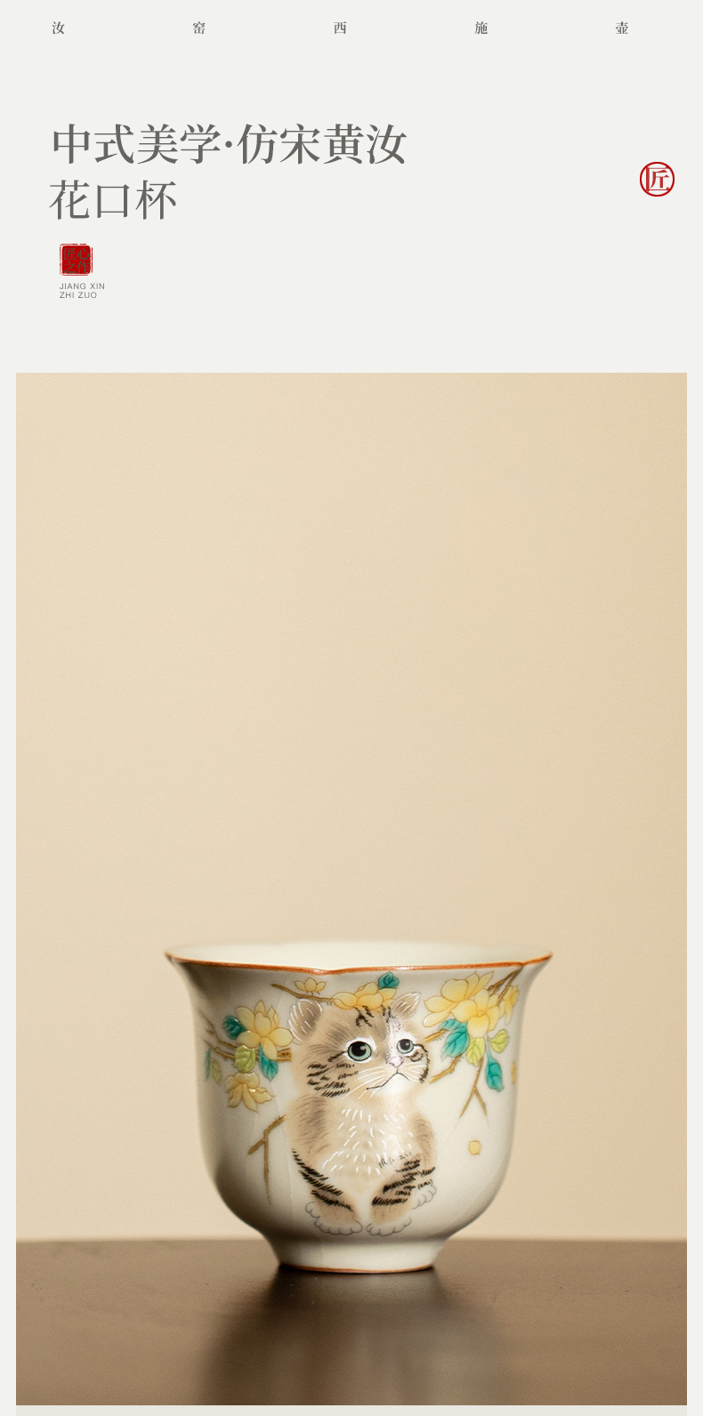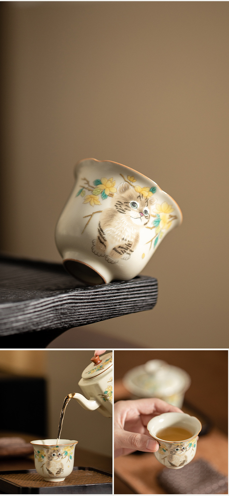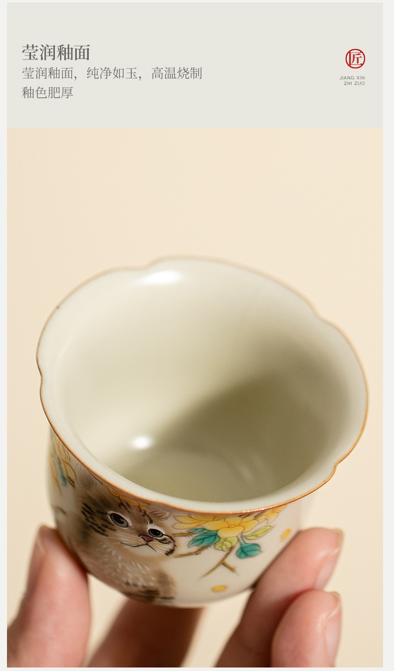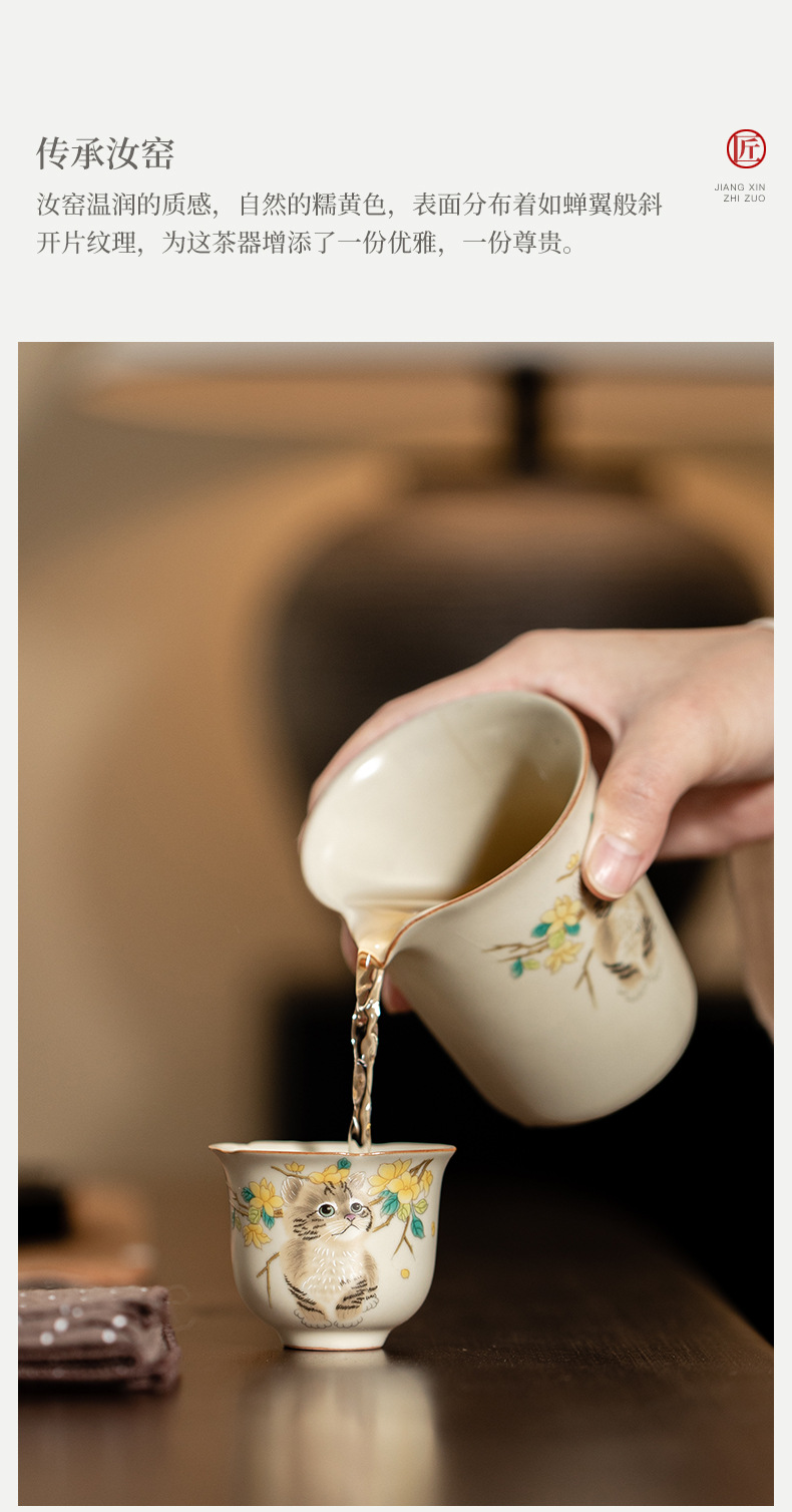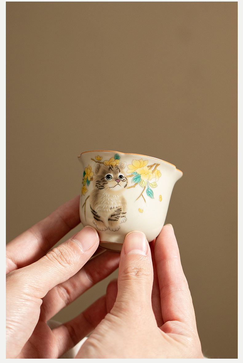 - Cốc miệng hoa lò Hoàng Ru giả đời Tống, cốc trà gốm sứ, cốc chủ nhân mèo dễ thương, cốc uống trà gia dụng, cốc đơn, mở, có thể nâng