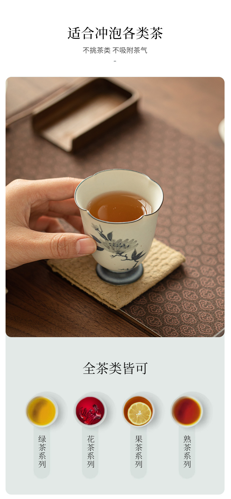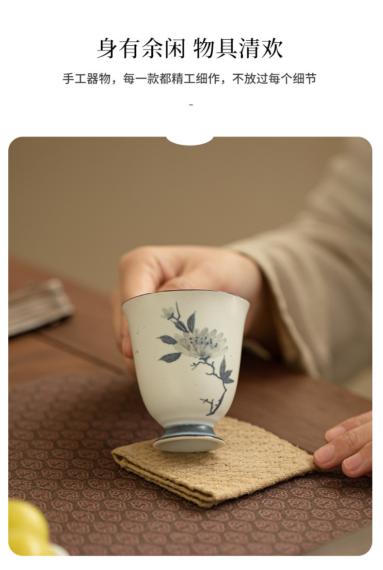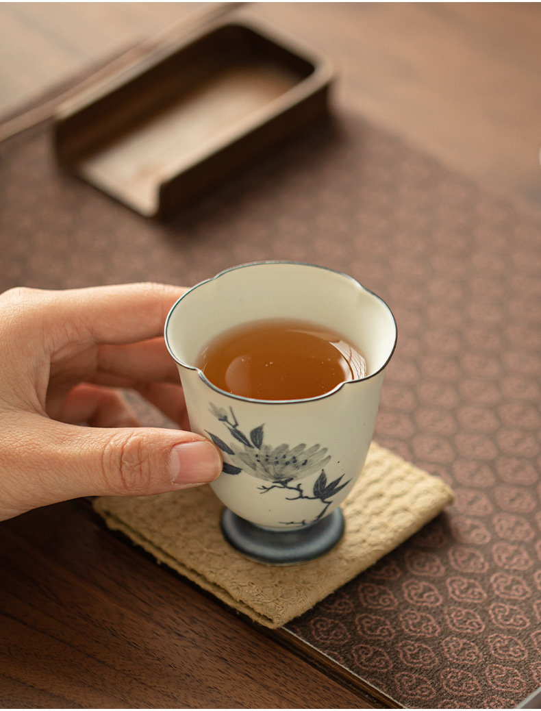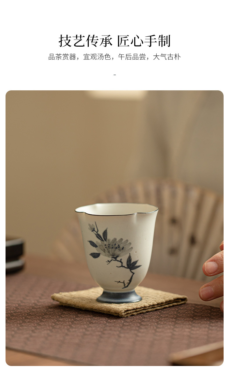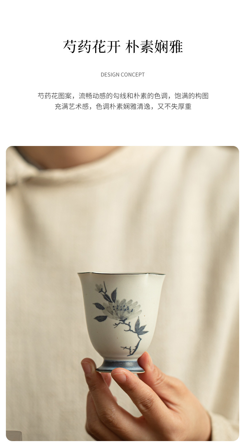- Cốc miệng hoa mẫu đơn vẽ tay cổ điển, cốc chủ nhân gốm sứ gia dụng, cốc trà chuyên dụng cá nhân, bộ trà, cốc trà