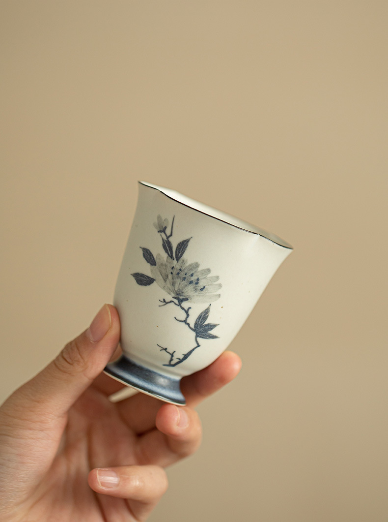 Cốc miệng hoa mẫu đơn vẽ tay cổ điển, cốc chủ nhân gốm sứ gia dụng, cốc trà chuyên dụng cá nhân, bộ trà, cốc trà