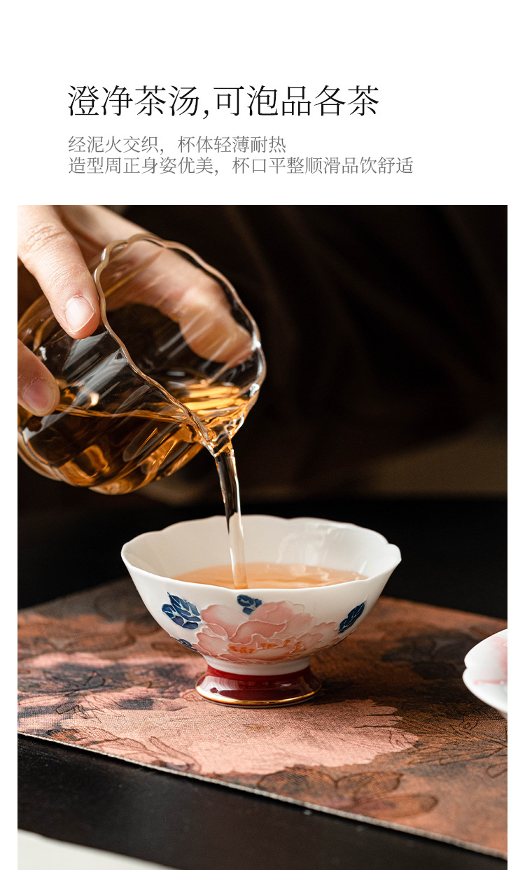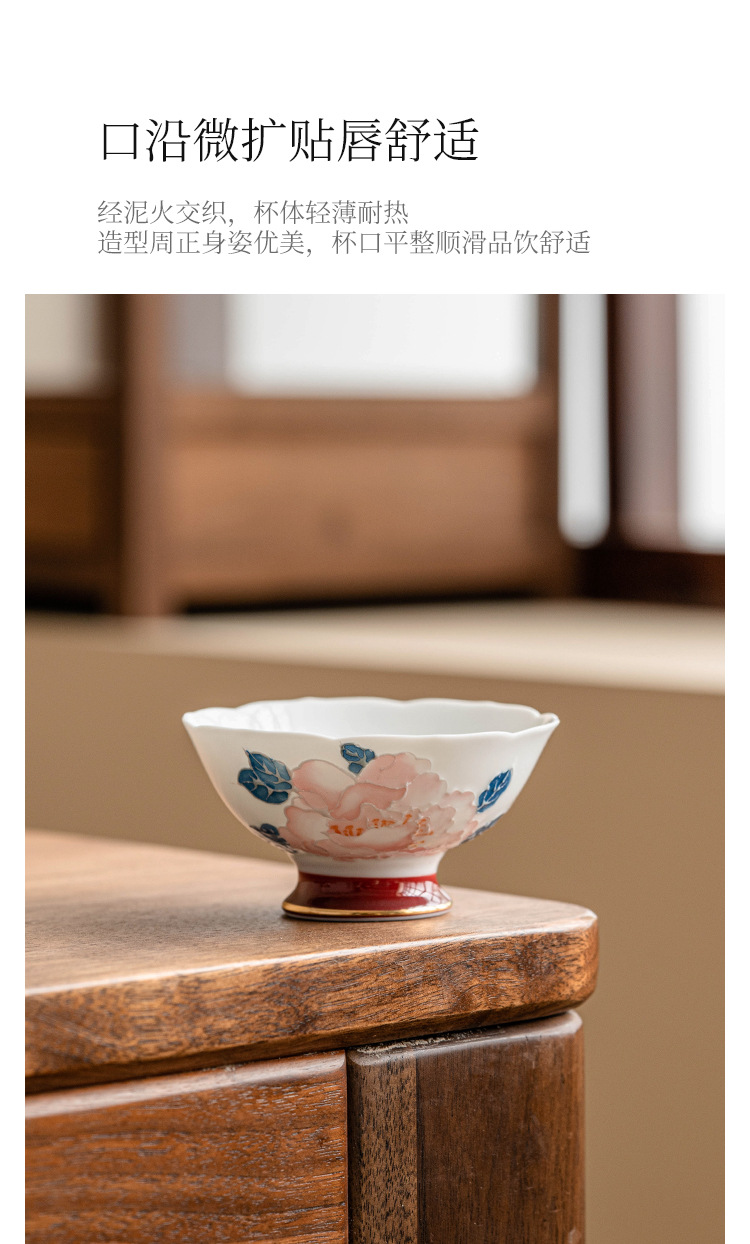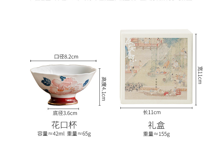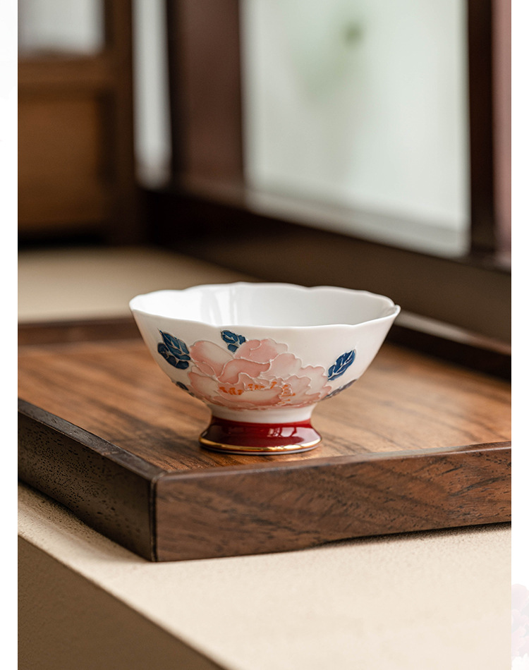 - Cốc miệng hoa mẫu đơn vẽ tay cốc trà gốm sứ gia dụng cốc chủ nhân cốc trà Kung Fu cốc trà hộp quà