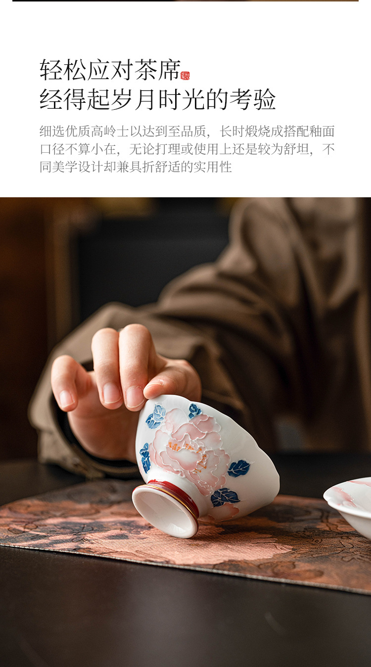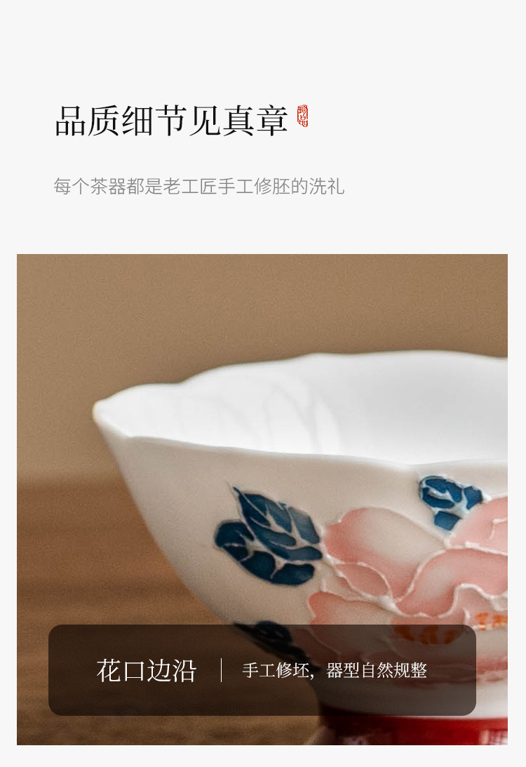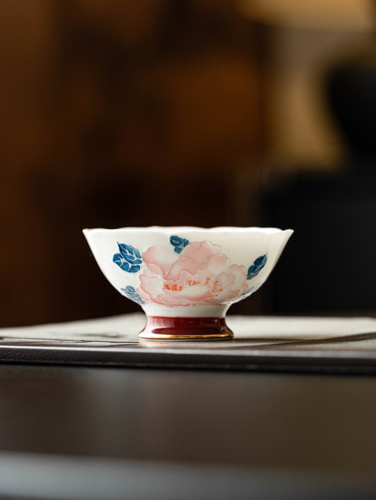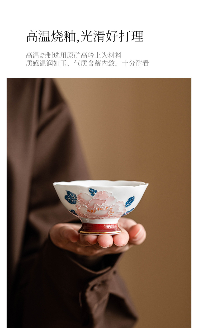 - Cốc miệng hoa mẫu đơn vẽ tay cốc trà gốm sứ gia dụng cốc chủ nhân cốc trà Kung Fu cốc trà hộp quà