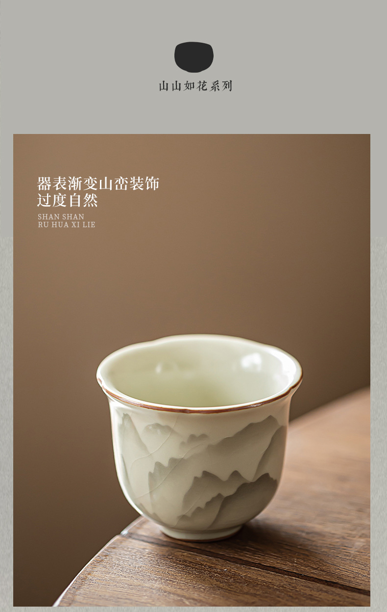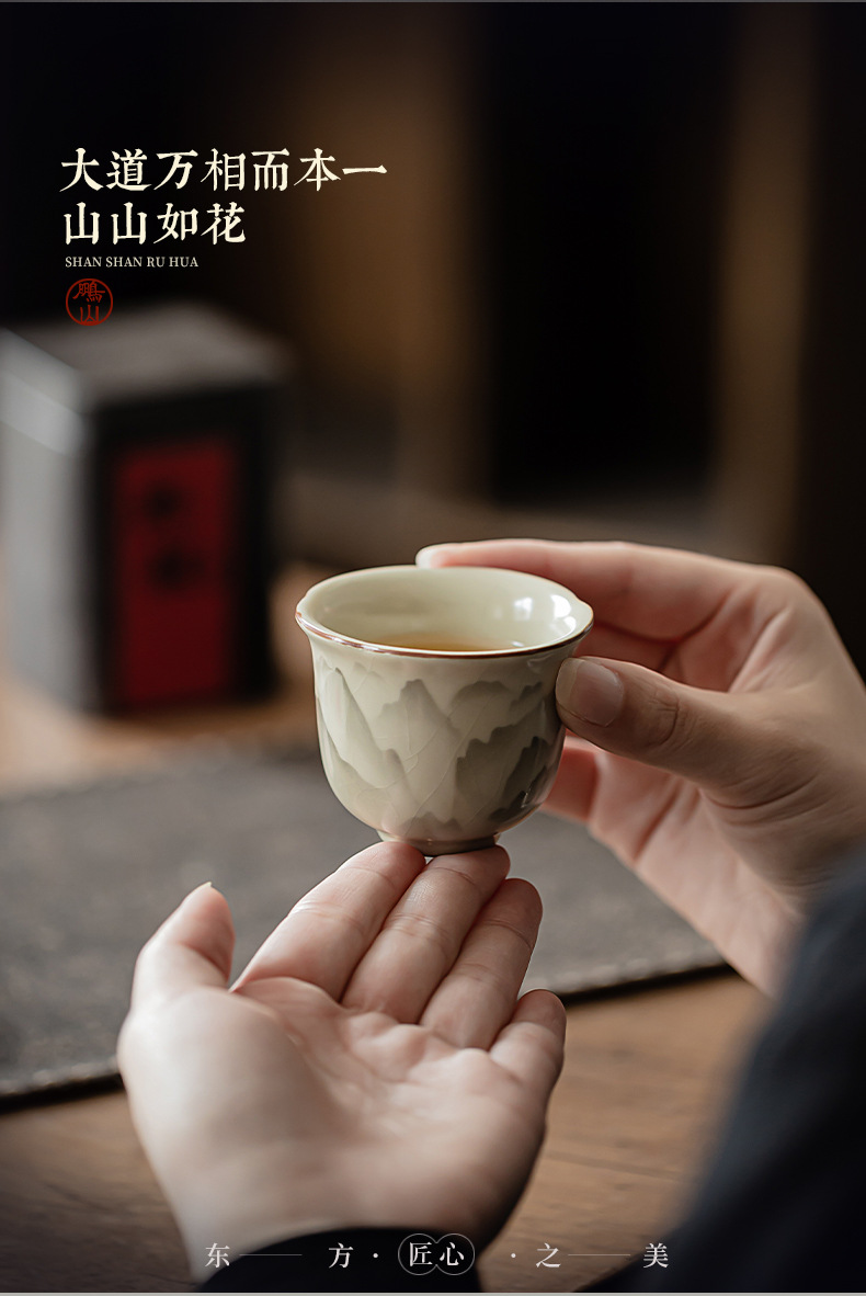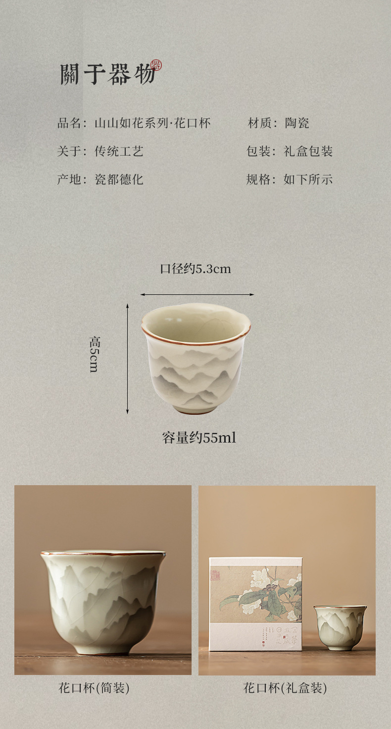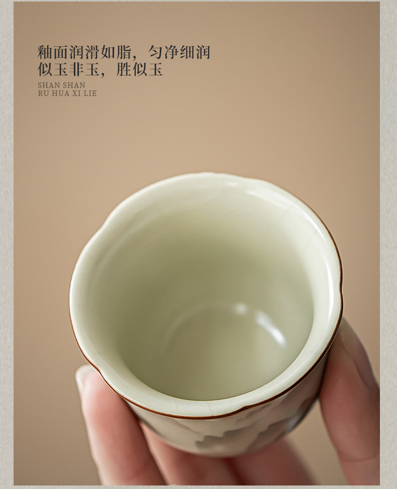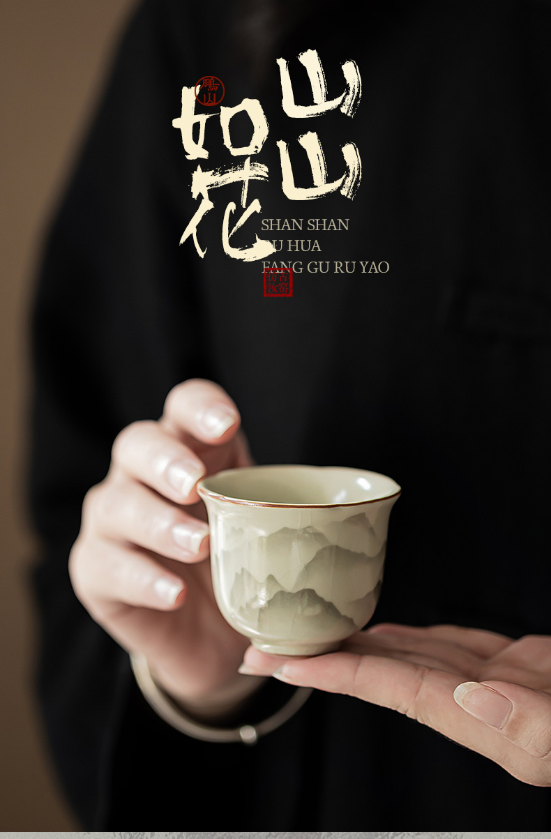 - Cốc miệng hoa Ruyao Yuanshan Cốc trà Kung Fu gốm cổ điển Cốc trà ngon Cốc chủ nhân nhỏ Cốc đơn có thể mở và nâng