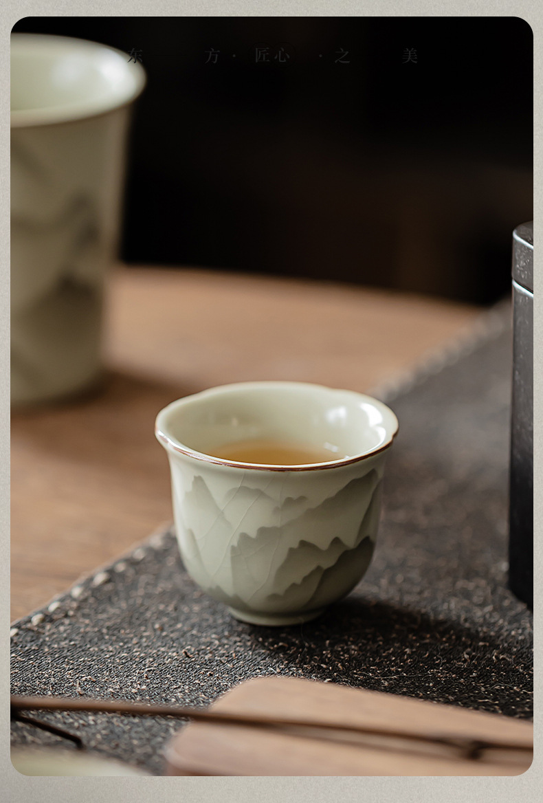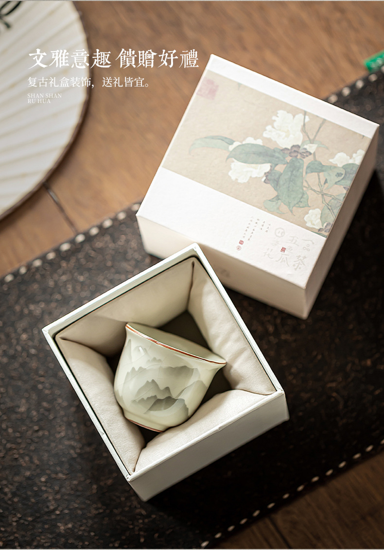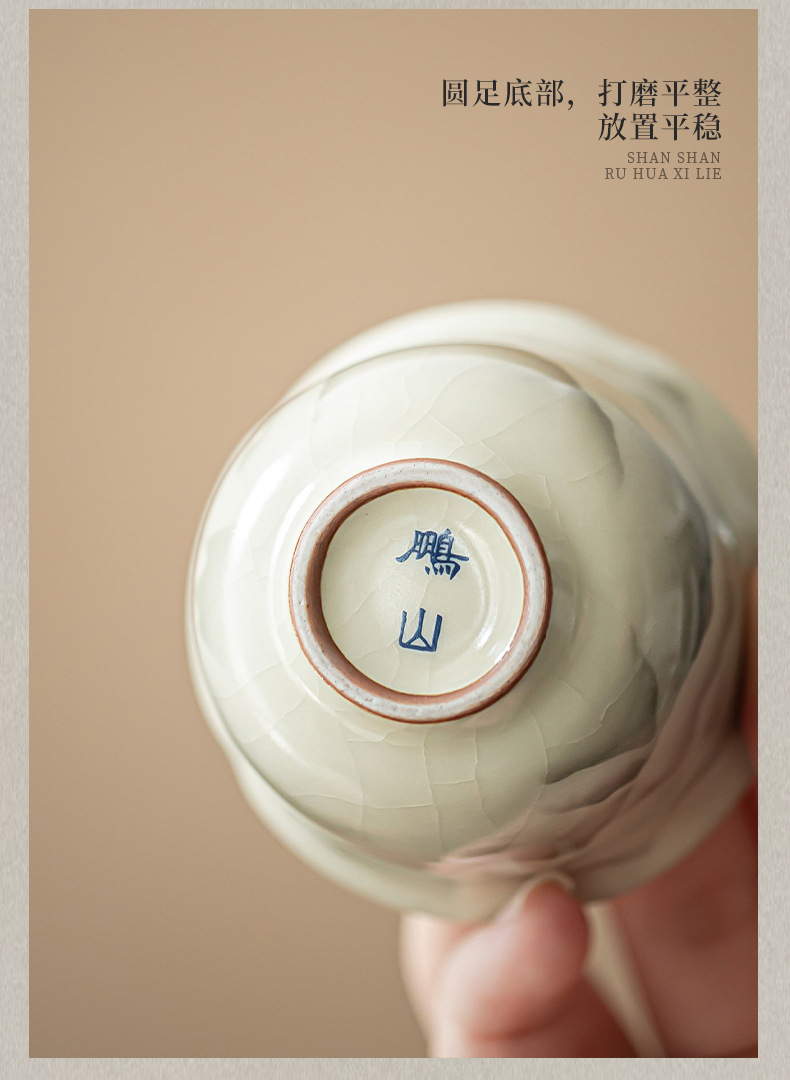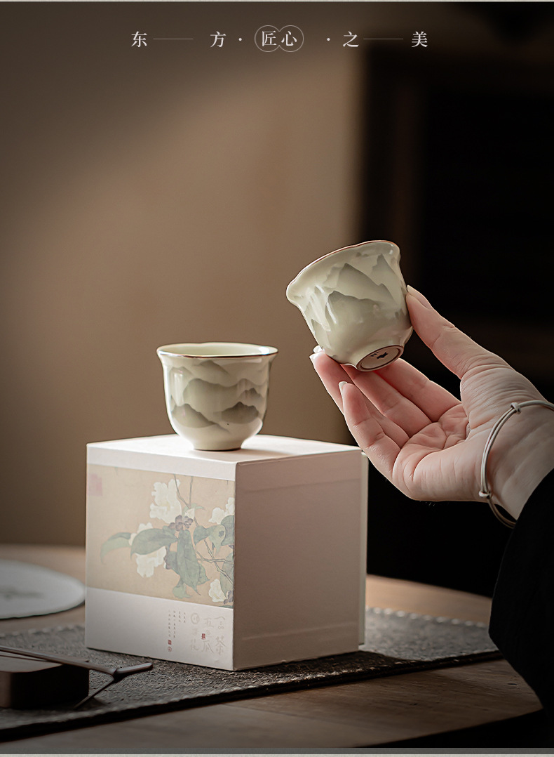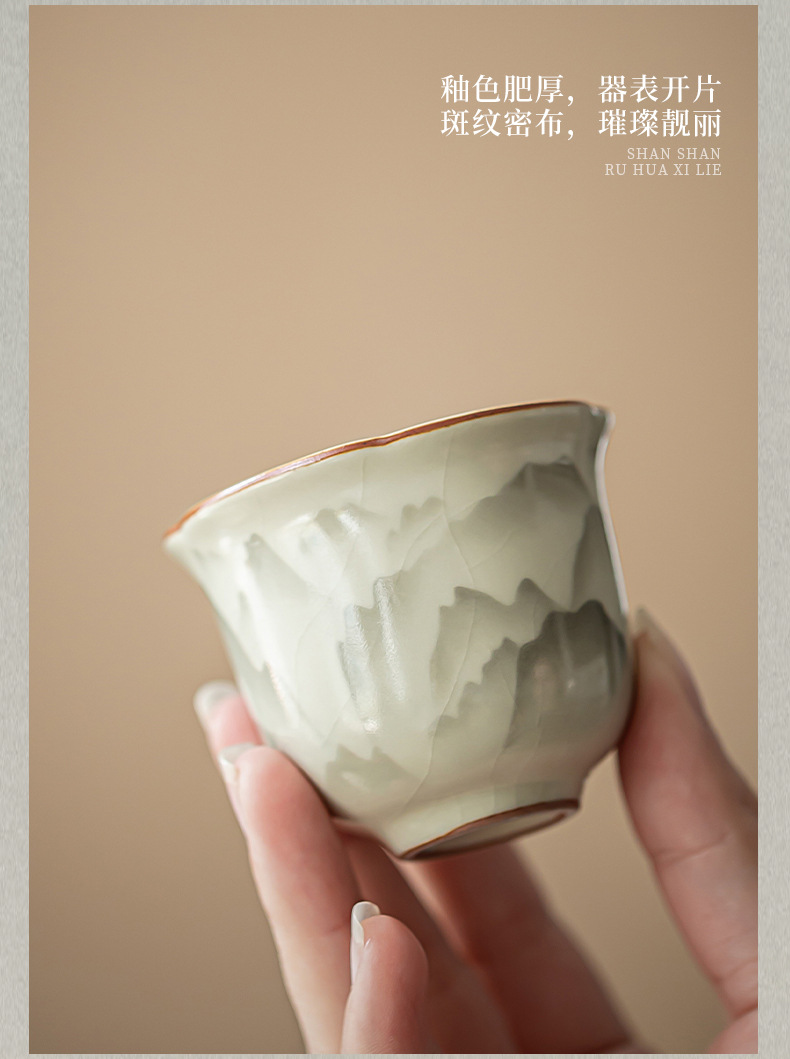 - Cốc miệng hoa Ruyao Yuanshan Cốc trà Kung Fu gốm cổ điển Cốc trà ngon Cốc chủ nhân nhỏ Cốc đơn có thể mở và nâng