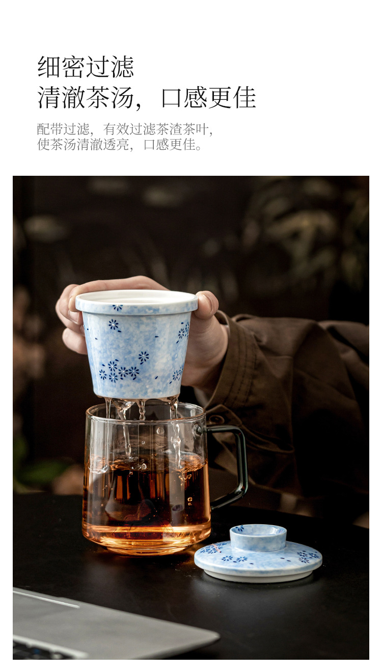 - Cốc mug hoa cúc xanh có nắp, cốc tách trà có giá trị cao, cốc thủy tinh vẽ tay tinh tế, cốc pha trà