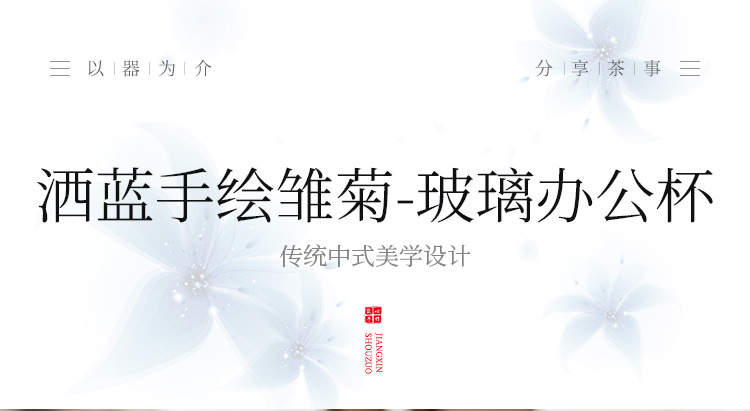 Cốc mug hoa cúc xanh có nắp, cốc tách trà có giá trị cao, cốc thủy tinh vẽ tay tinh tế, cốc pha trà