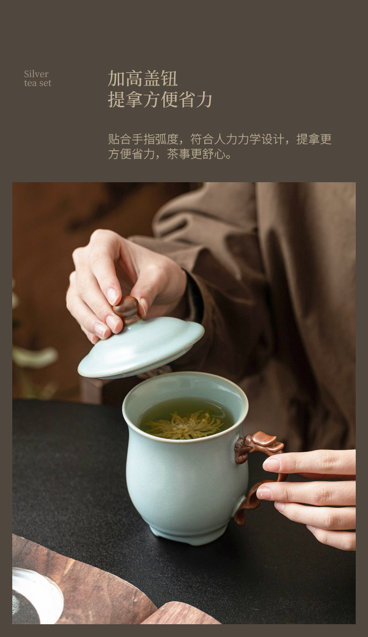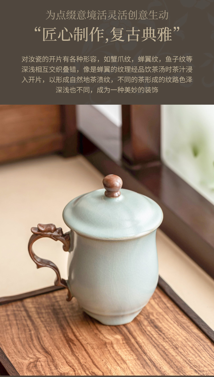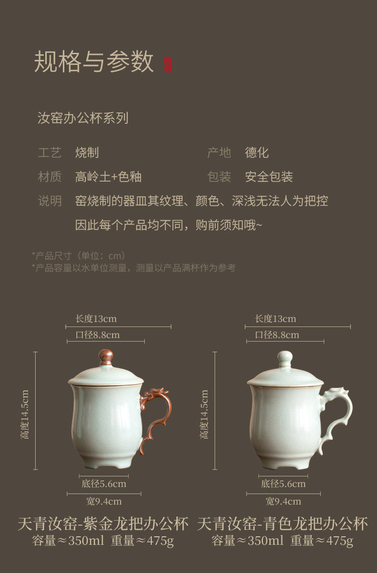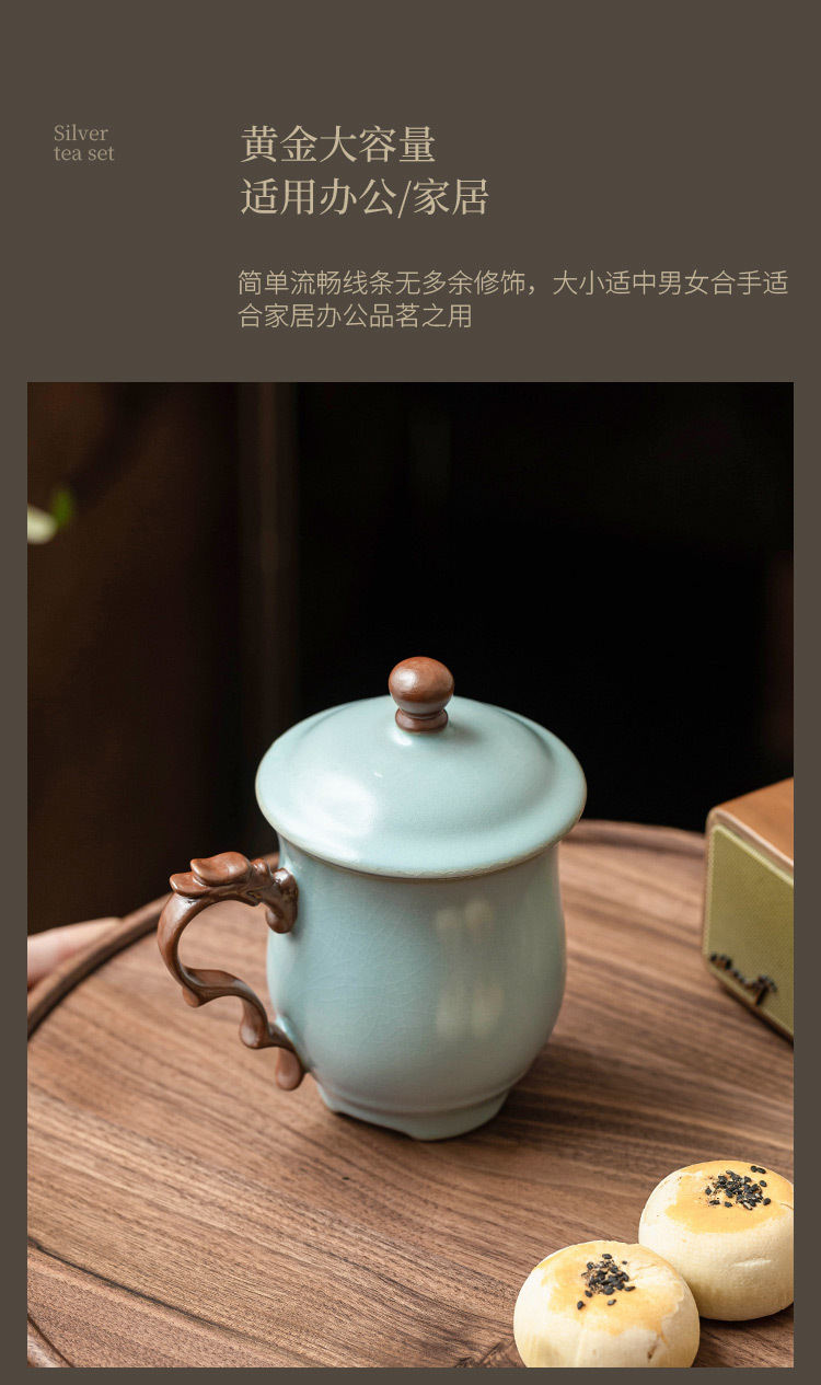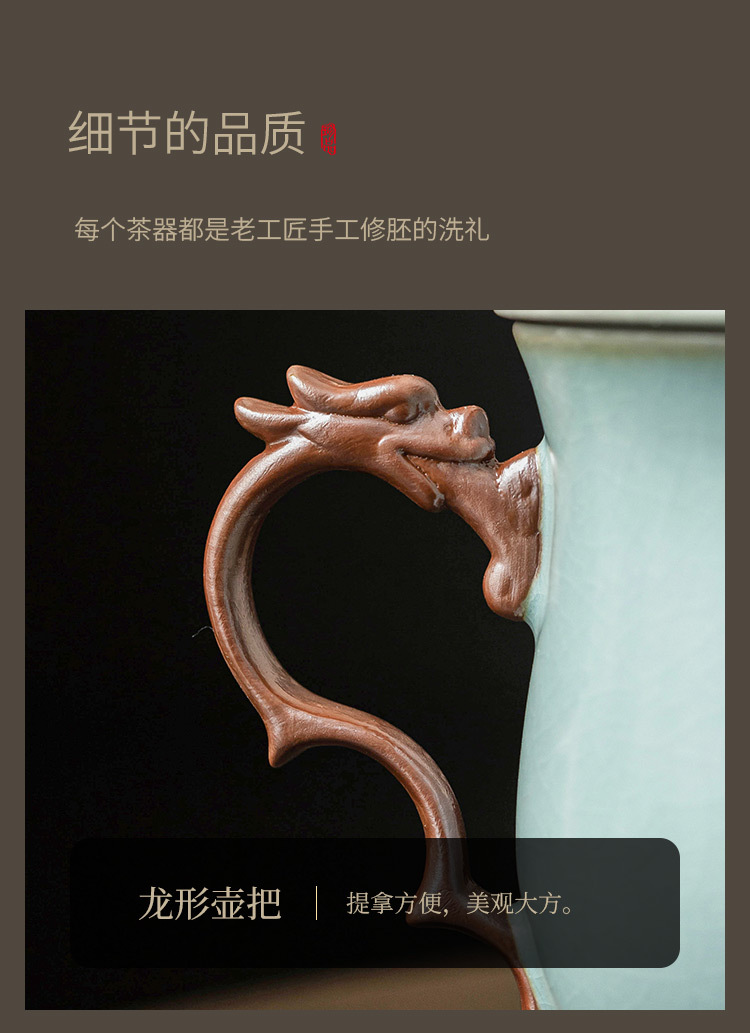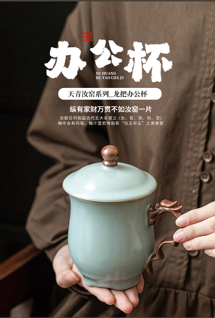 - Cốc mug lò Tianqing Ru có nắp cốc văn phòng rồng màu lục lam cốc gia dụng cốc uống trà cốc nước sang trọng cốc sứ