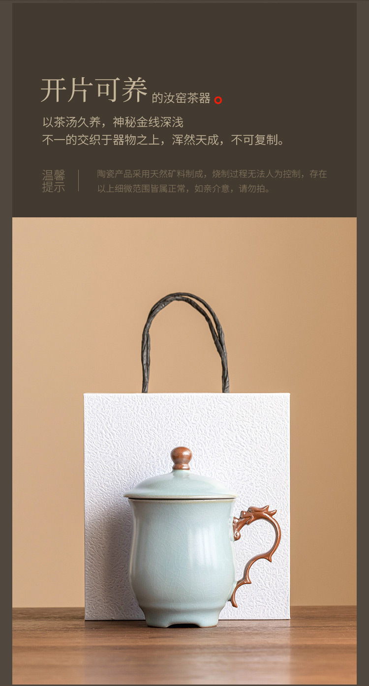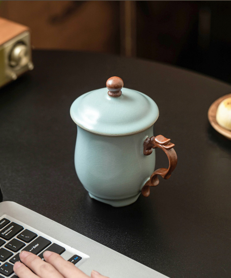 Cốc mug lò Tianqing Ru có nắp cốc văn phòng rồng màu lục lam cốc gia dụng cốc uống trà cốc nước sang trọng cốc sứ