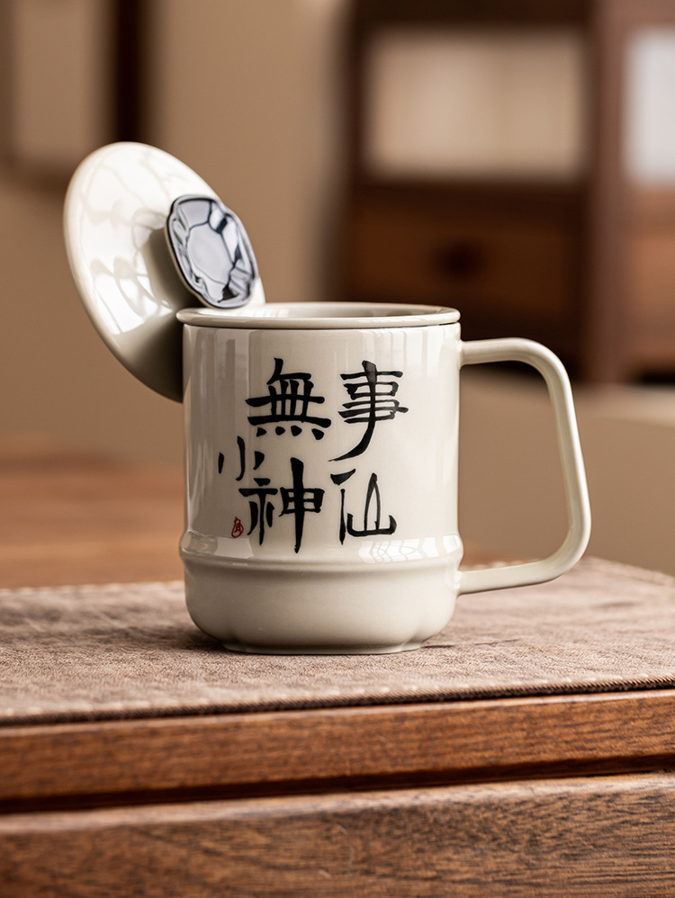 - Cốc mug viết tay sáng tạo cốc pha trà thần tiên có nắp cốc tách trà văn phòng cốc nước gốm sứ cao cấp