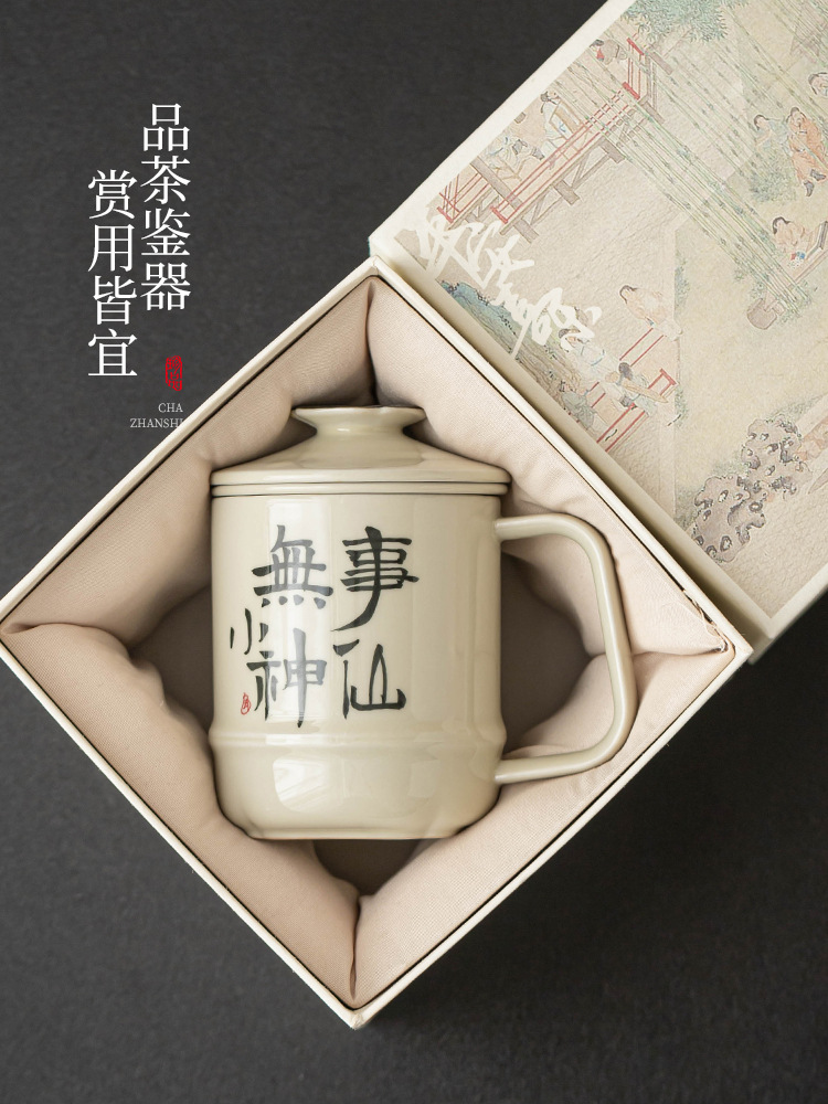 Cốc mug viết tay sáng tạo cốc pha trà thần tiên có nắp cốc tách trà văn phòng cốc nước gốm sứ cao cấp