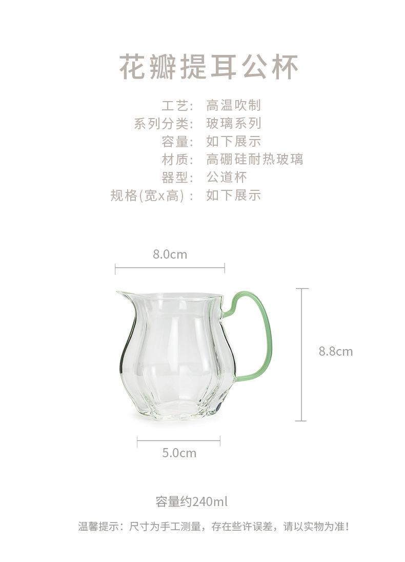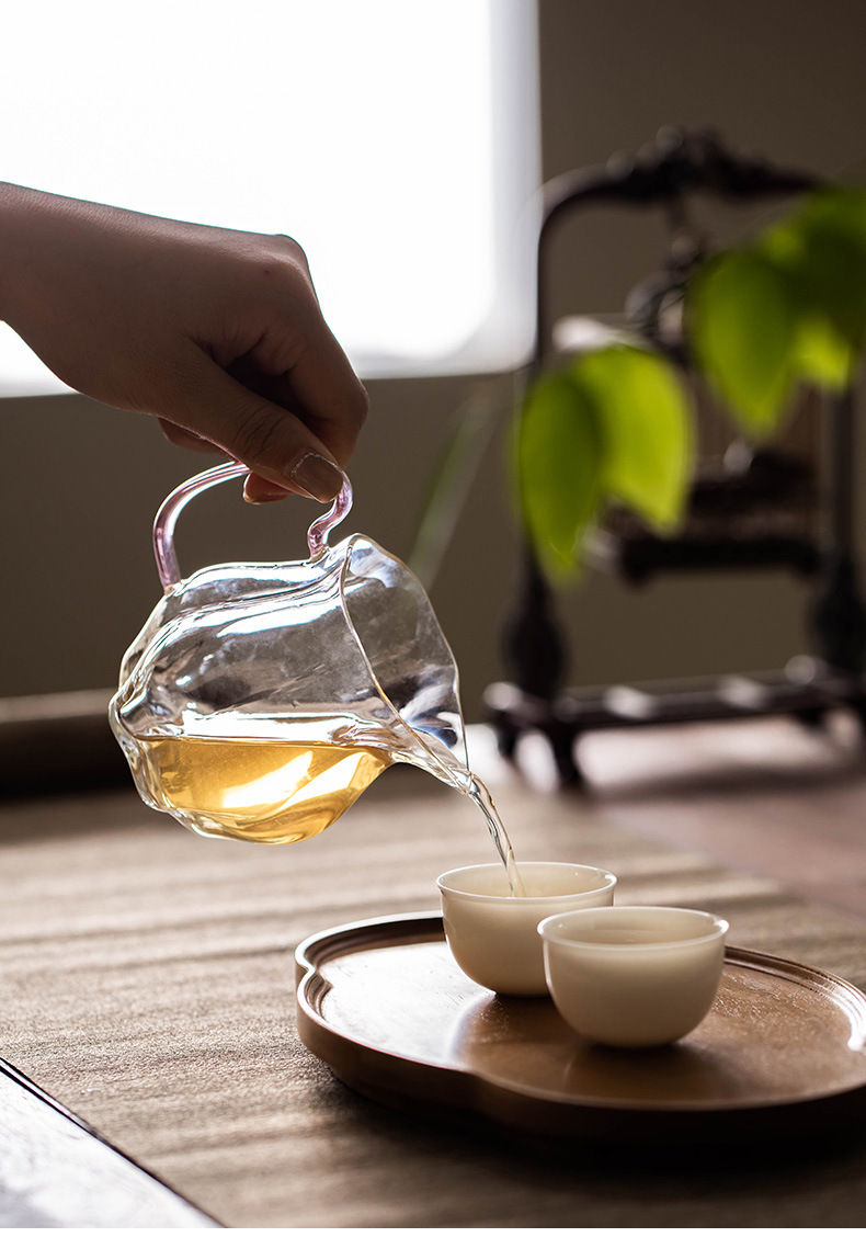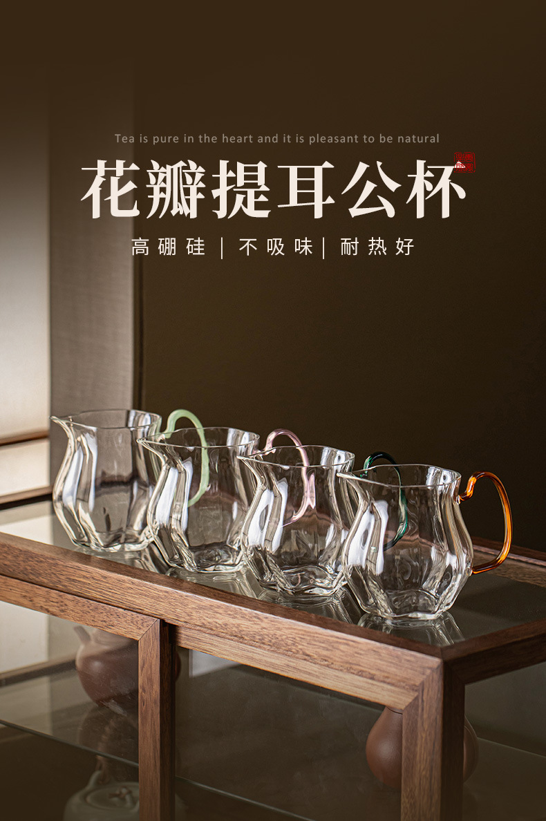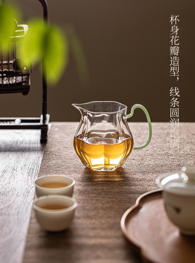 Cốc nâng tai cánh hoa cốc công bằng thủy tinh Borosilicat cao cốc trà miệng đại bàng Trà Hải Phân phụ kiện trà đạo Kungfu gia dụng
