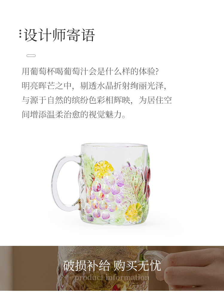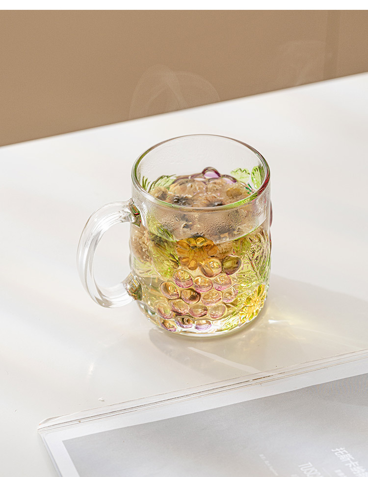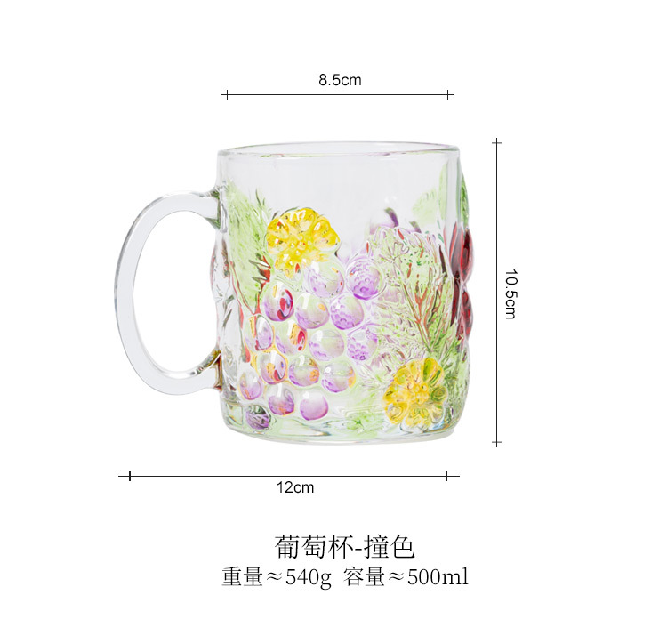 Cốc nho vẽ tay cốc thủy tinh cao cấp thích hợp cốc uống nước gia dụng có tay cầm cốc cà phê sữa Instagram cốc trà