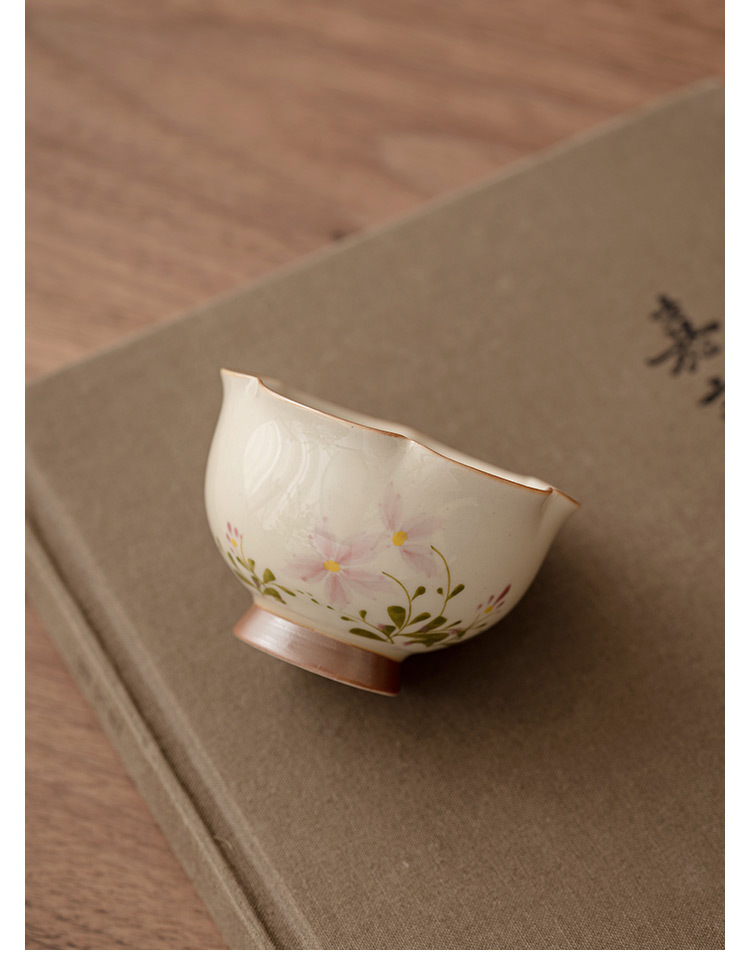 Cốc nụ hoa cúc nhỏ màu xám thực vật cốc uống trà cốc chủ nhân gốm sứ cốc đơn dụng cụ trà kungfu gia dụng cốc trà