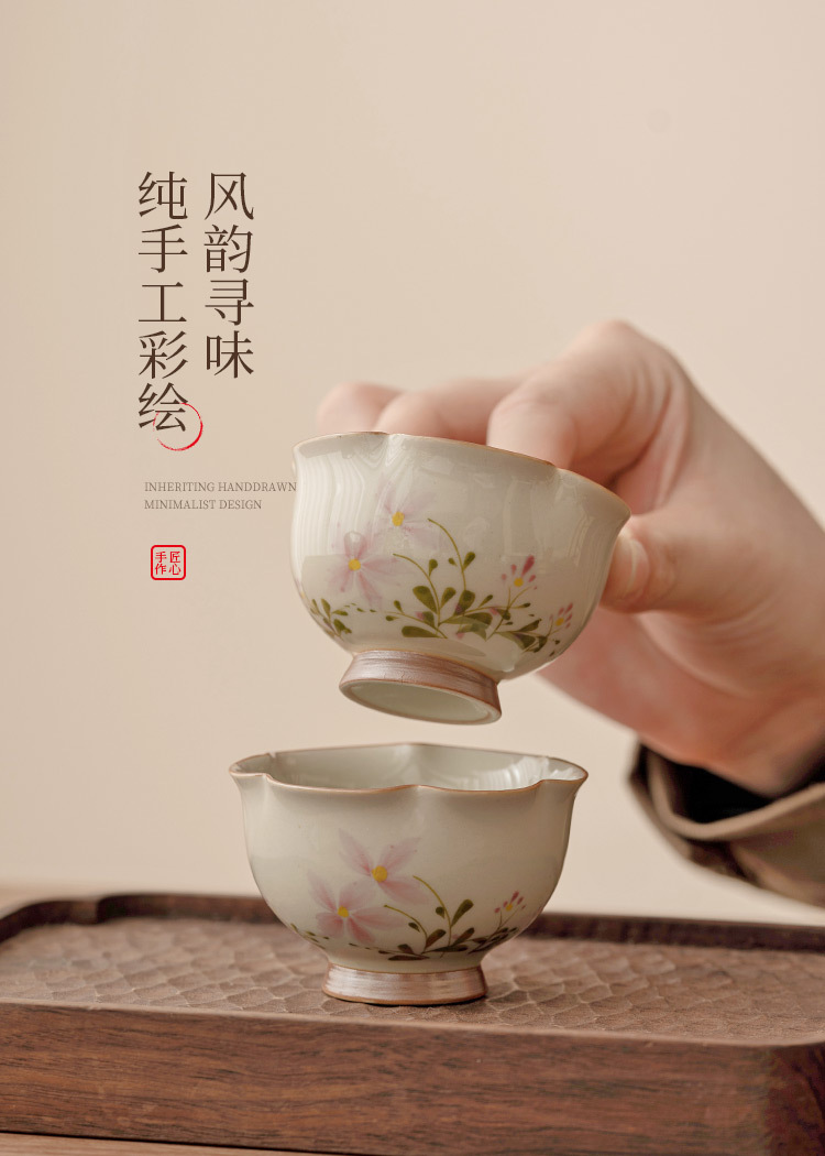 - Cốc nụ hoa cúc nhỏ màu xám thực vật cốc uống trà cốc chủ nhân gốm sứ cốc đơn dụng cụ trà kungfu gia dụng cốc trà